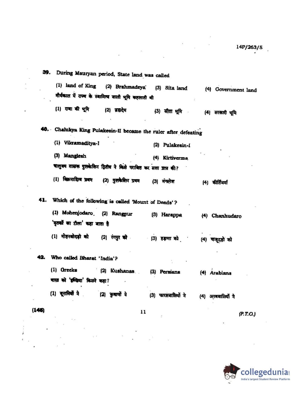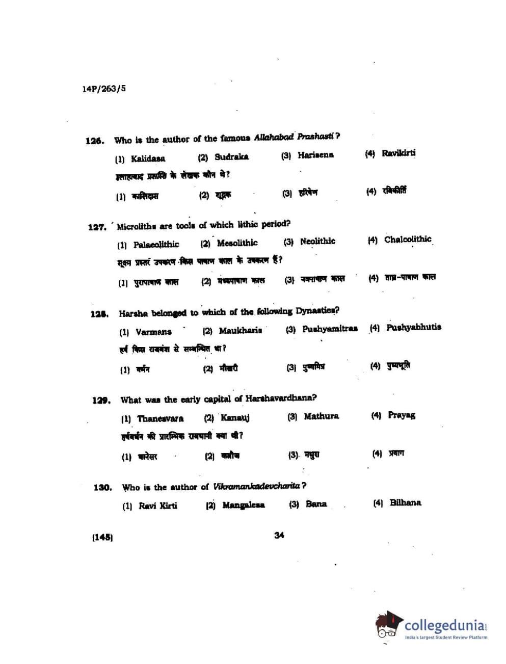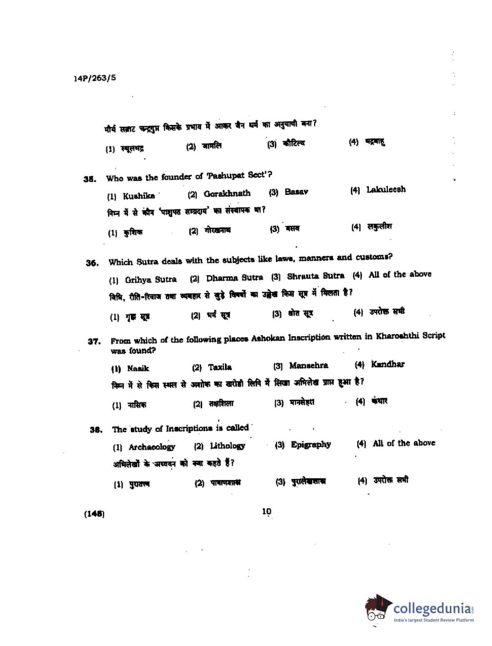 BHU PET 2014 M.A. AIHC & ARCH Question Paper with Answer Key PDFs