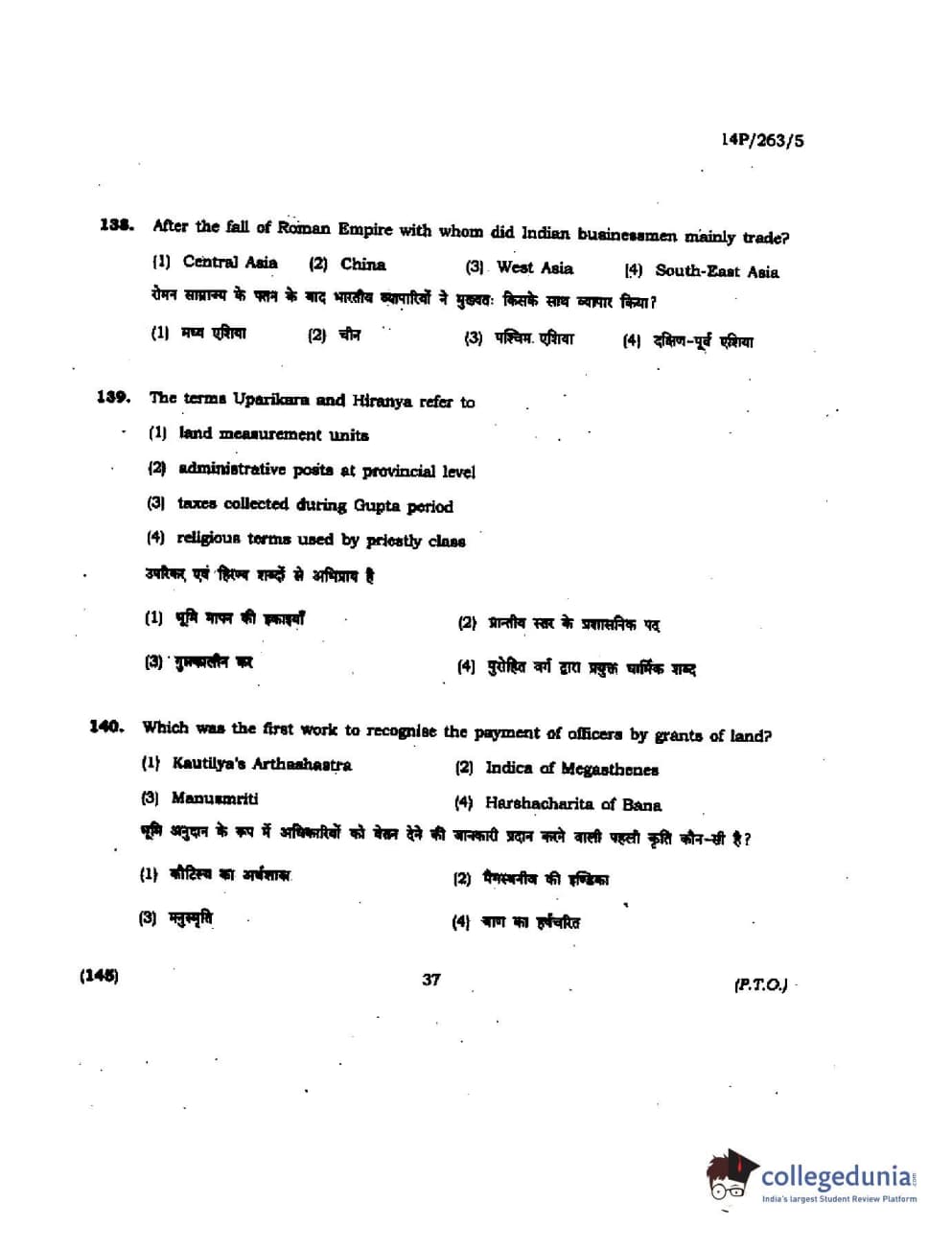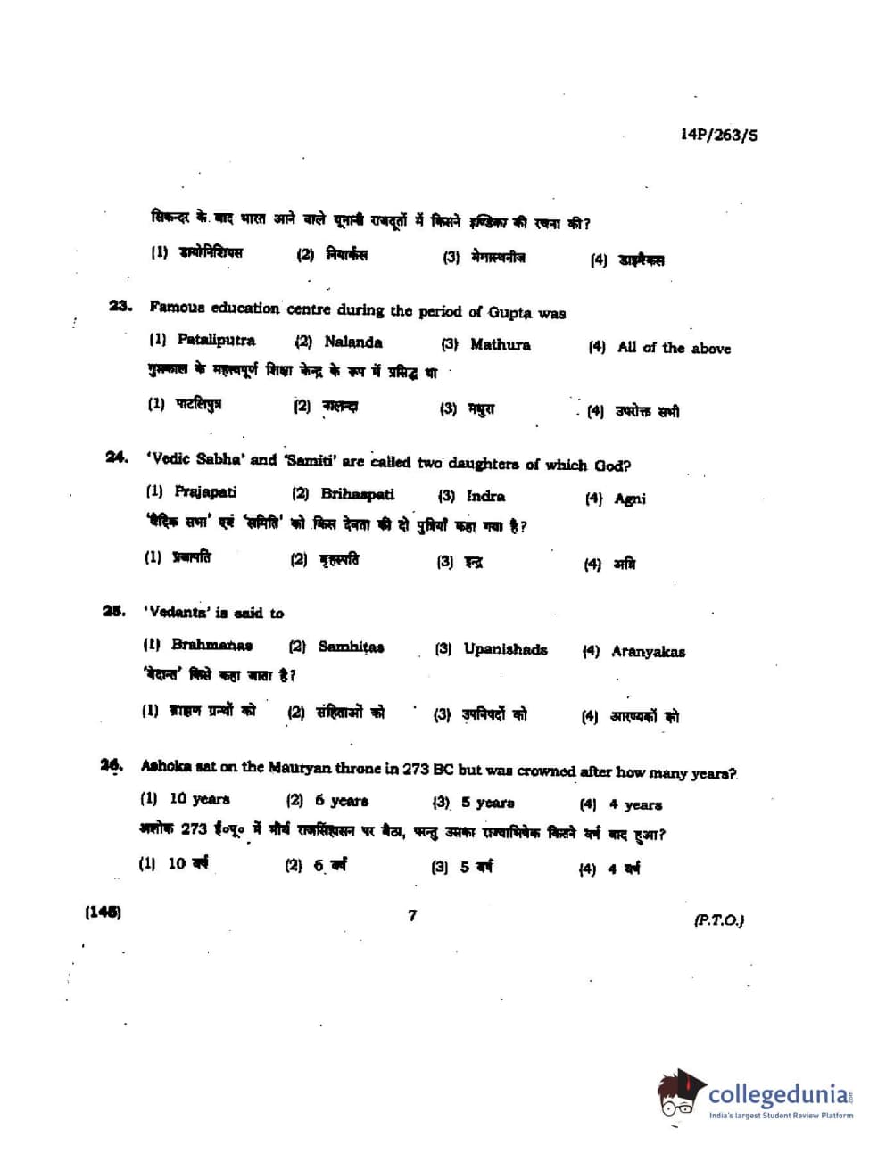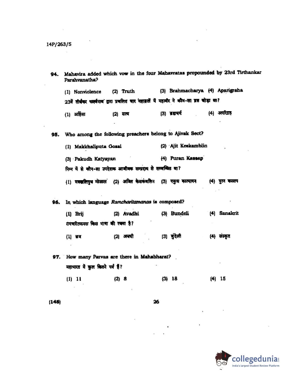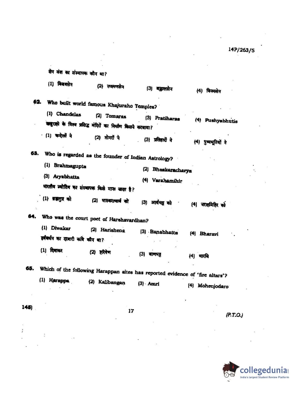 BHU PET 2014 M.A. AIHC & ARCH Question Paper with Answer Key PDFs