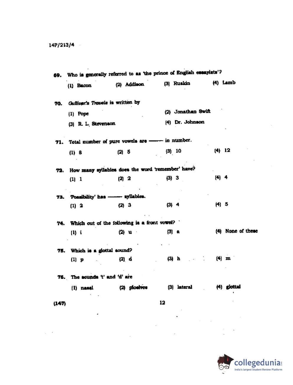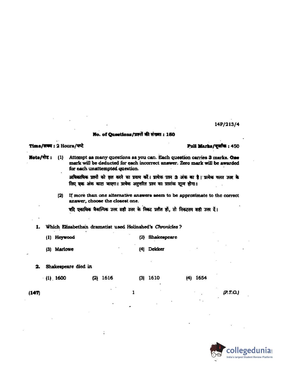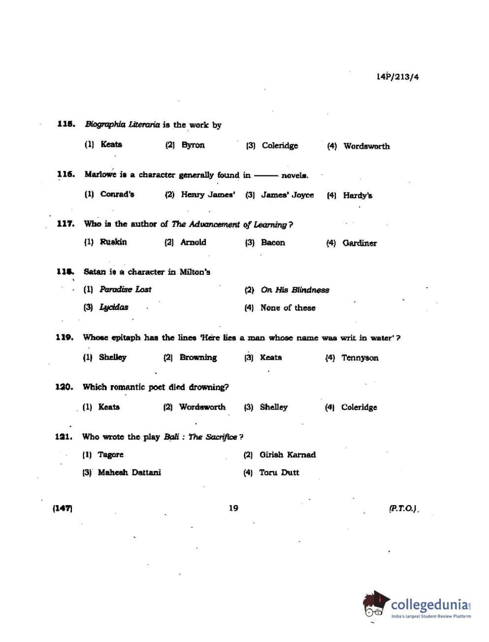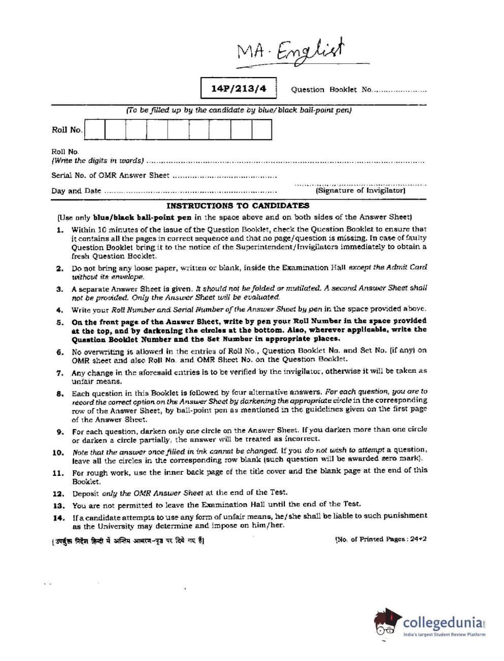BHU PET 2014 M.A. English Question paper with answer key pdf is available for download. The exam was successfully organized by Banaras Hindu University (BHU). The question paper comprised a total of 150 questions.