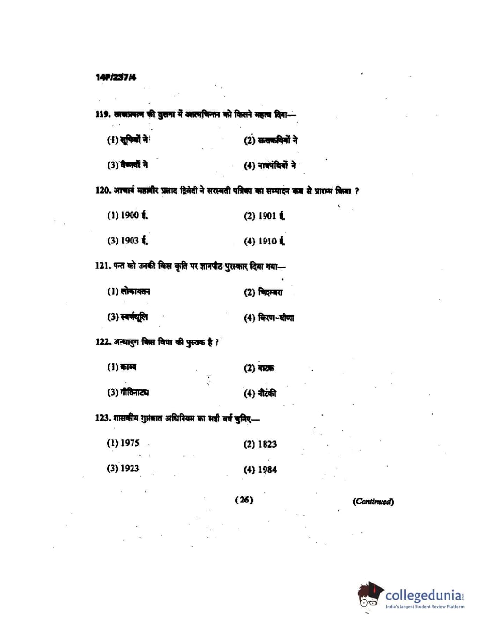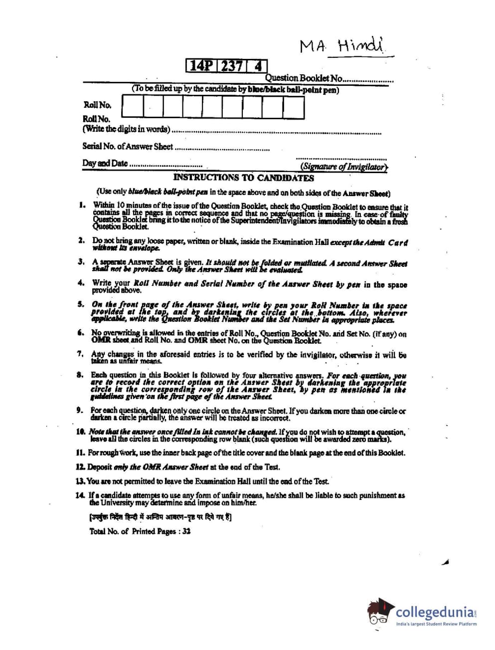 | BHU PET 2014 M.A. Hindi Question Paper PDF | BHU PET 2014 M.A. Hindi Answer Key PDF |