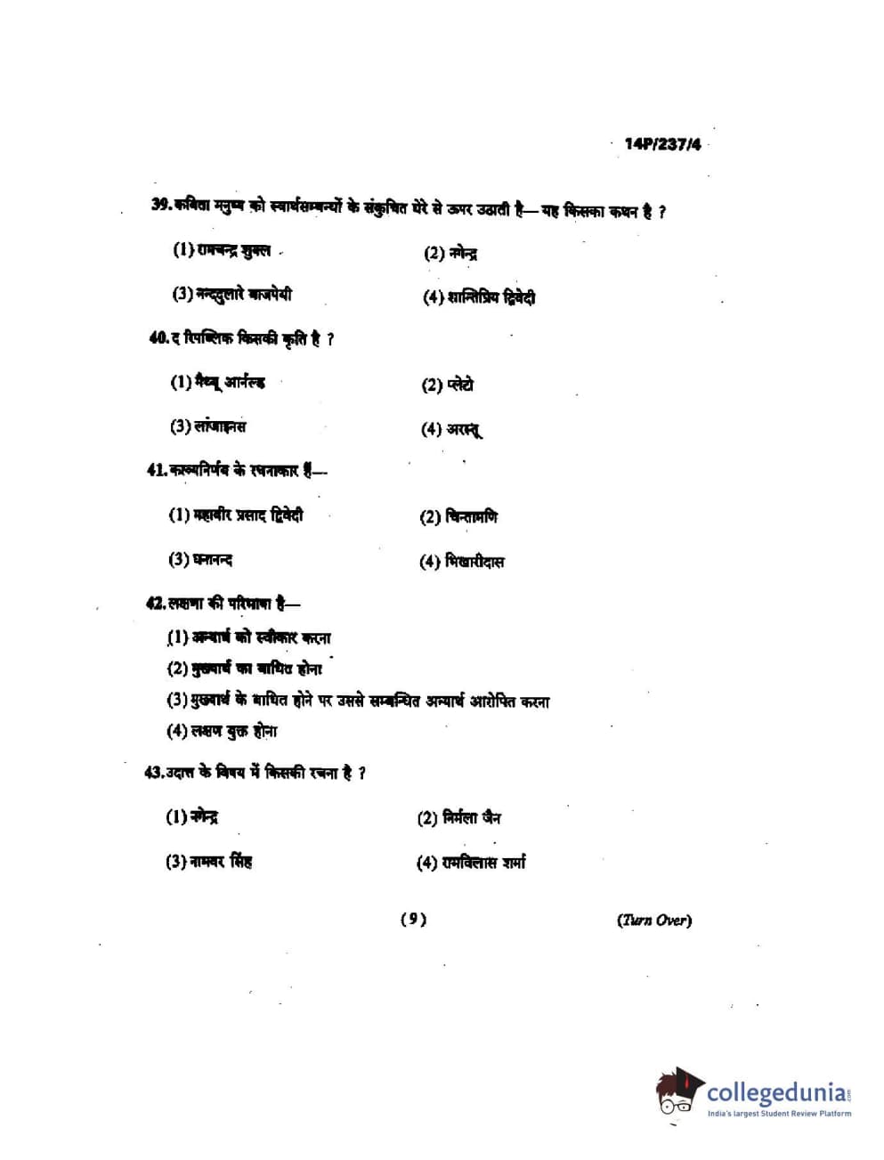 BHU PET 2014 M.A. Hindi Question Paper with Answer Key PDFs