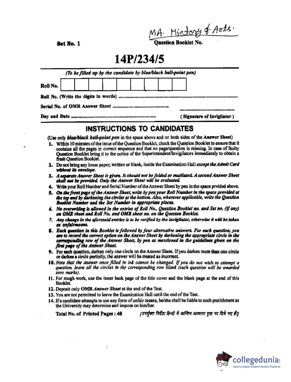 BHU PET 2014 M.A. History of Arts Question paper with answer key pdf is available for download. The exam was successfully organized by Banaras Hindu University (BHU). The question paper comprised a total of 150 questions.