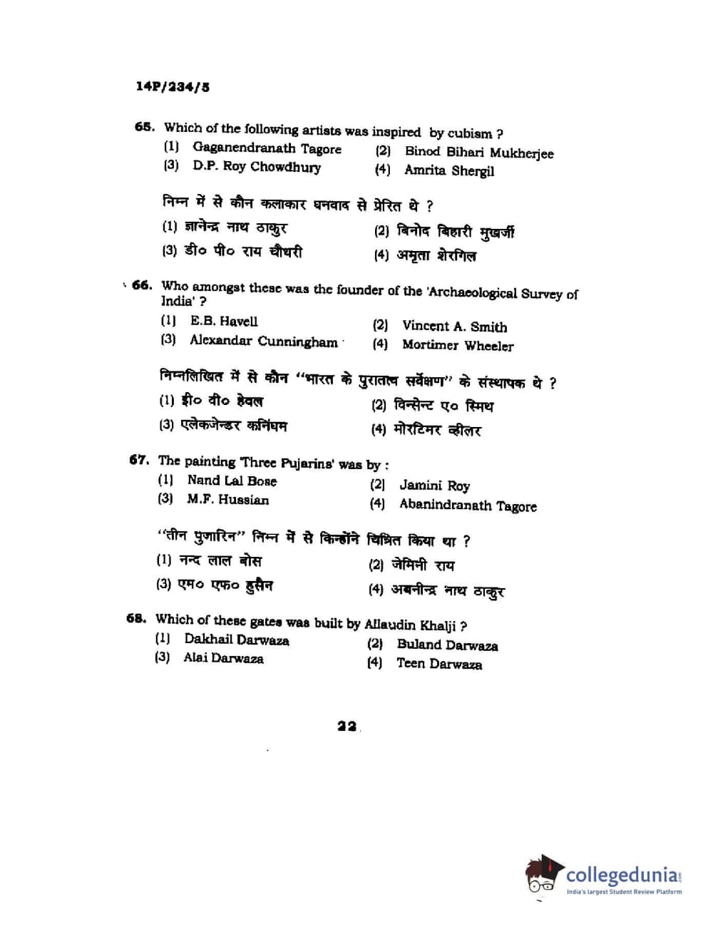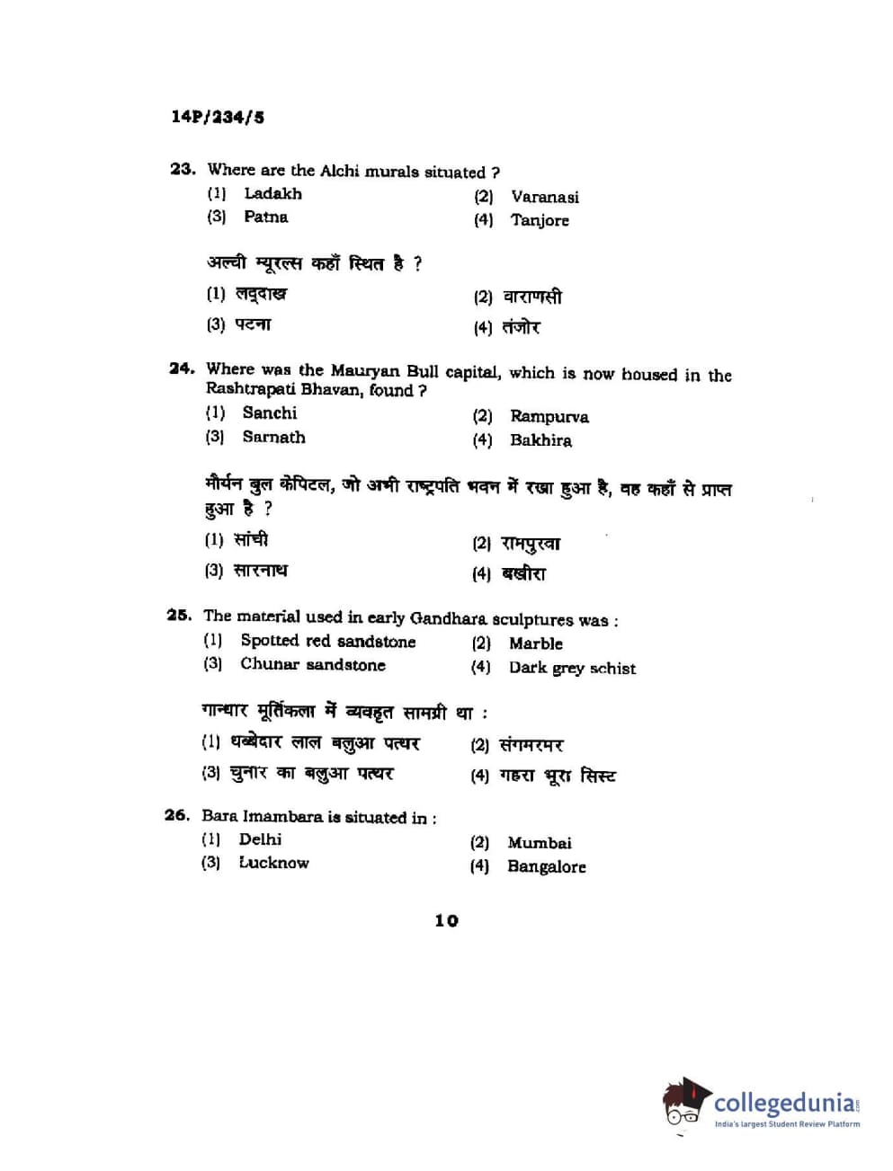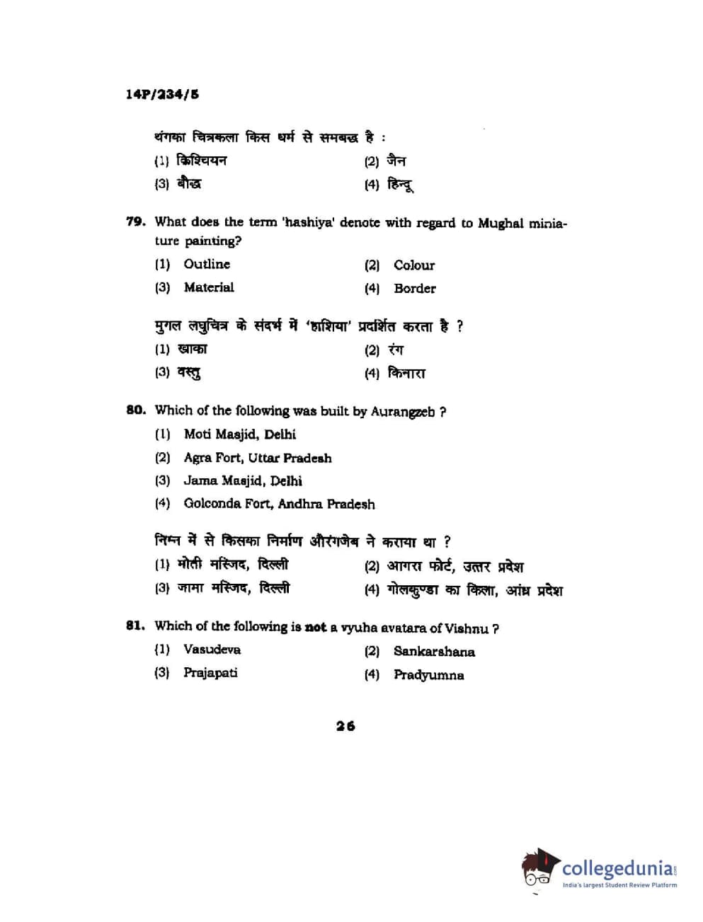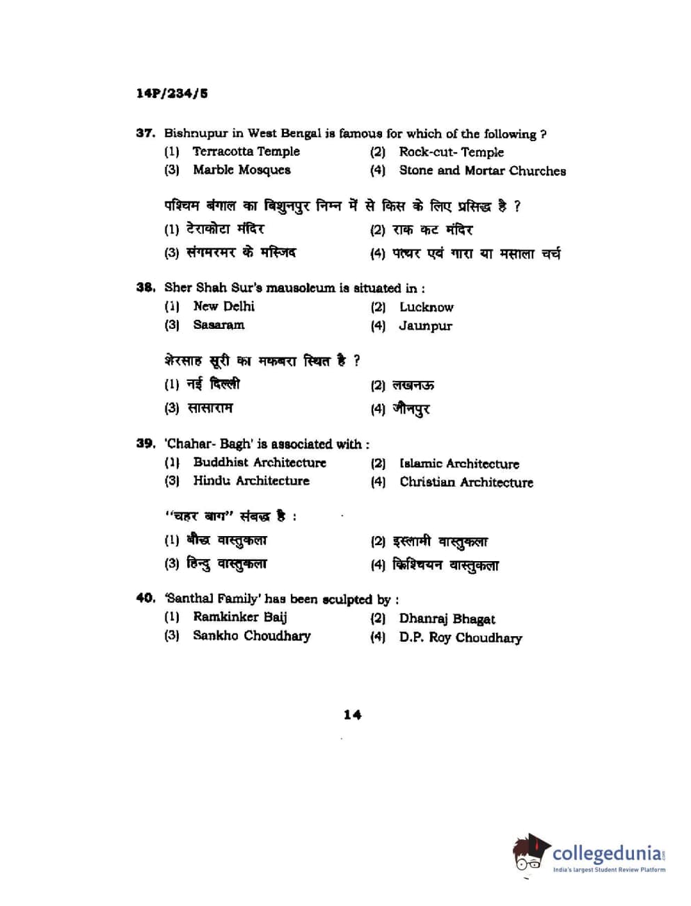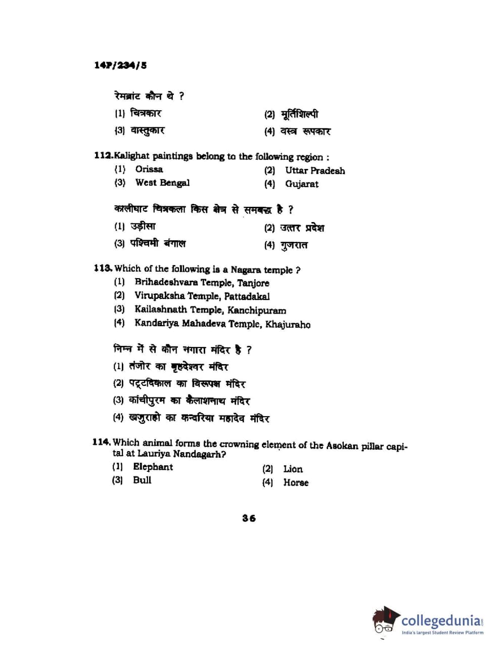 BHU PET 2014 M.A. History of Arts Question Paper with Answer Key PDFs