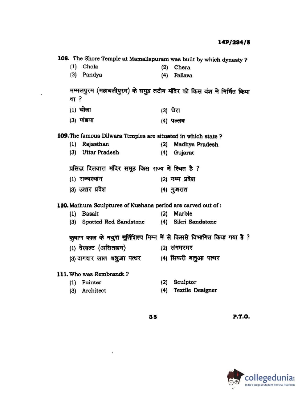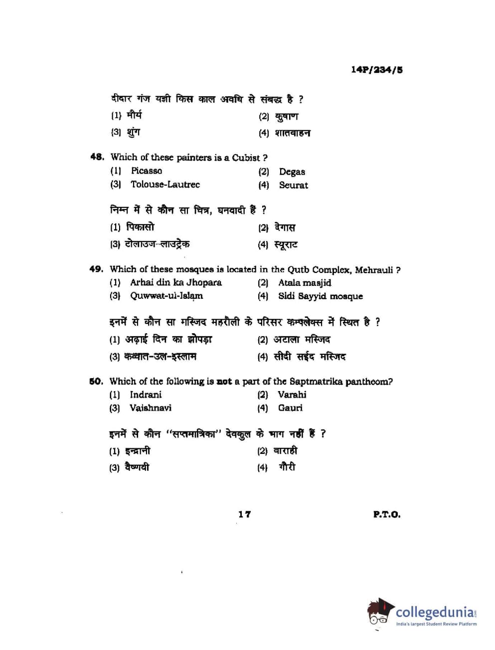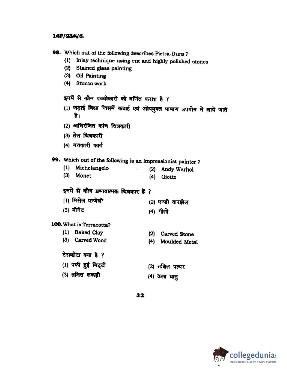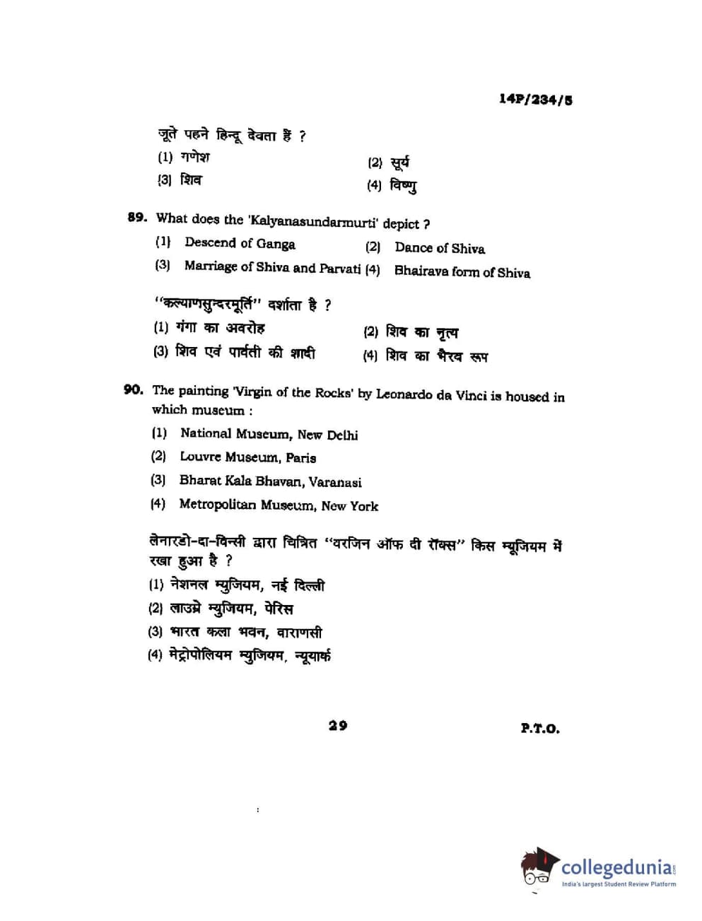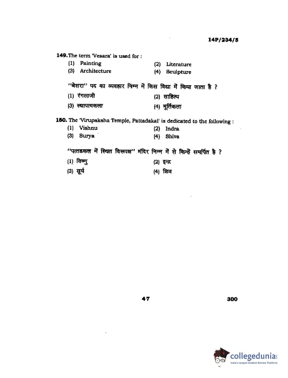 BHU PET 2014 M.A. History of Arts Question Paper with Answer Key PDFs