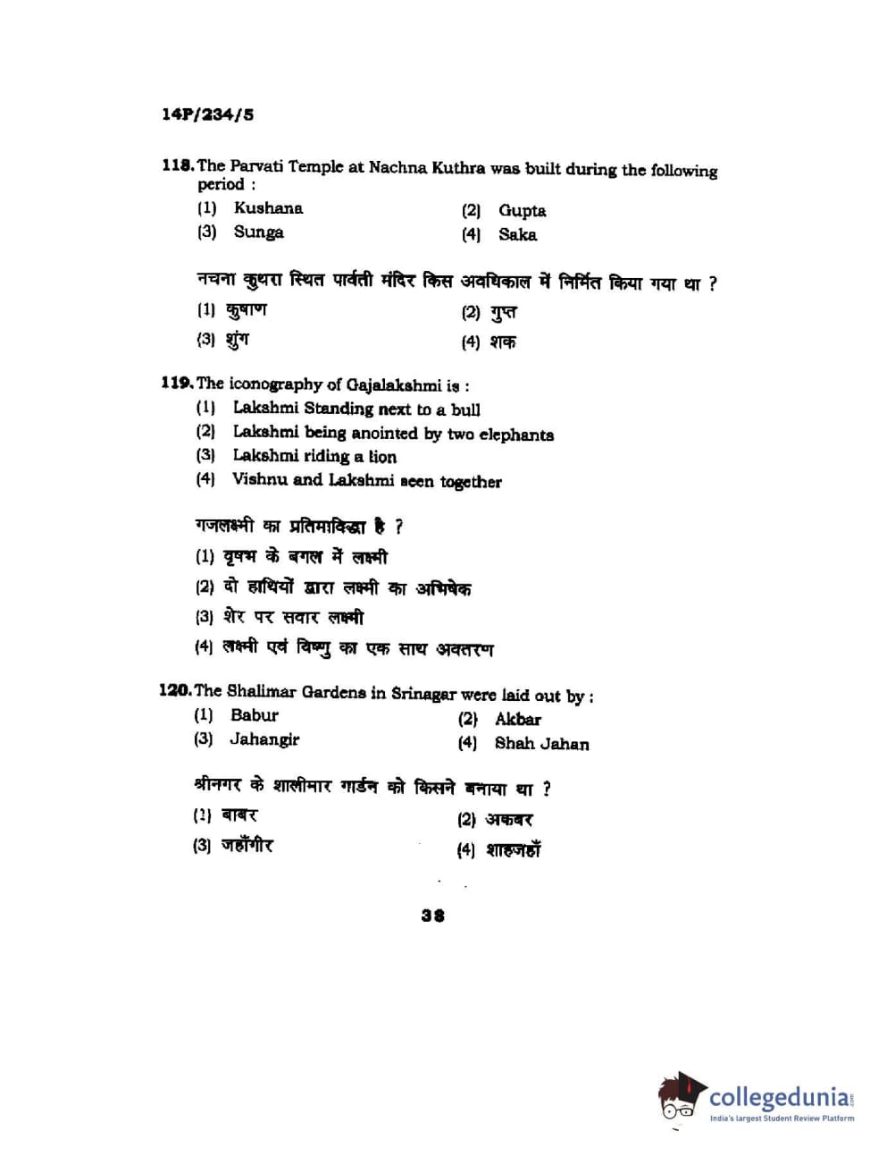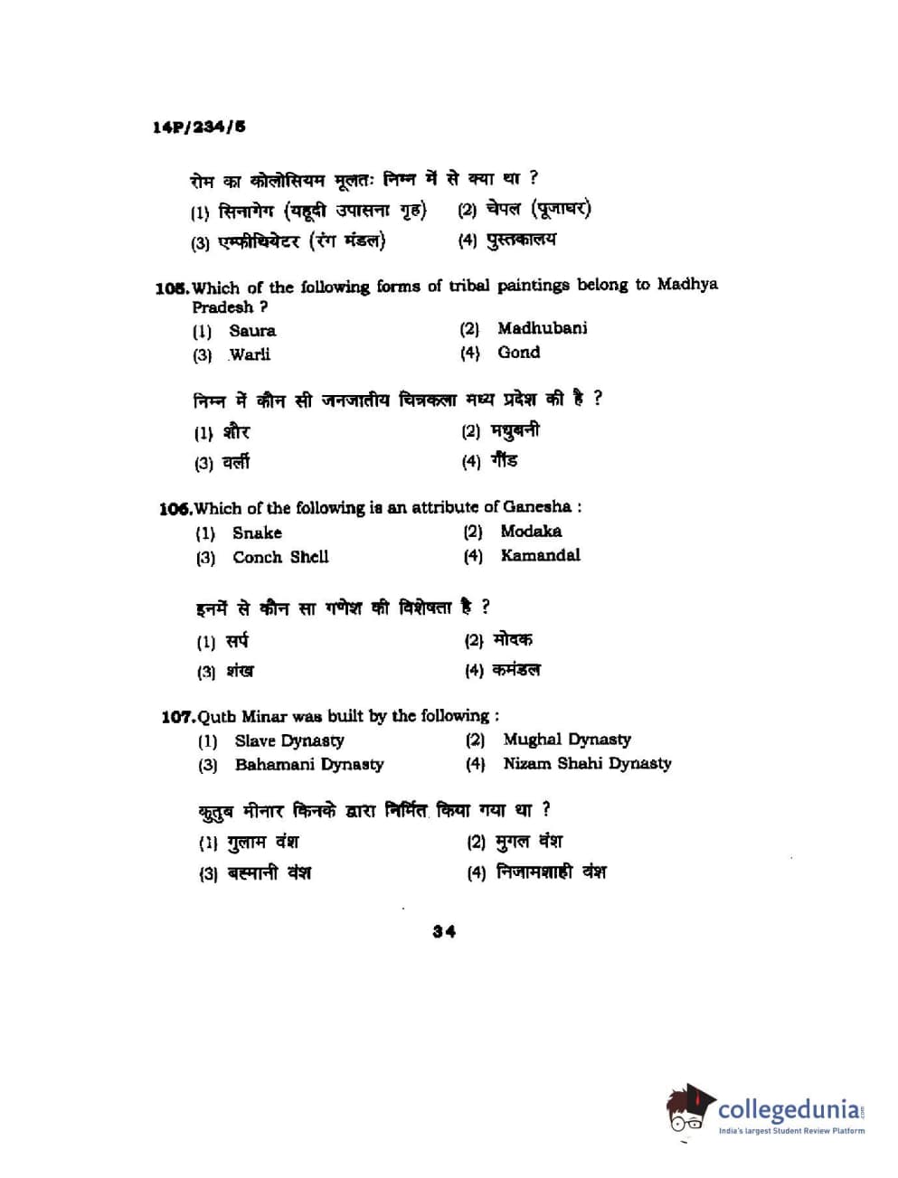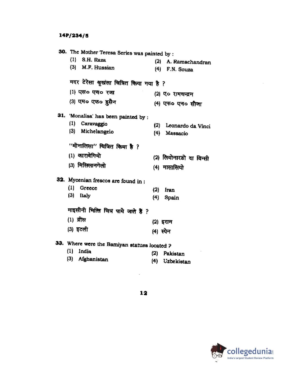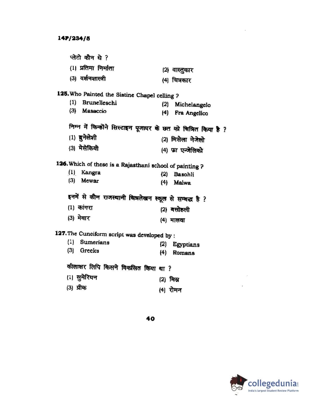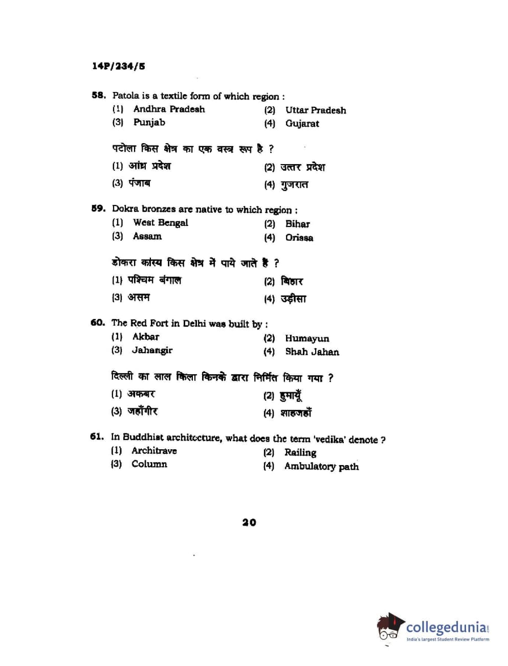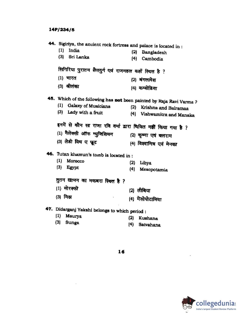 BHU PET 2014 M.A. History of Arts Question Paper with Answer Key PDFs