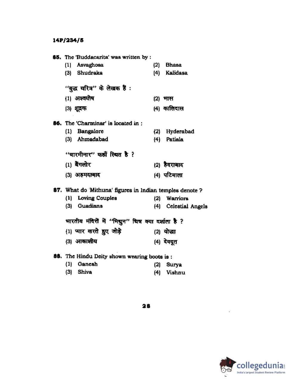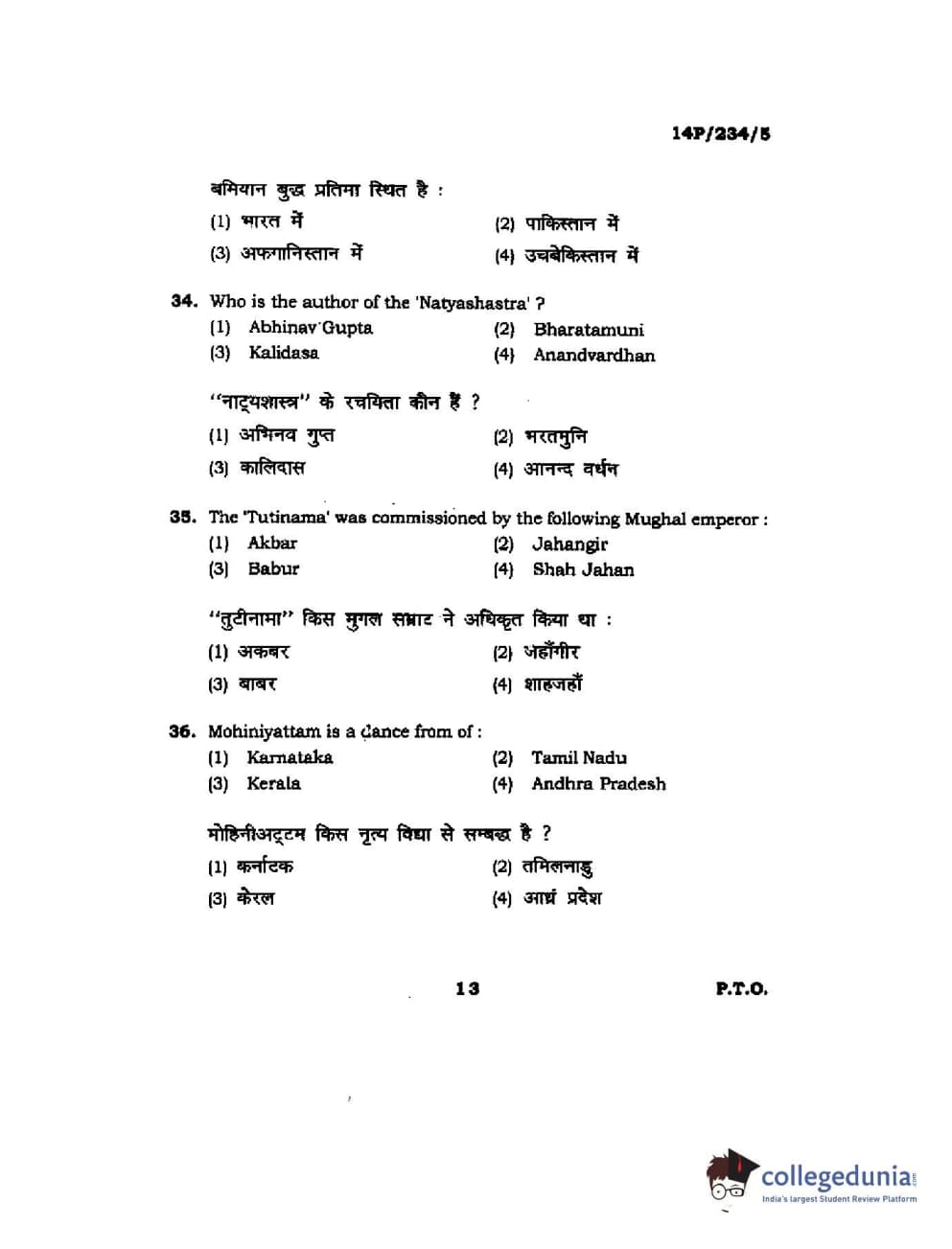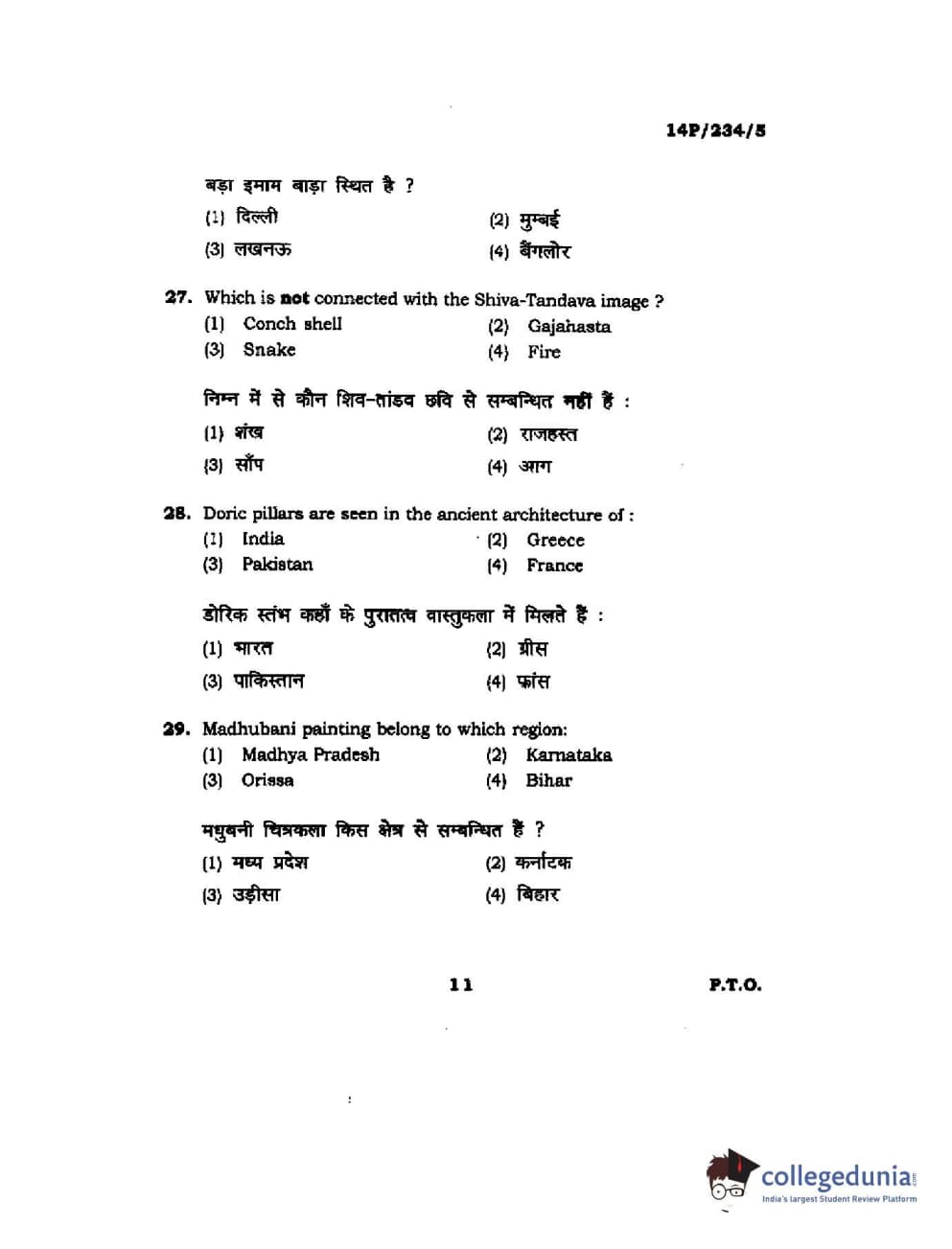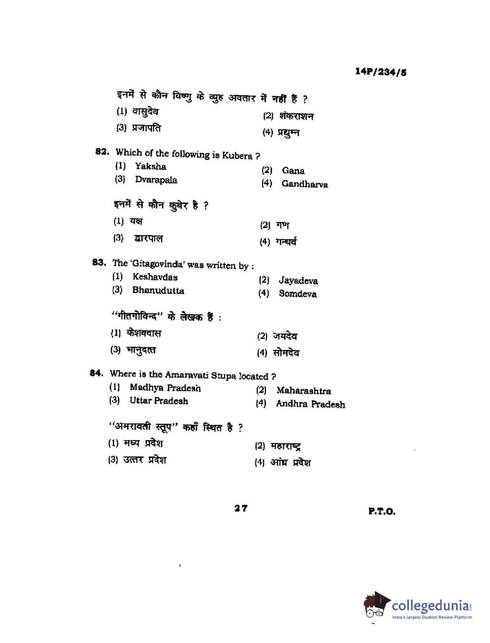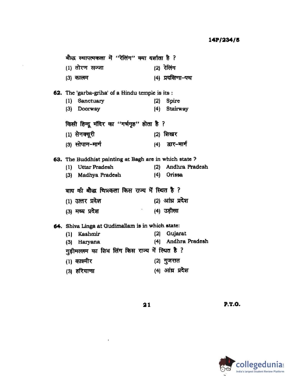 BHU PET 2014 M.A. History of Arts Question Paper with Answer Key PDFs