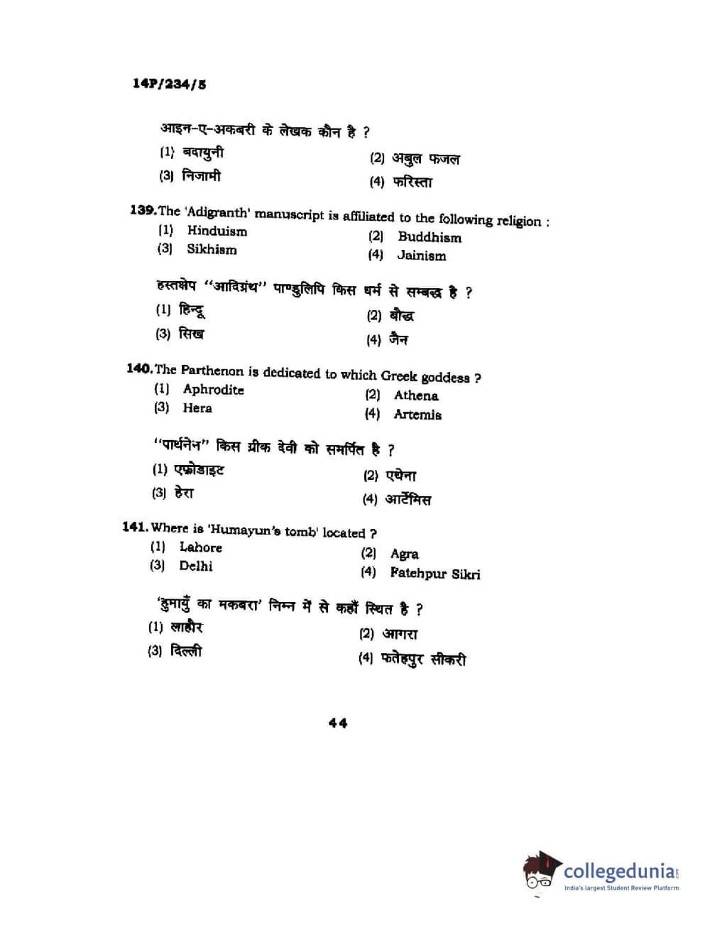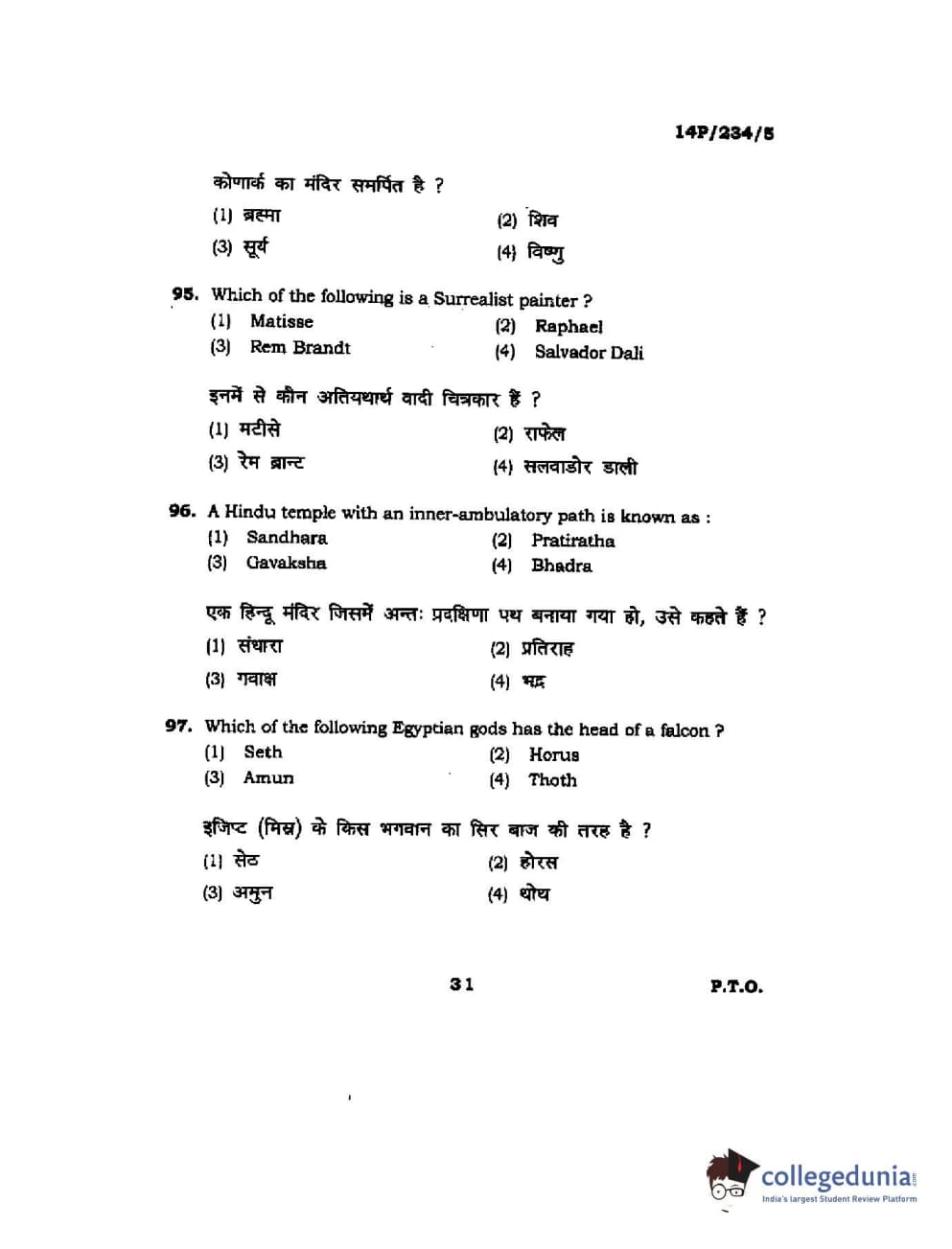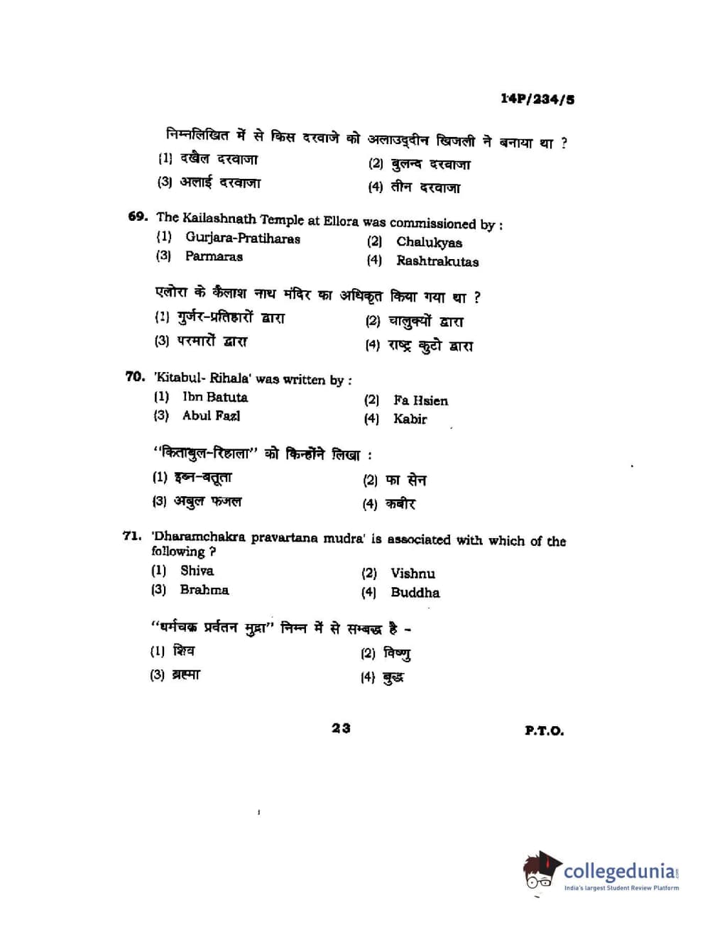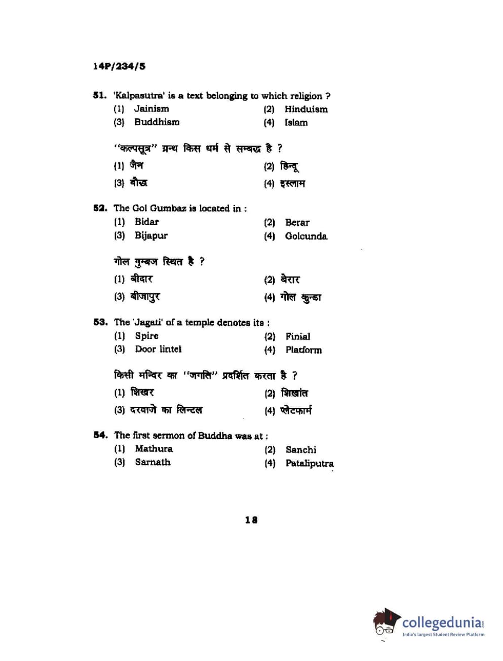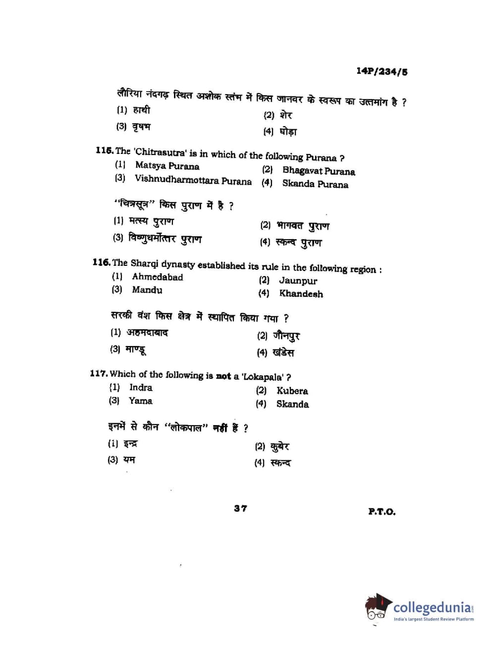 BHU PET 2014 M.A. History of Arts Question Paper with Answer Key PDFs