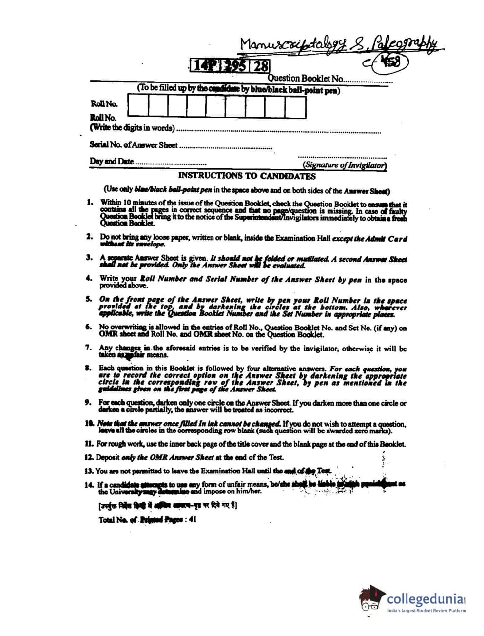 BHU PET 2014 M.A. Manuscriptology & Paleography Question Paper with Answer Key PDFs
