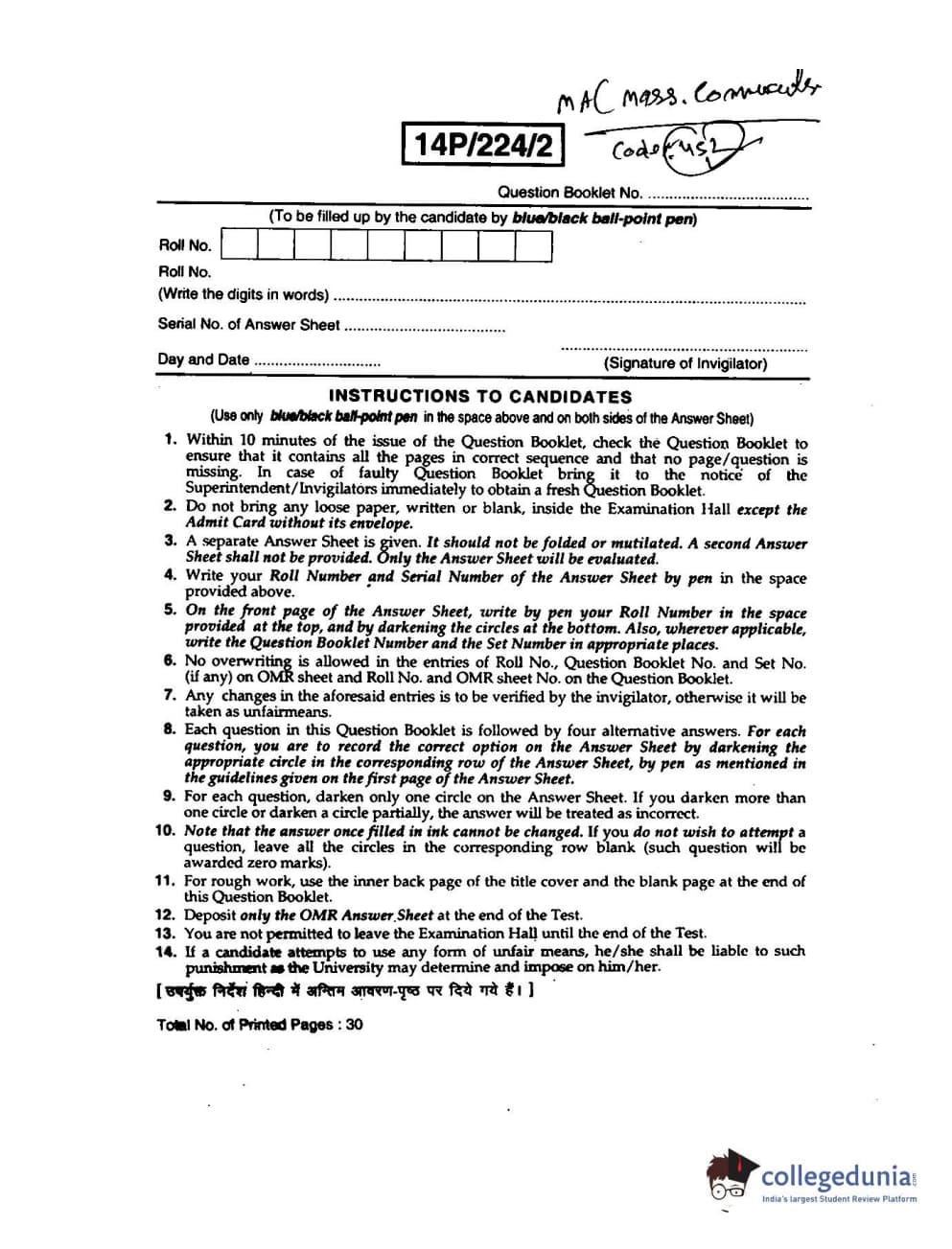 | BHU PET 2014 M.A. Mass. Communication Question Paper PDF | BHU PET 2014 M.A. Mass. Communication Answer Key PDF |