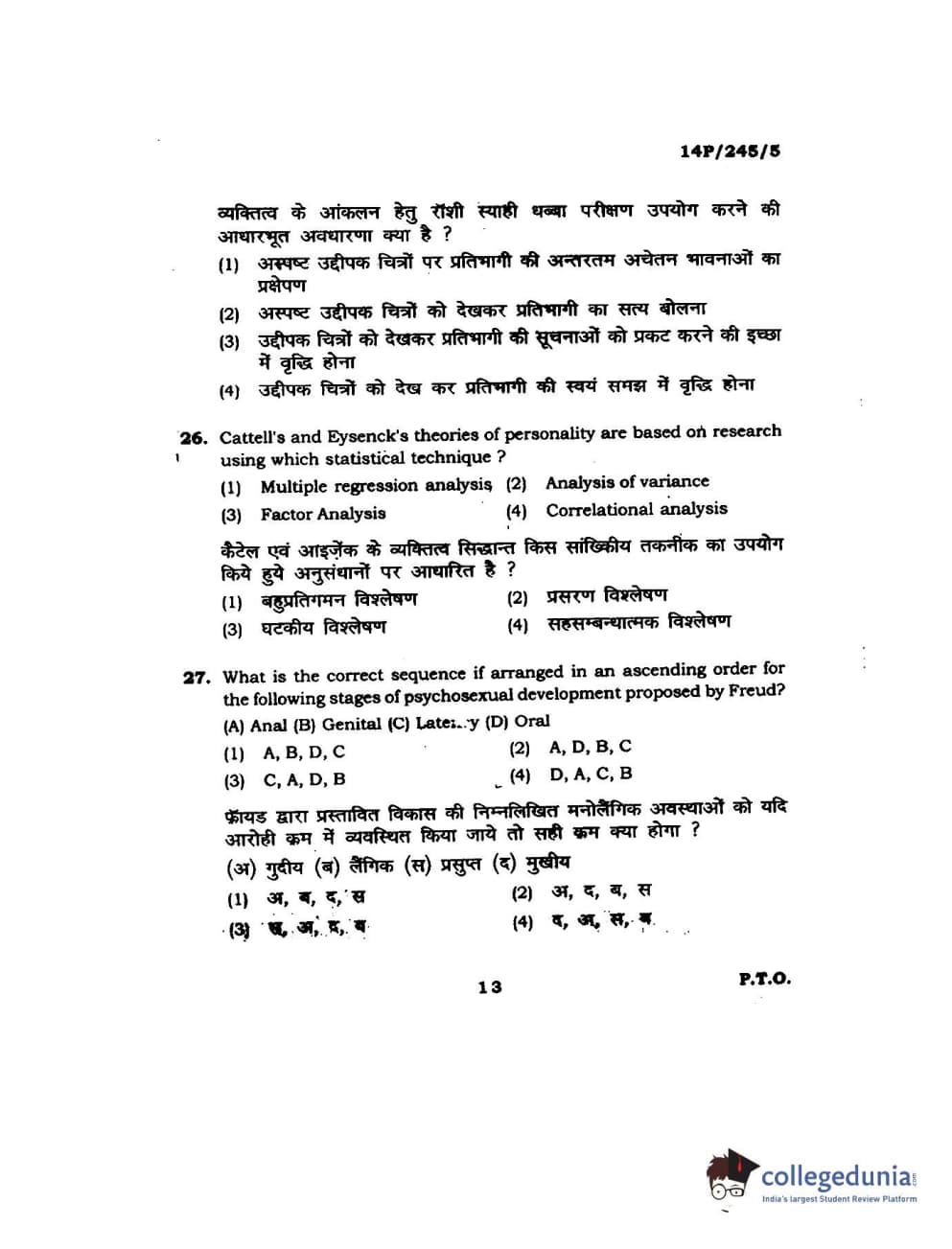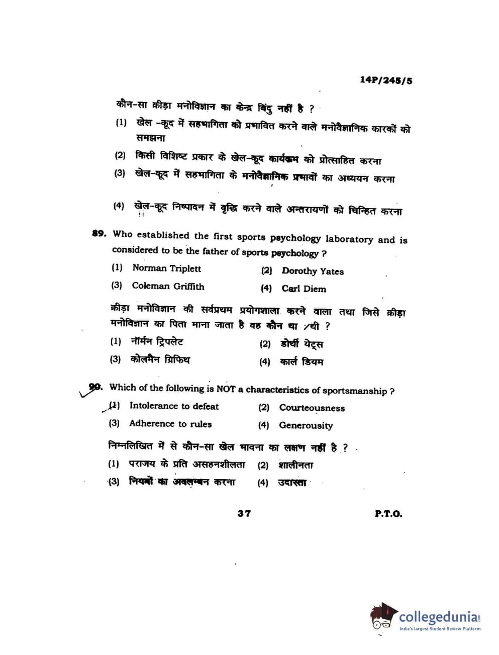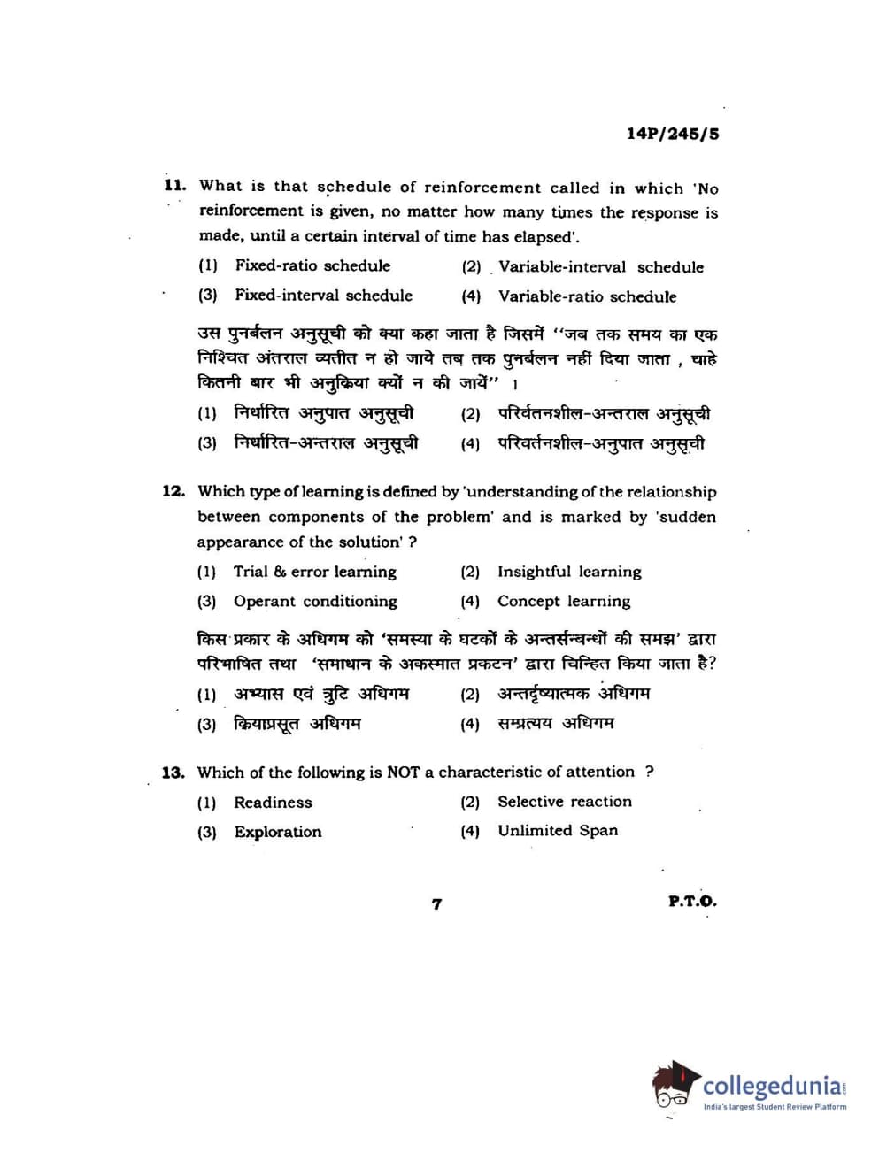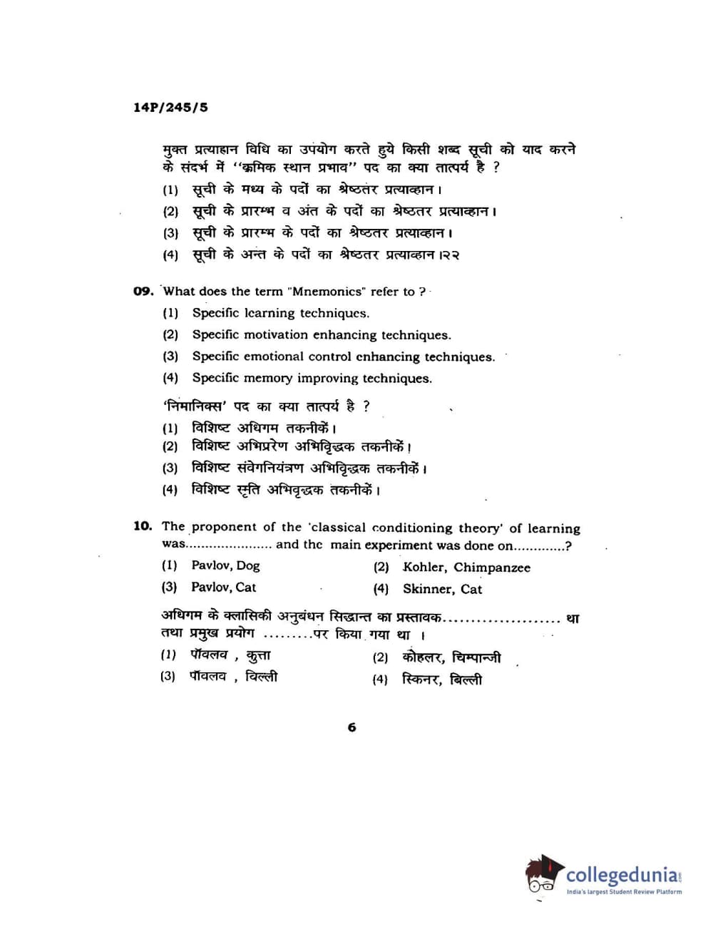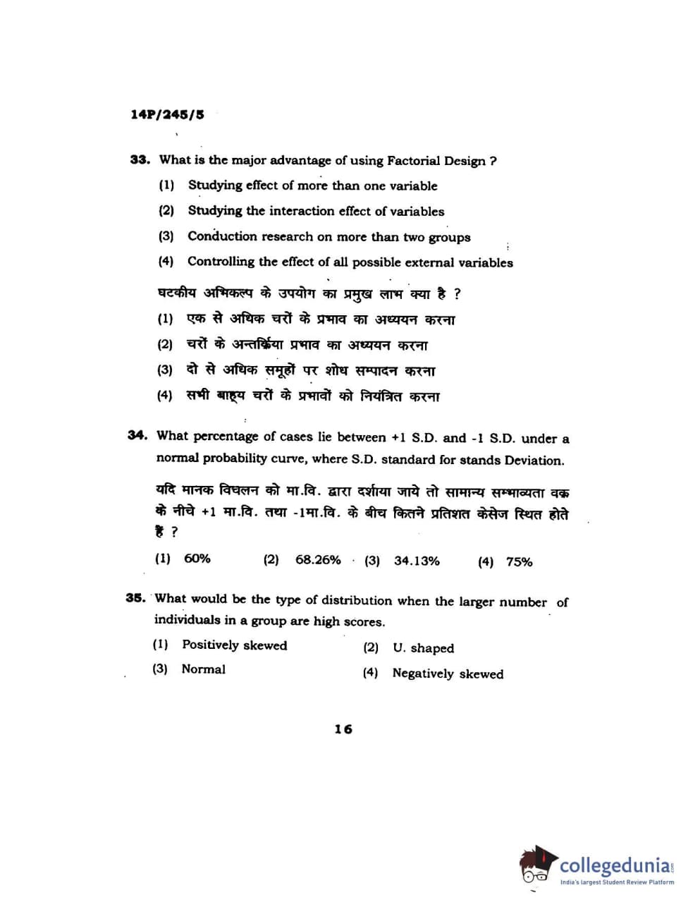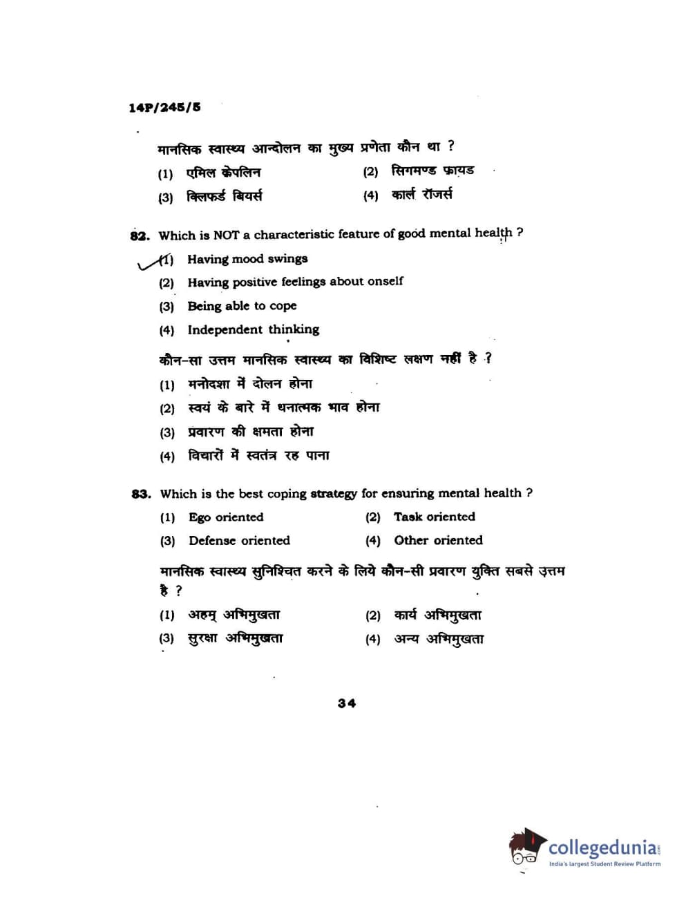 BHU PET 2014 MA Msc Psychology Question Paper with Answer Key PDFs
