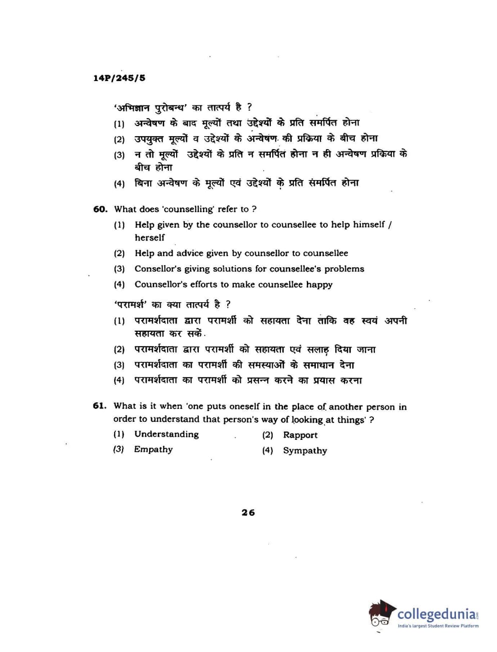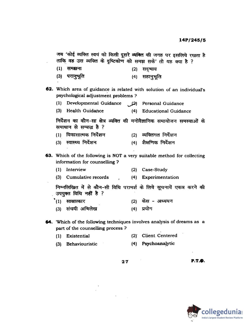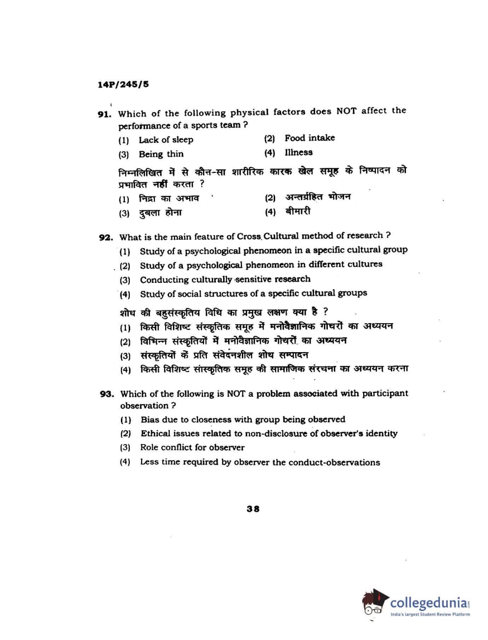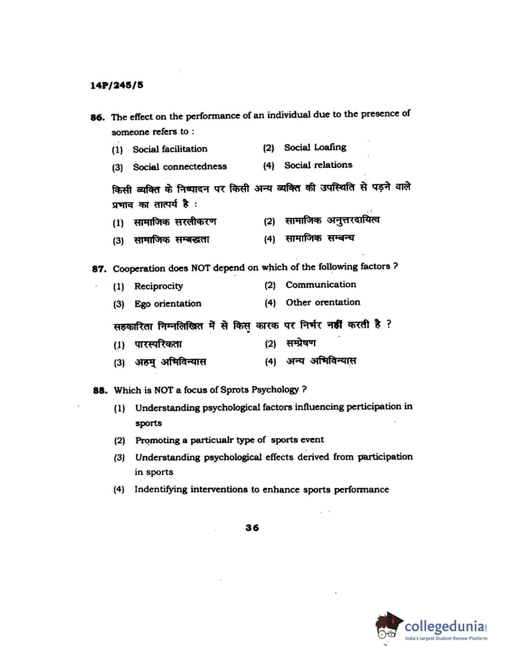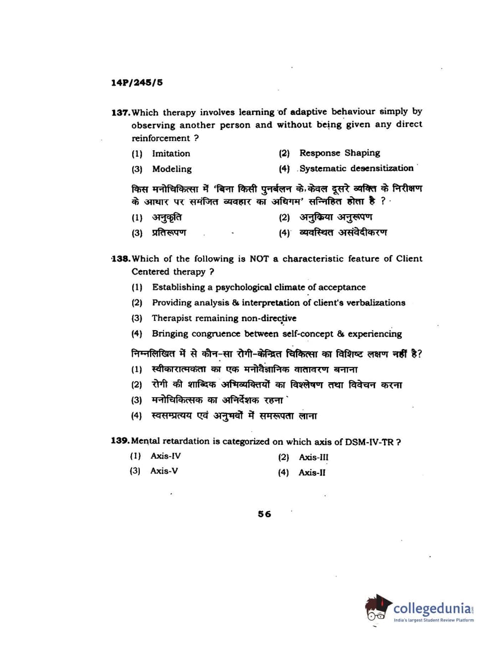 BHU PET 2014 MA Msc Psychology Question Paper with Answer Key PDFs