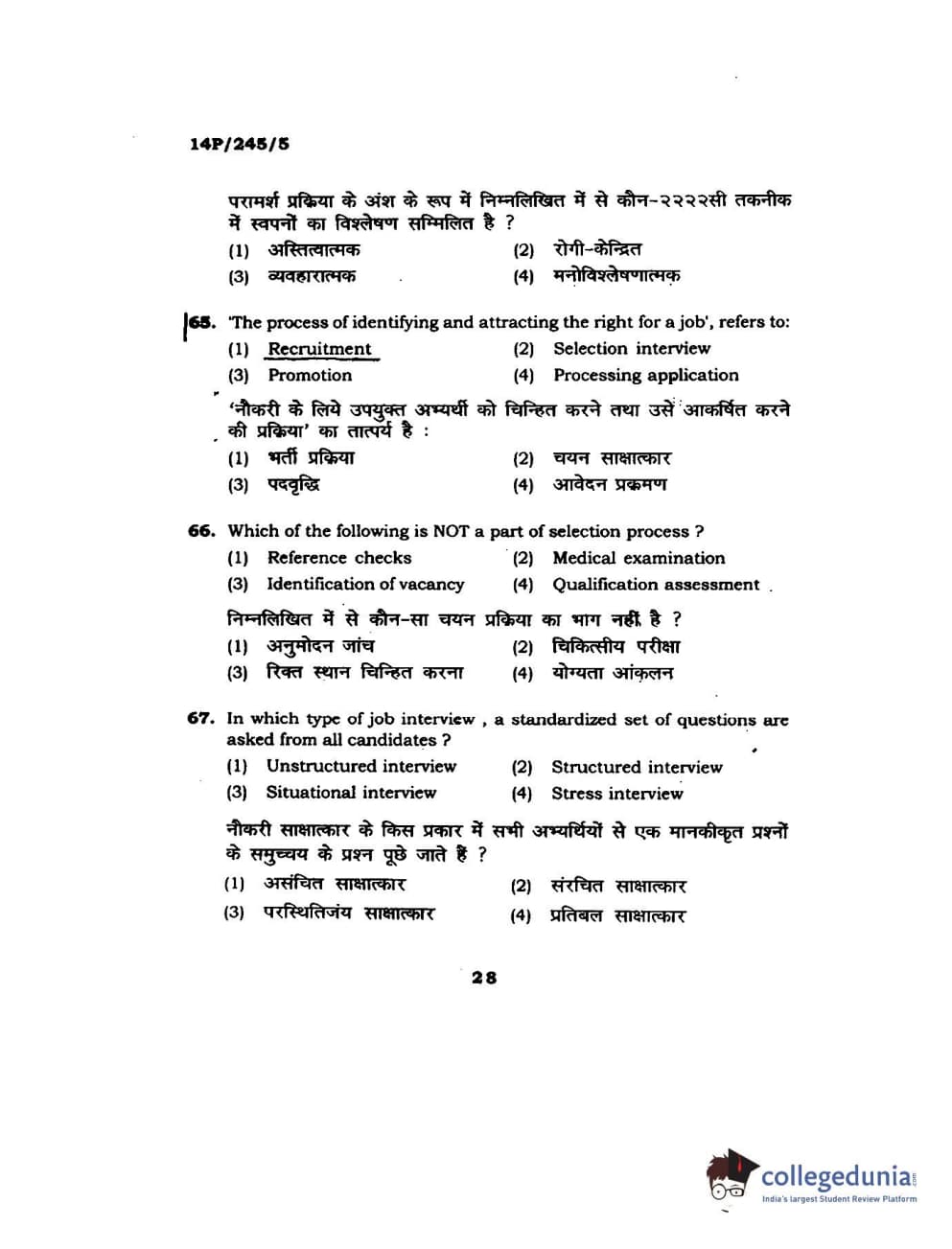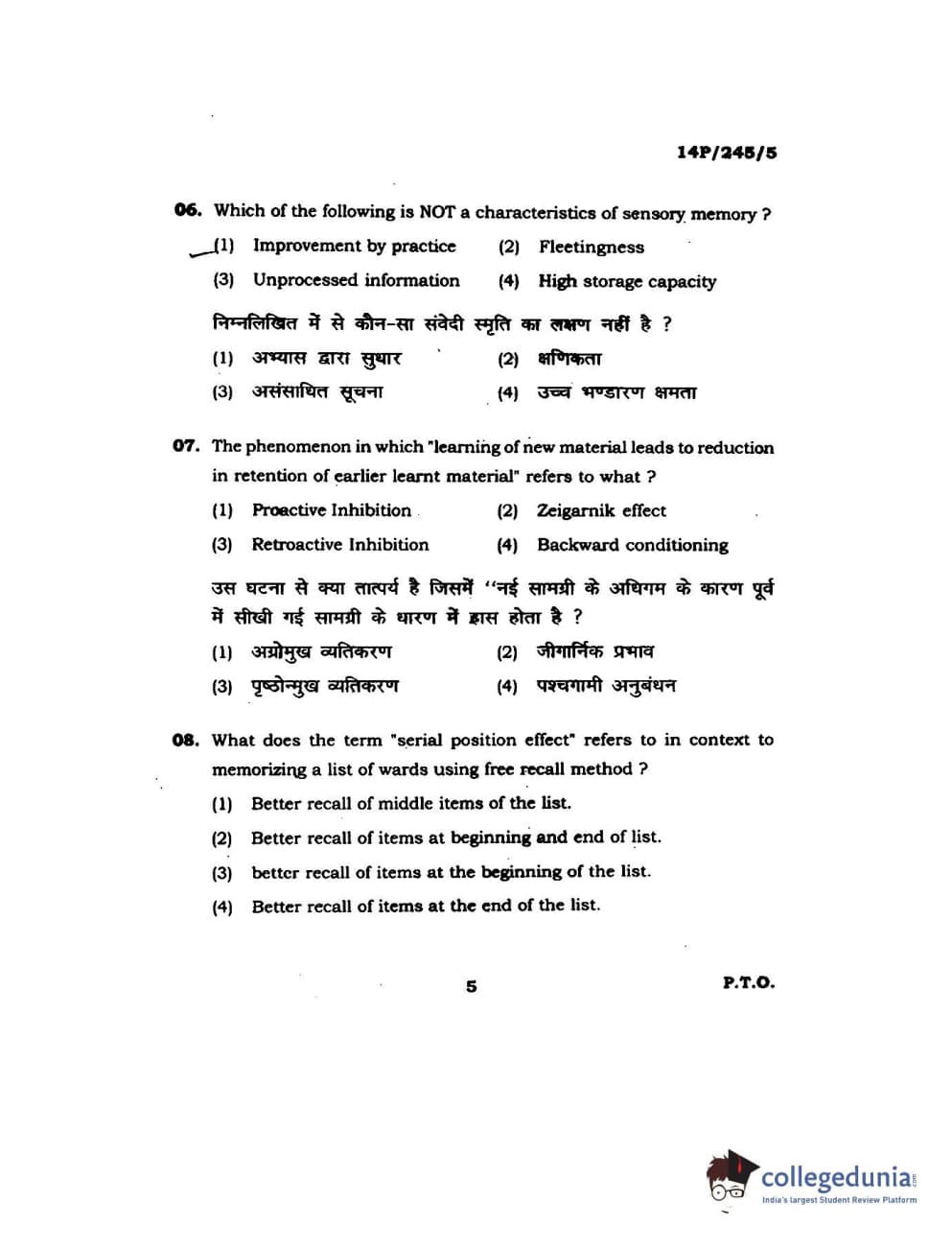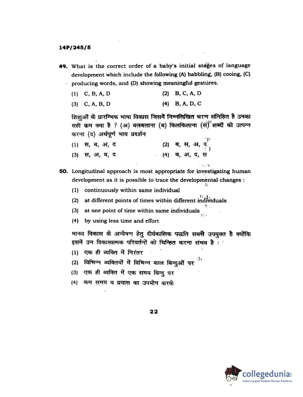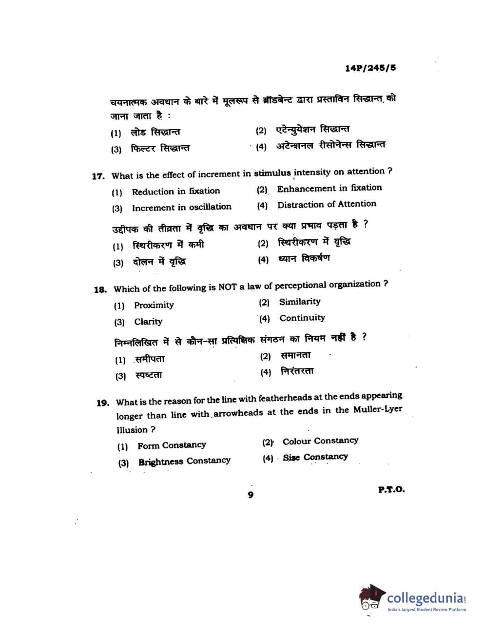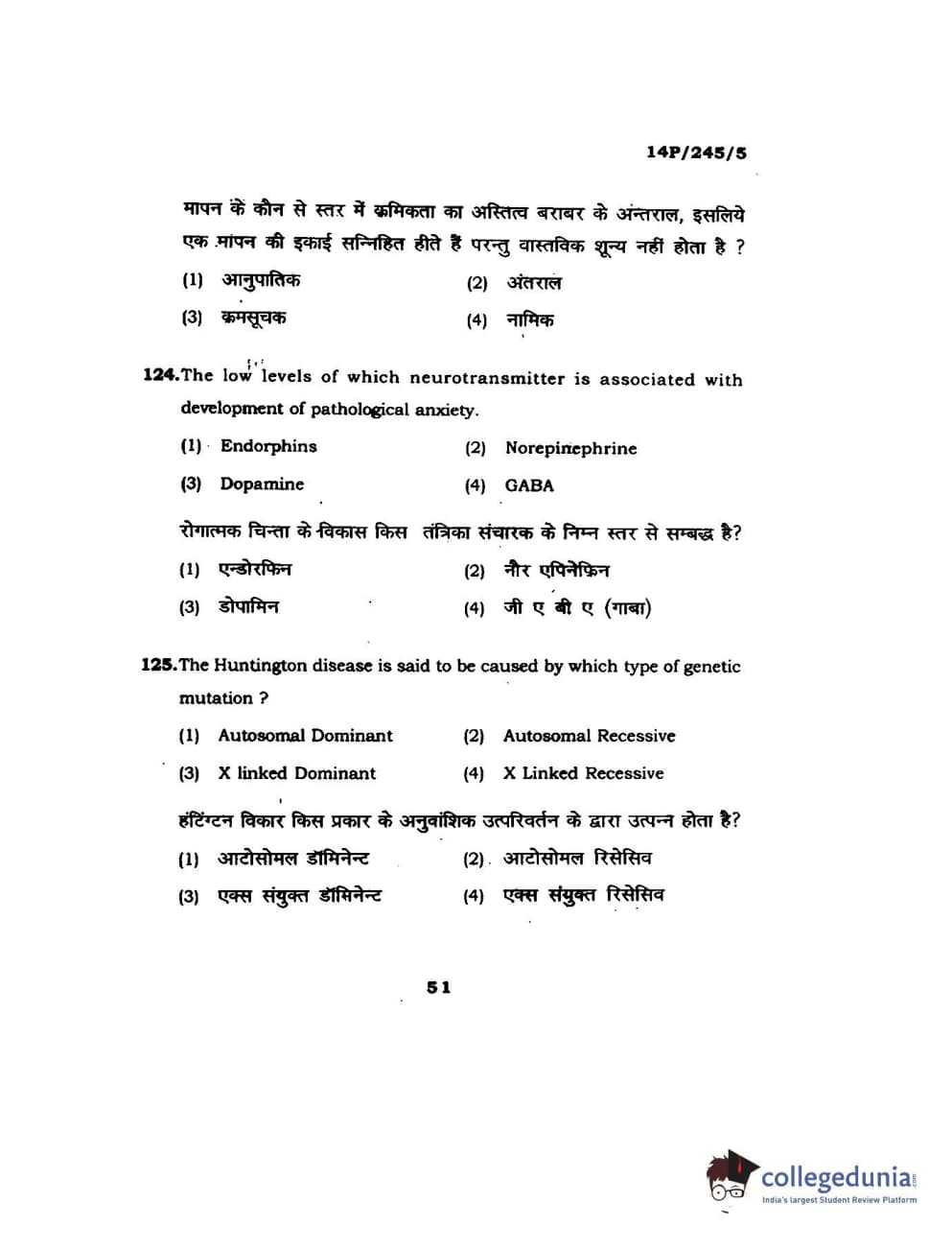 BHU PET 2014 MA Msc Psychology Question Paper with Answer Key PDFs