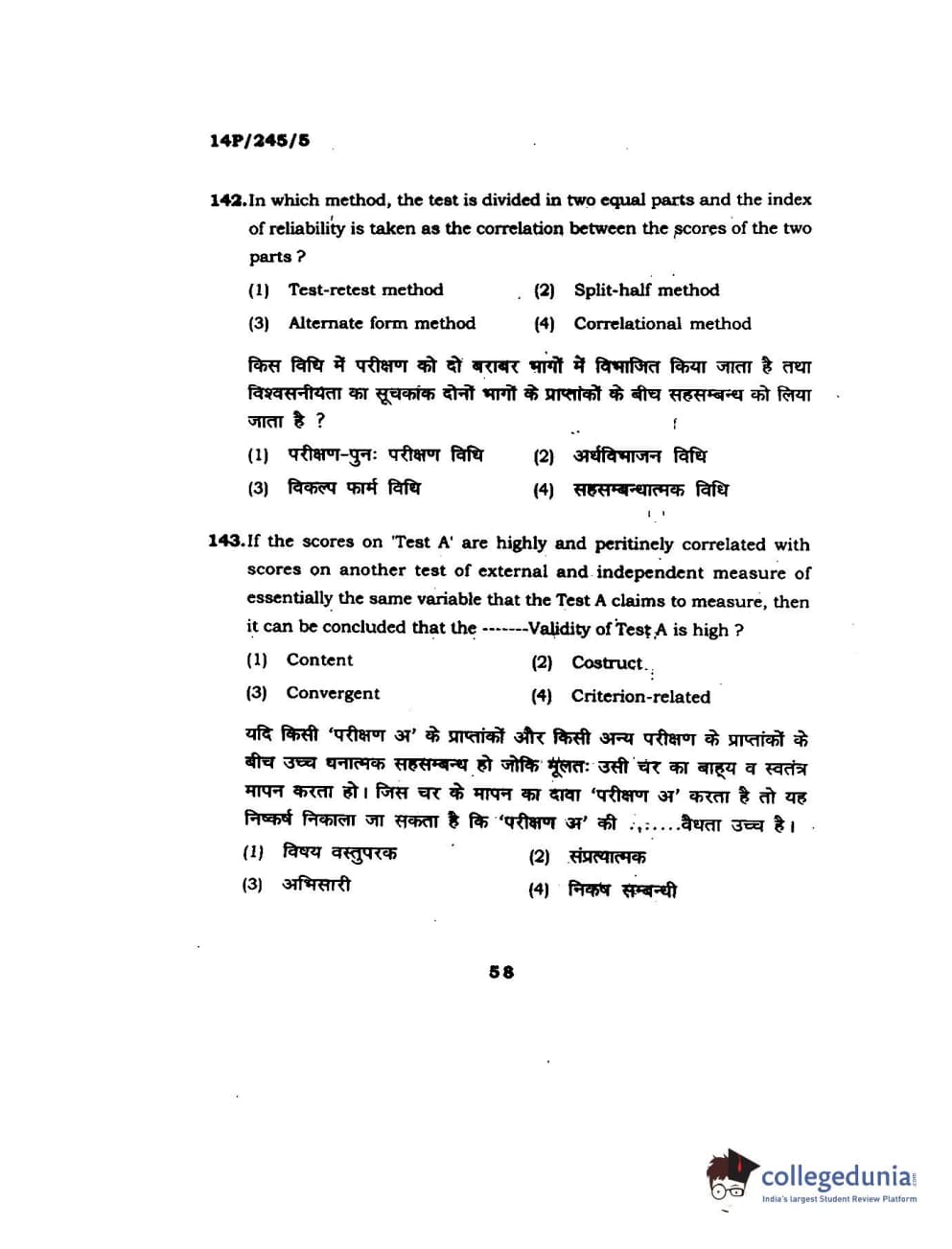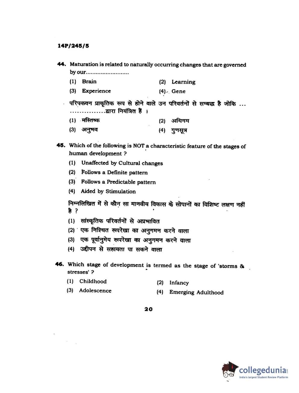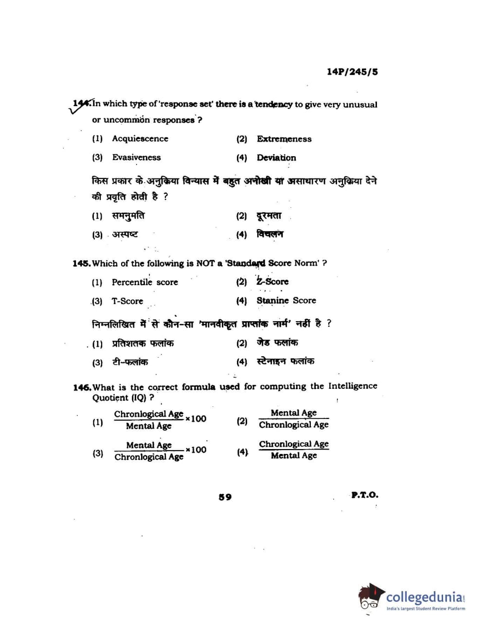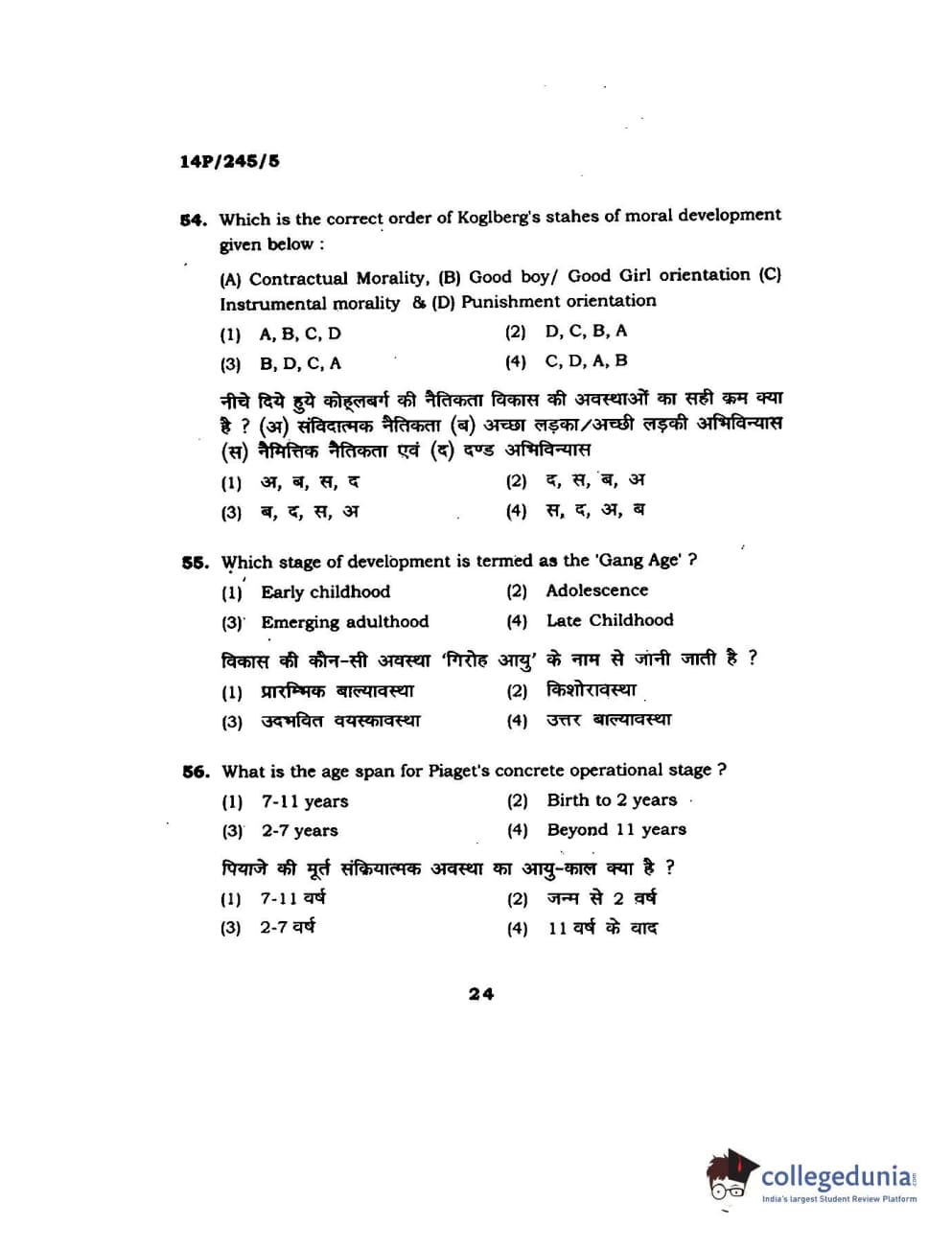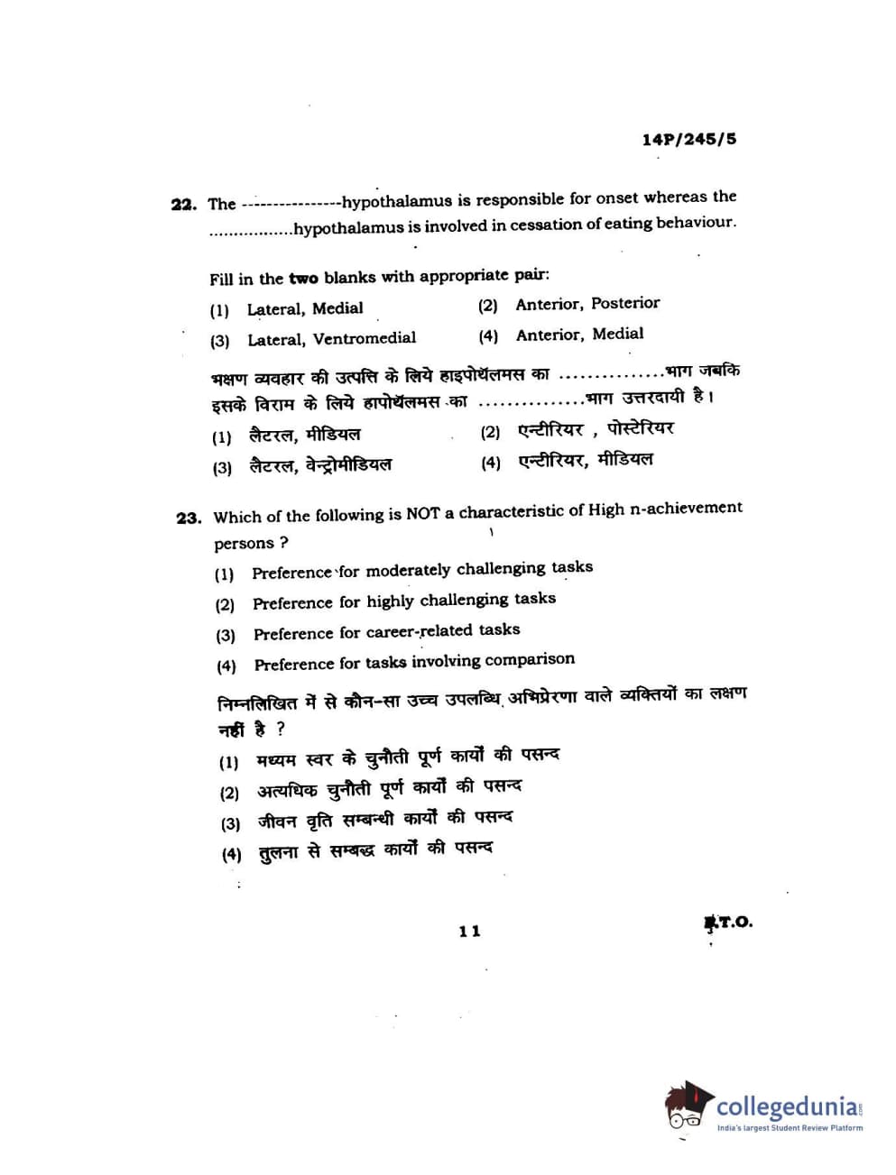 BHU PET 2014 MA Msc Psychology Question Paper with Answer Key PDFs