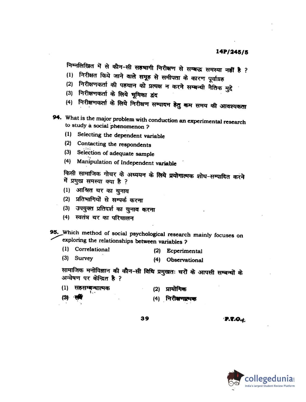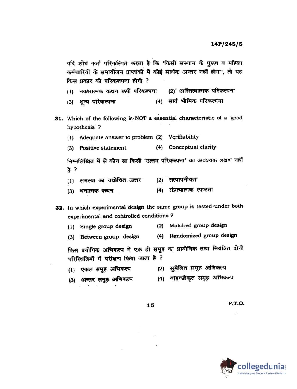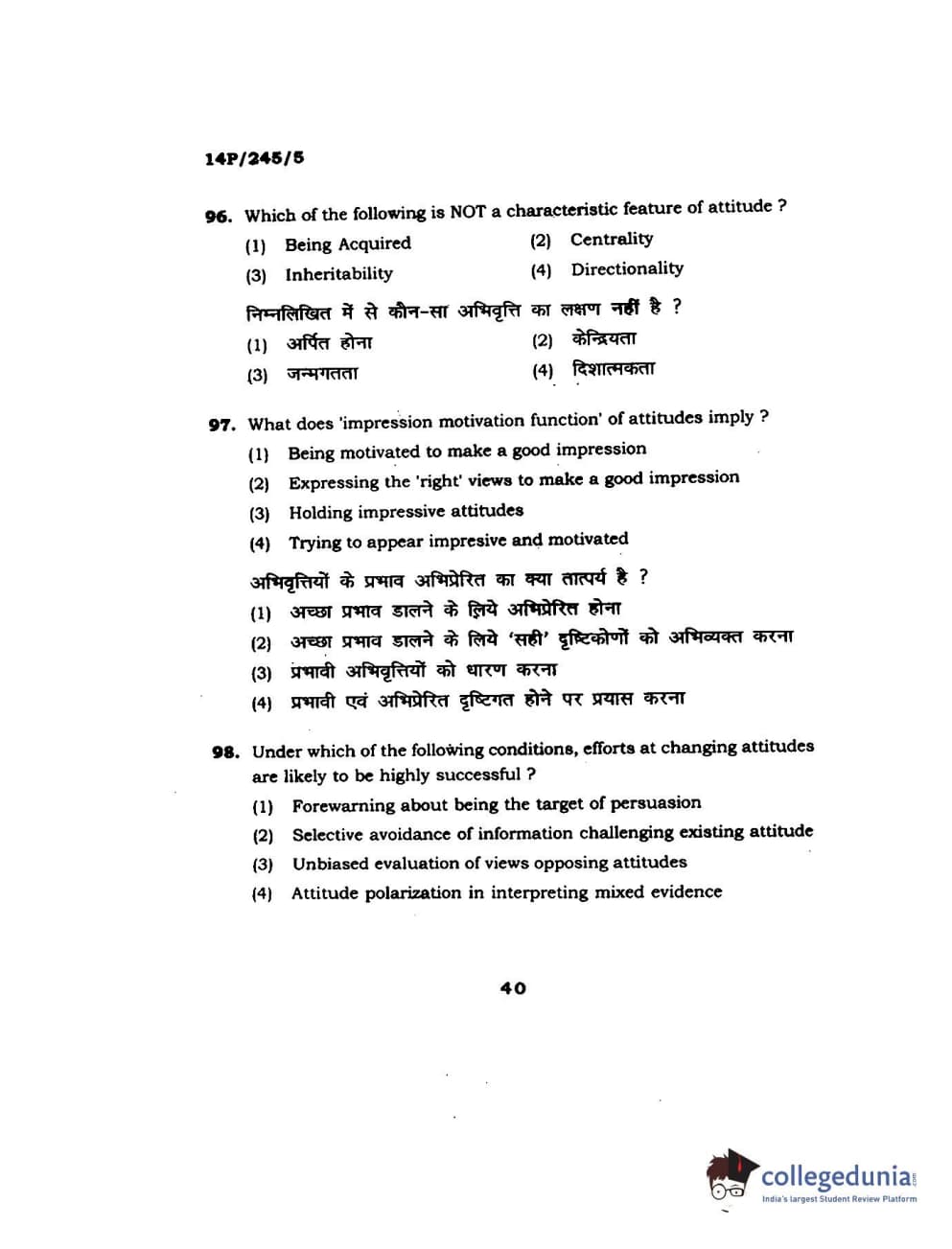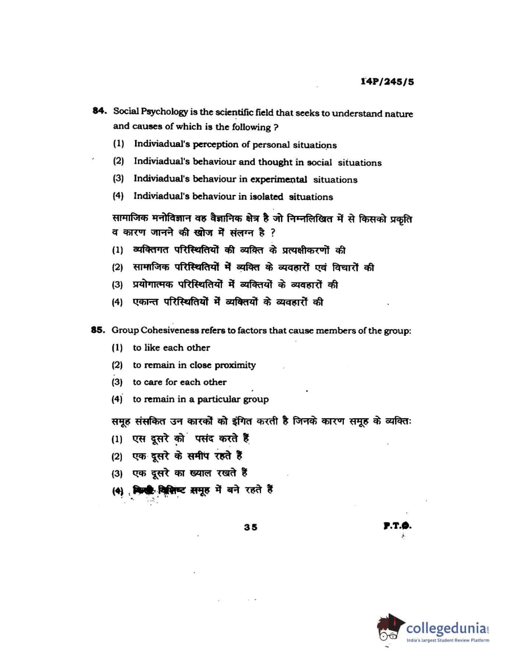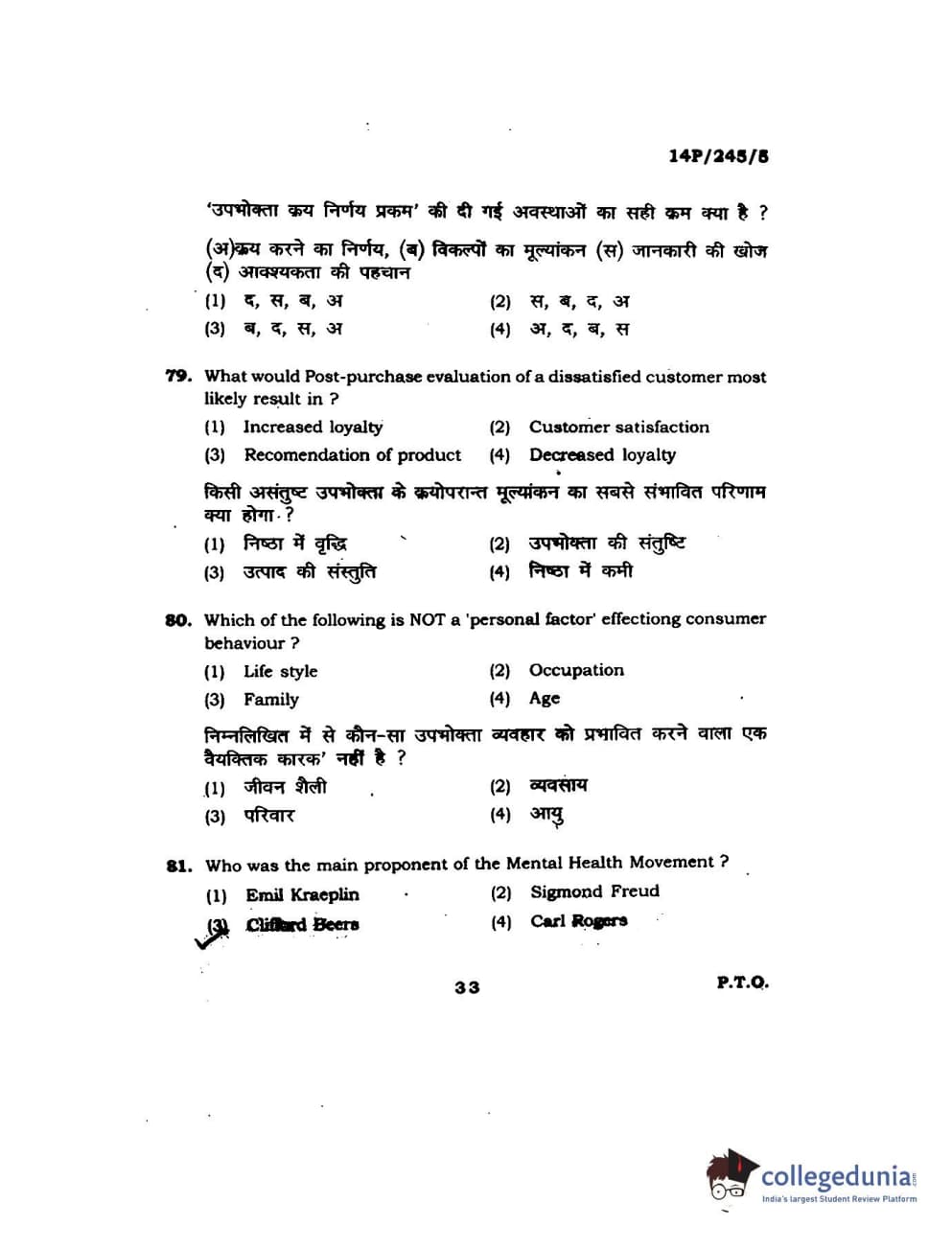 BHU PET 2014 MA Msc Psychology Question Paper with Answer Key PDFs