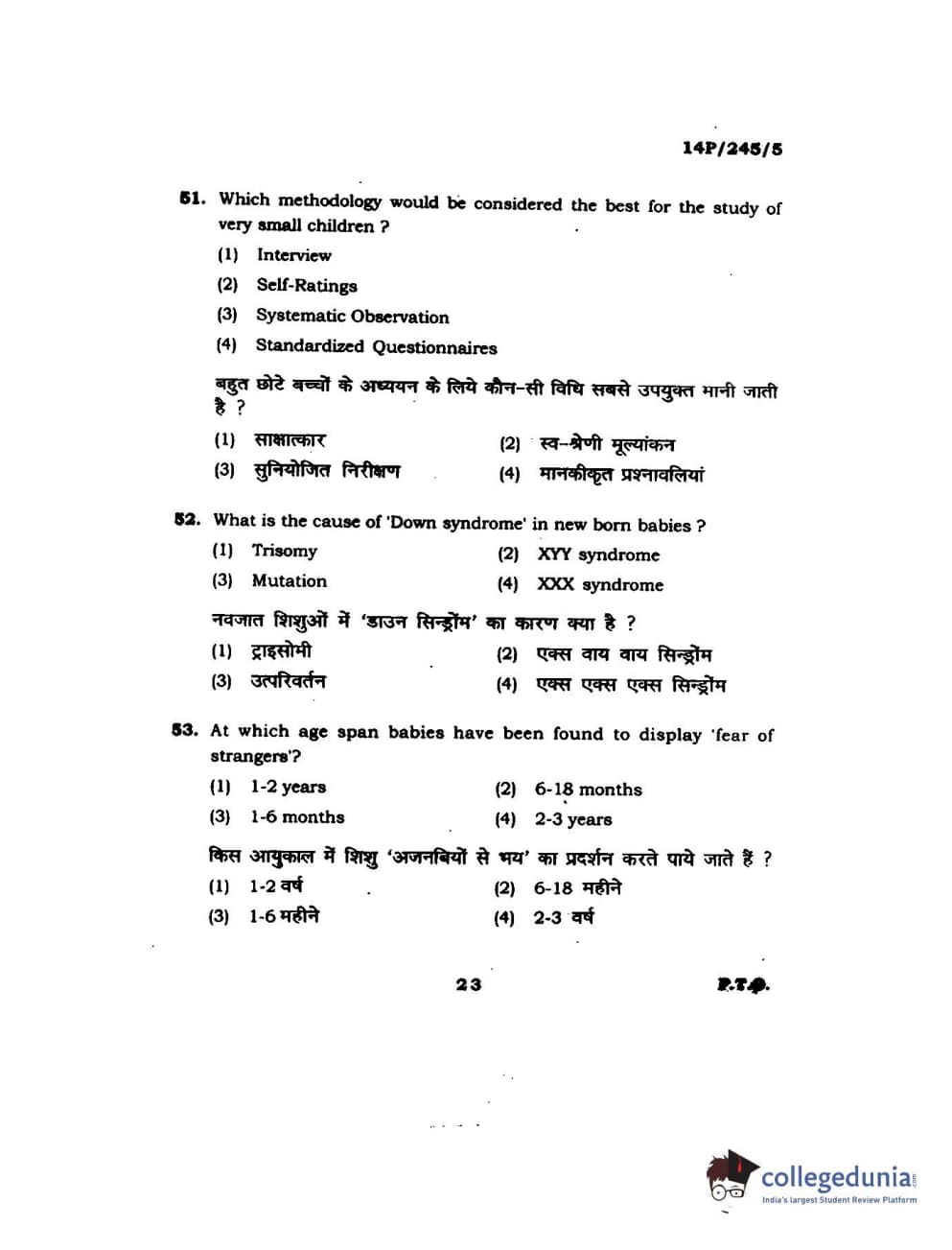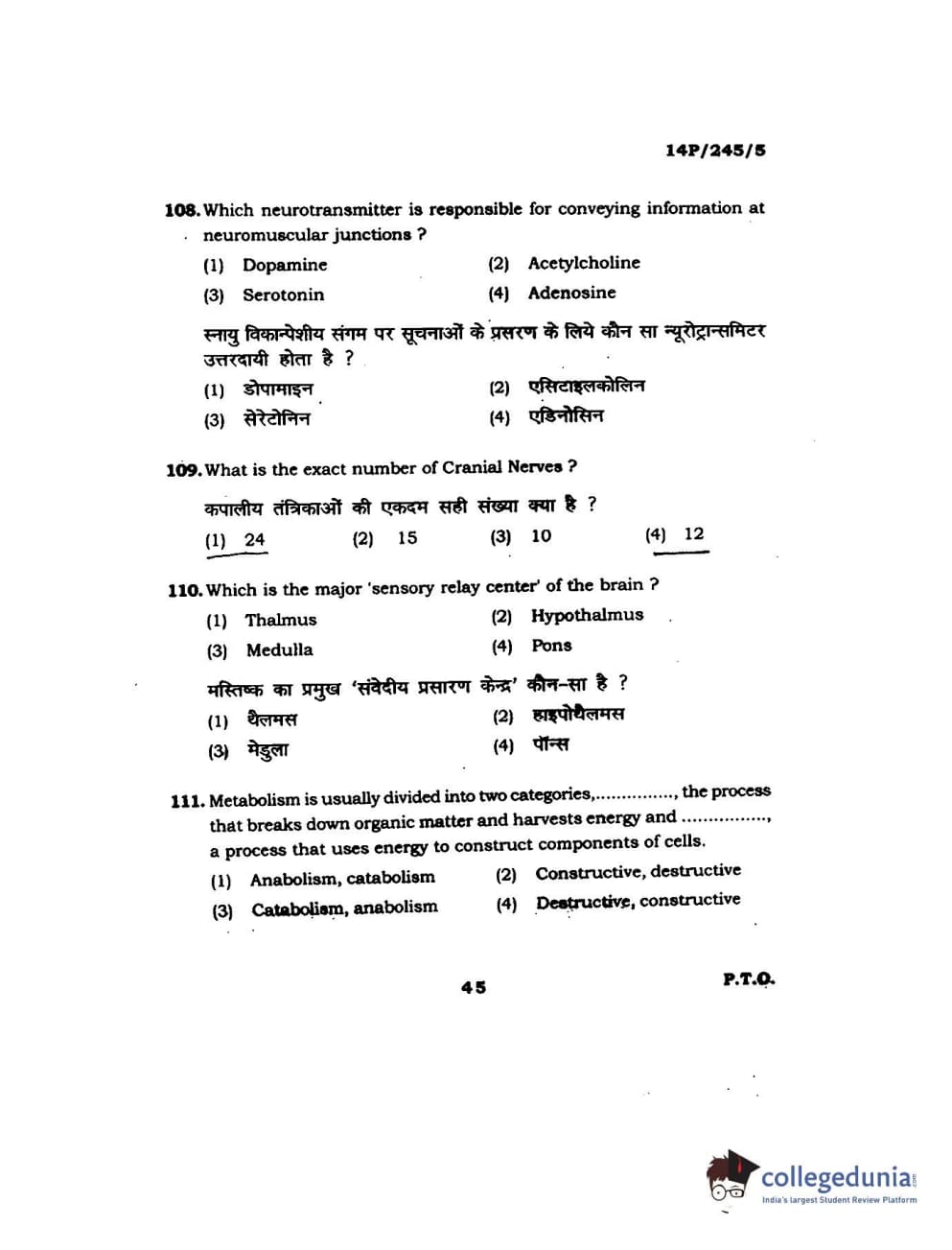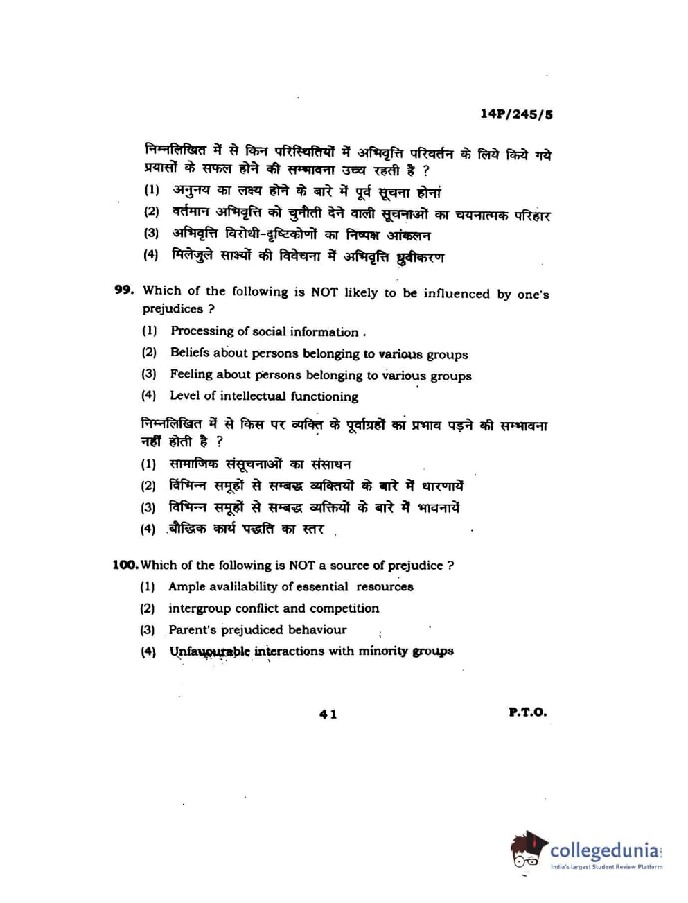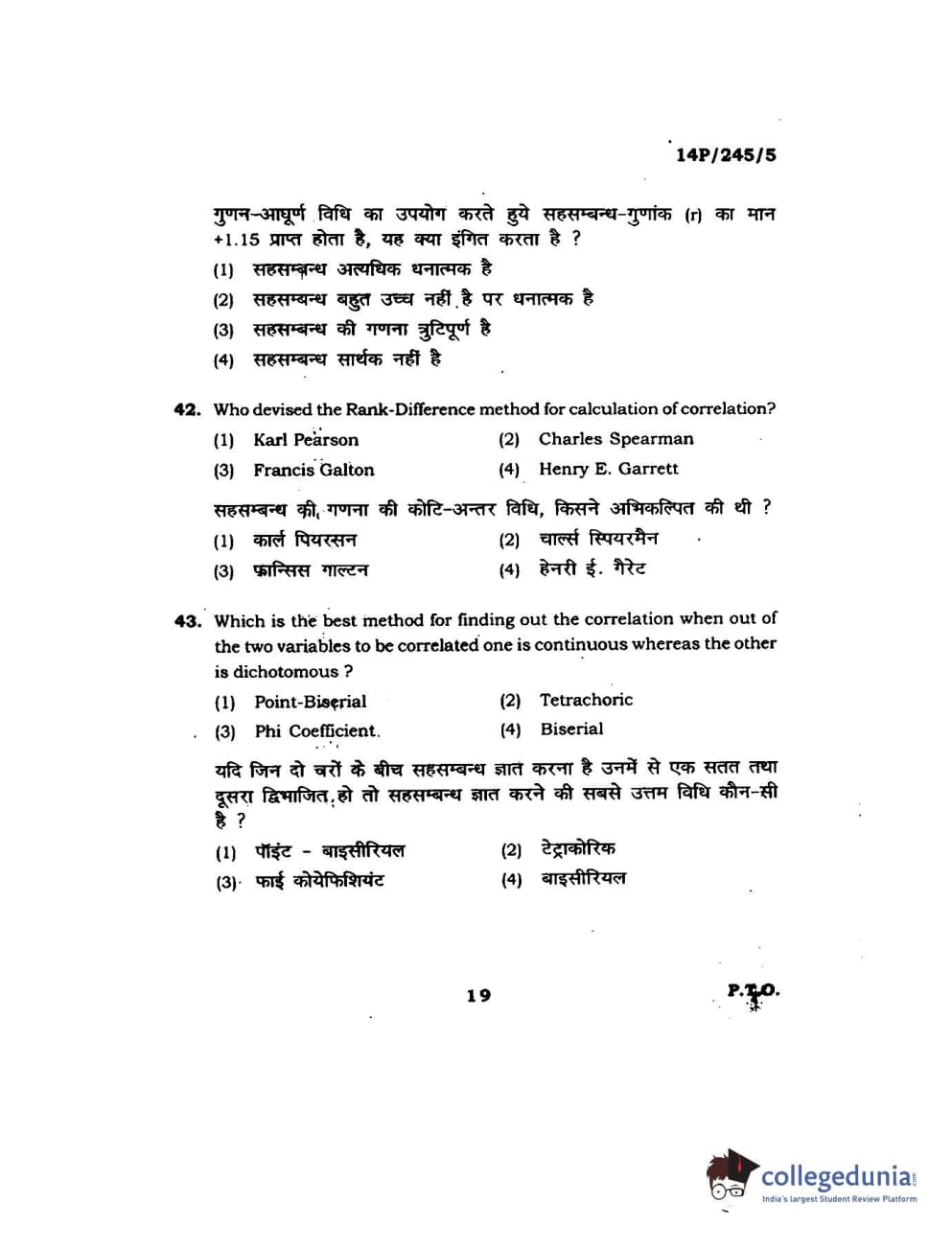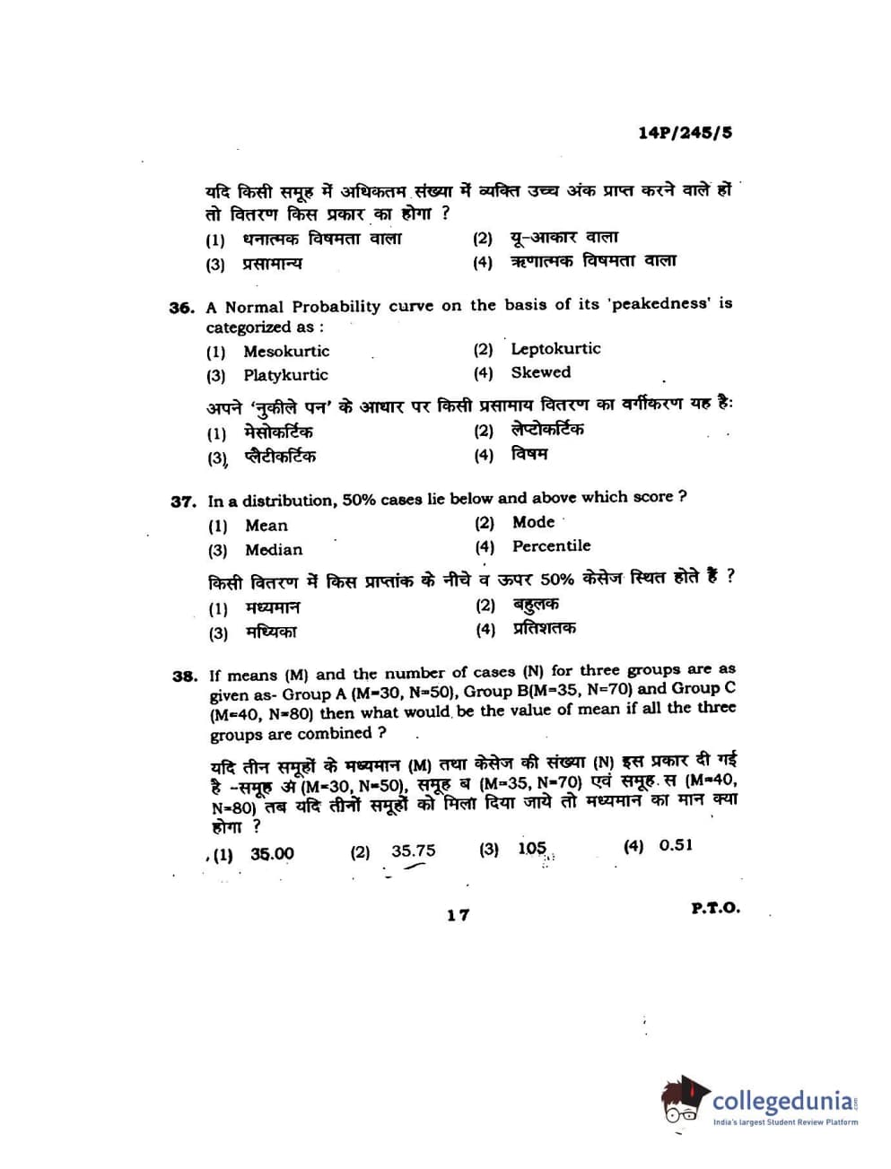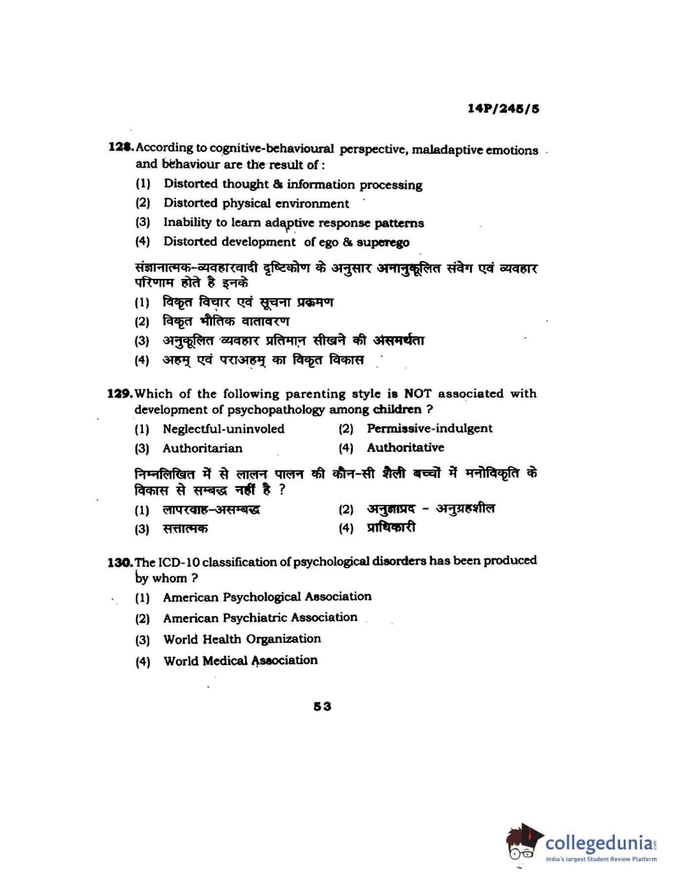 BHU PET 2014 MA Msc Psychology Question Paper with Answer Key PDFs