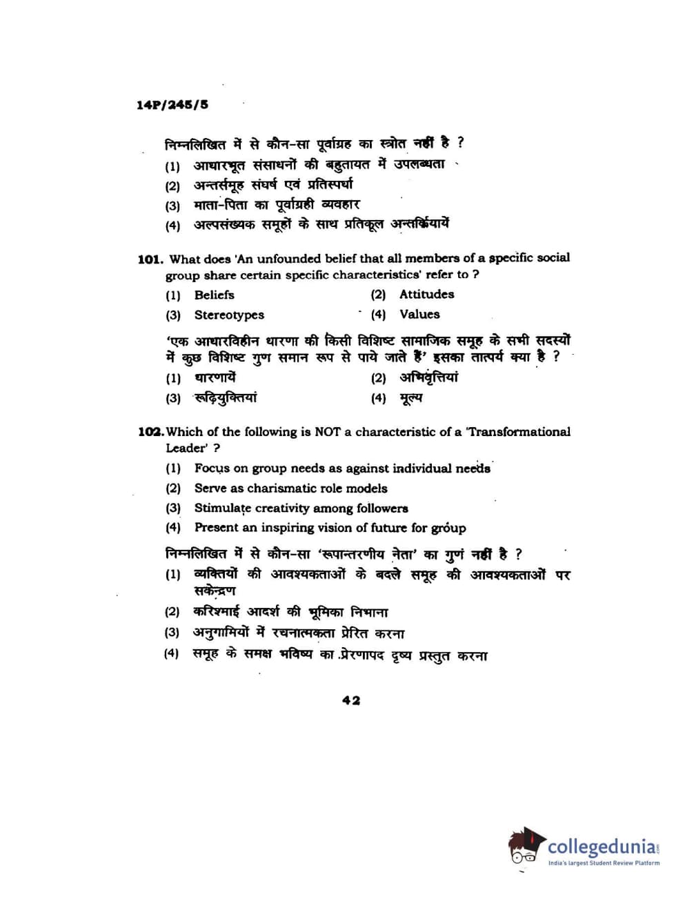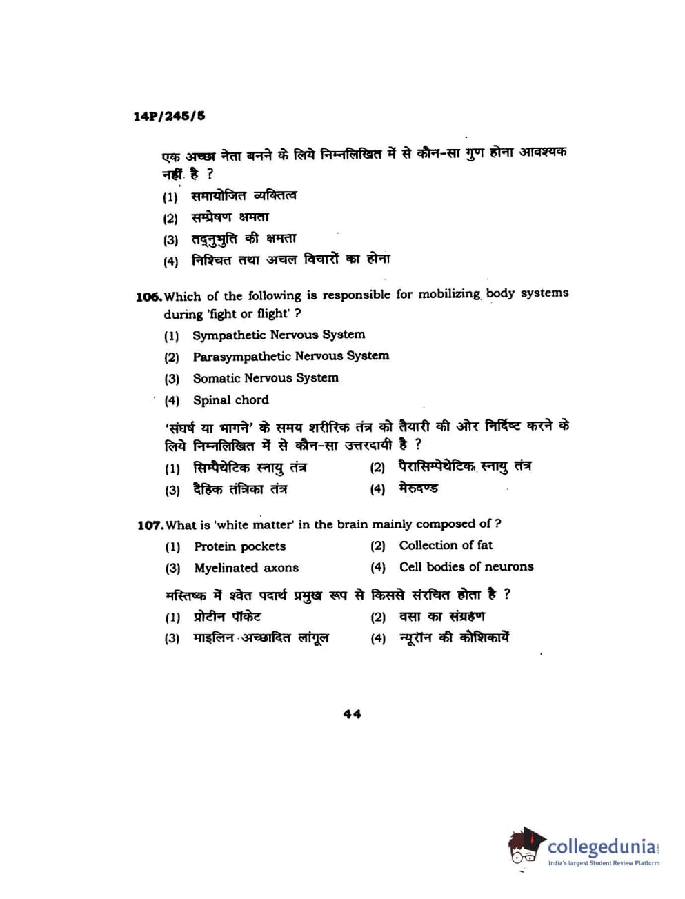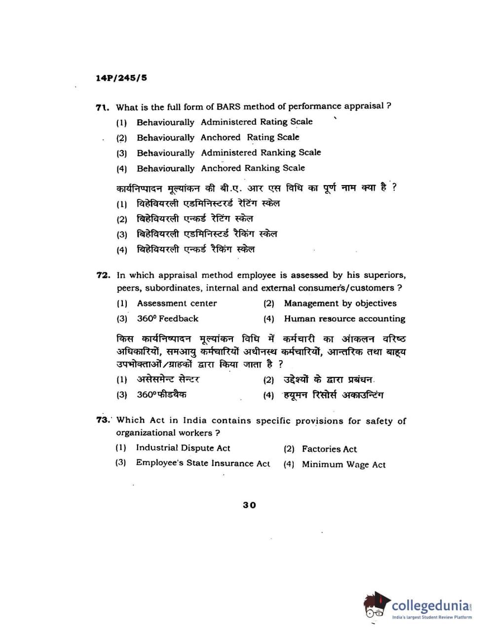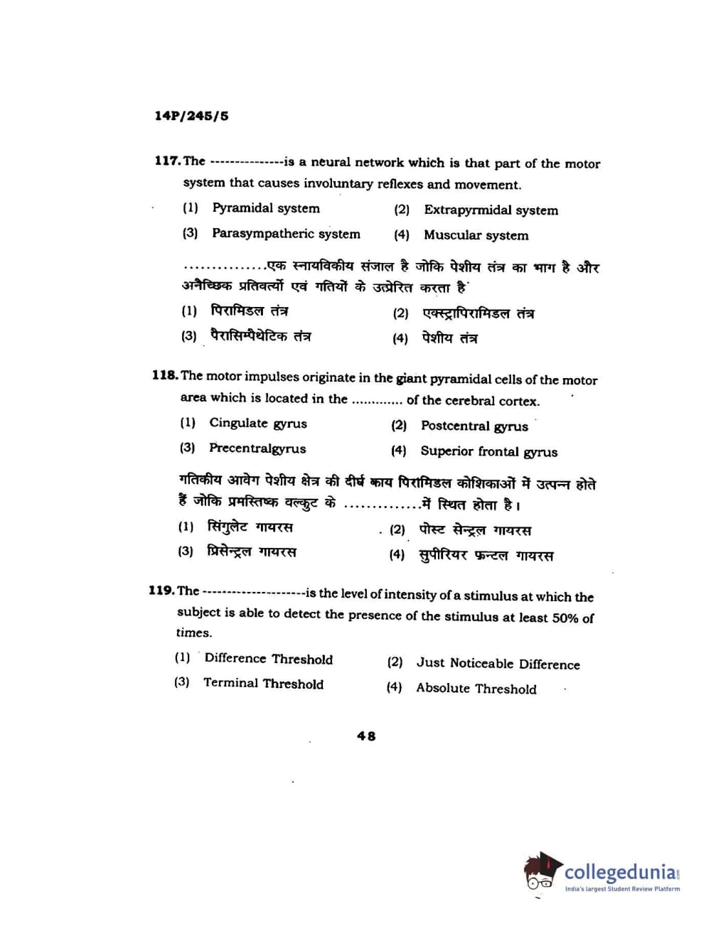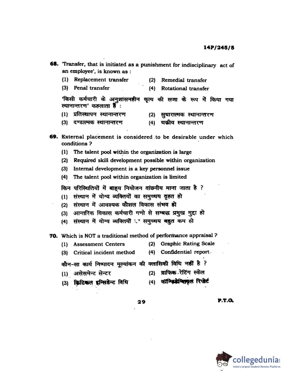 BHU PET 2014 MA Msc Psychology Question Paper with Answer Key PDFs
