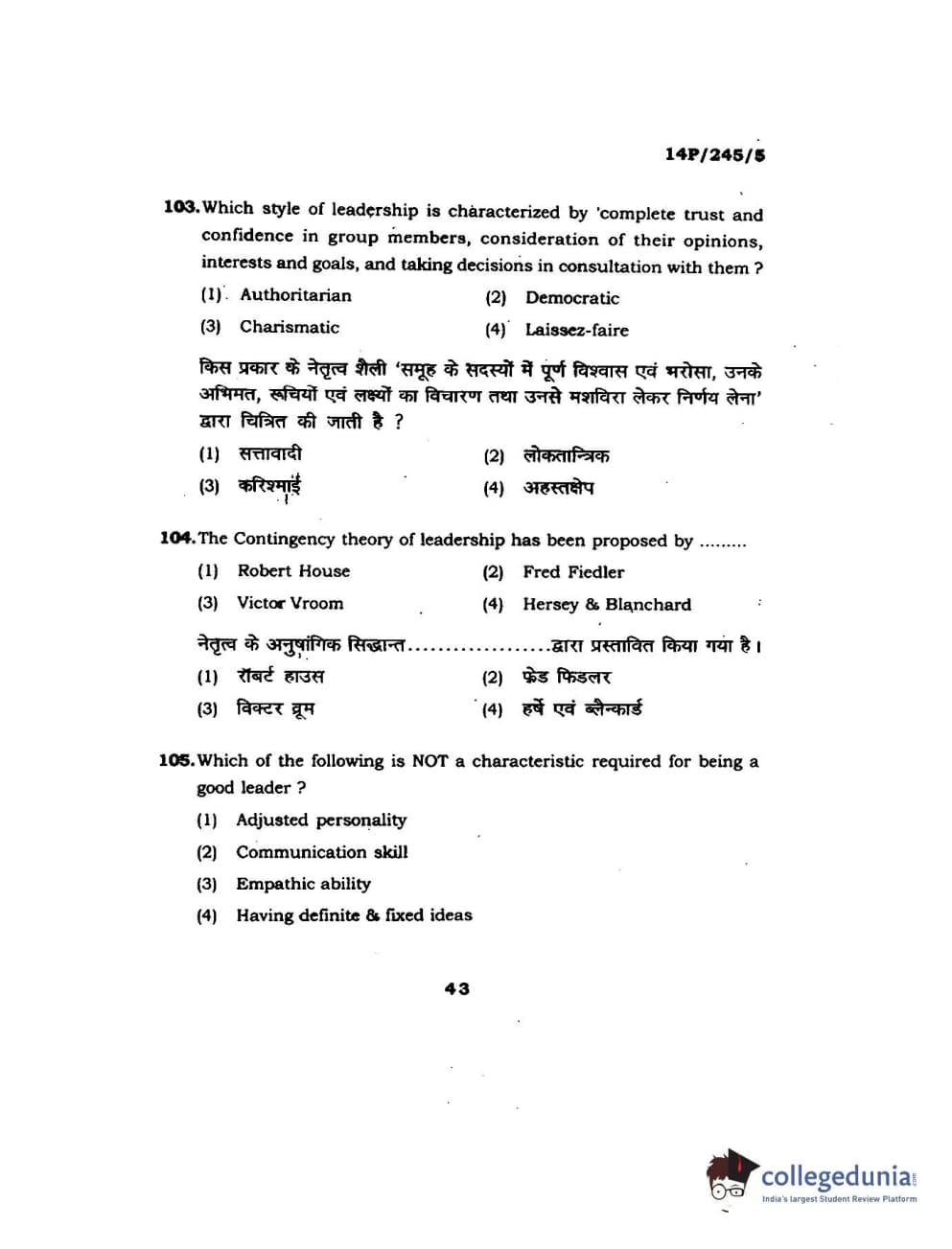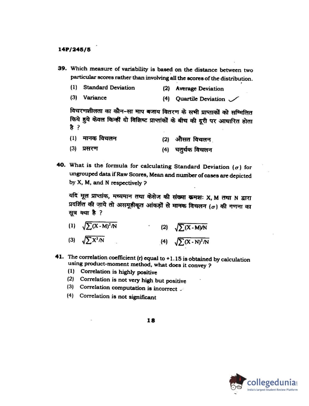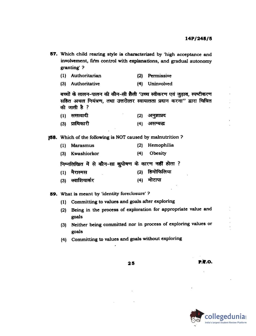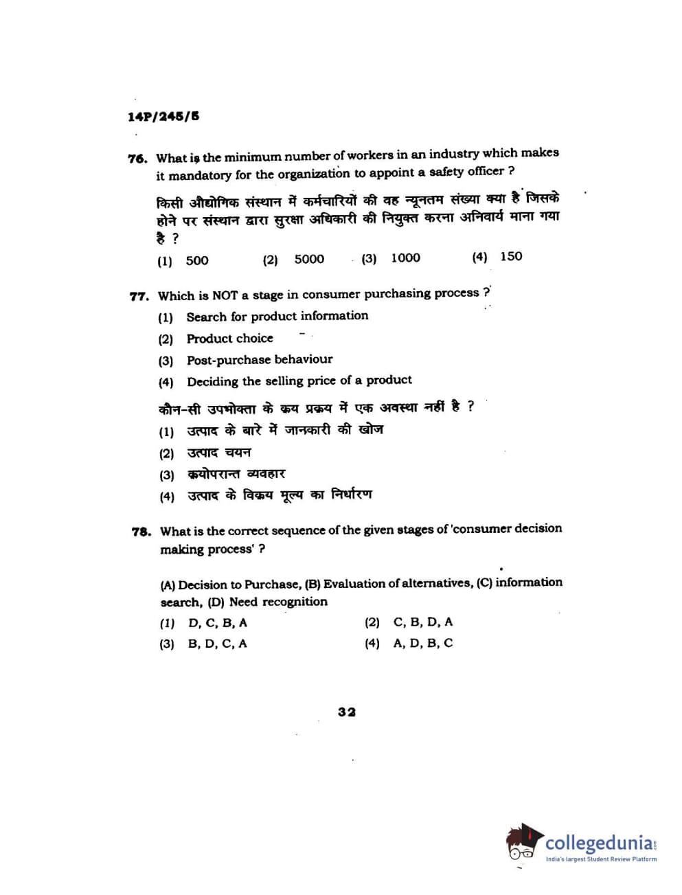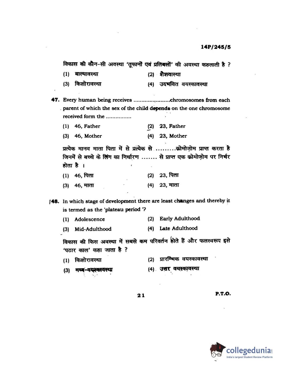 BHU PET 2014 MA Msc Psychology Question Paper with Answer Key PDFs