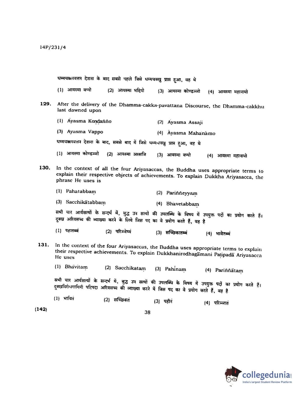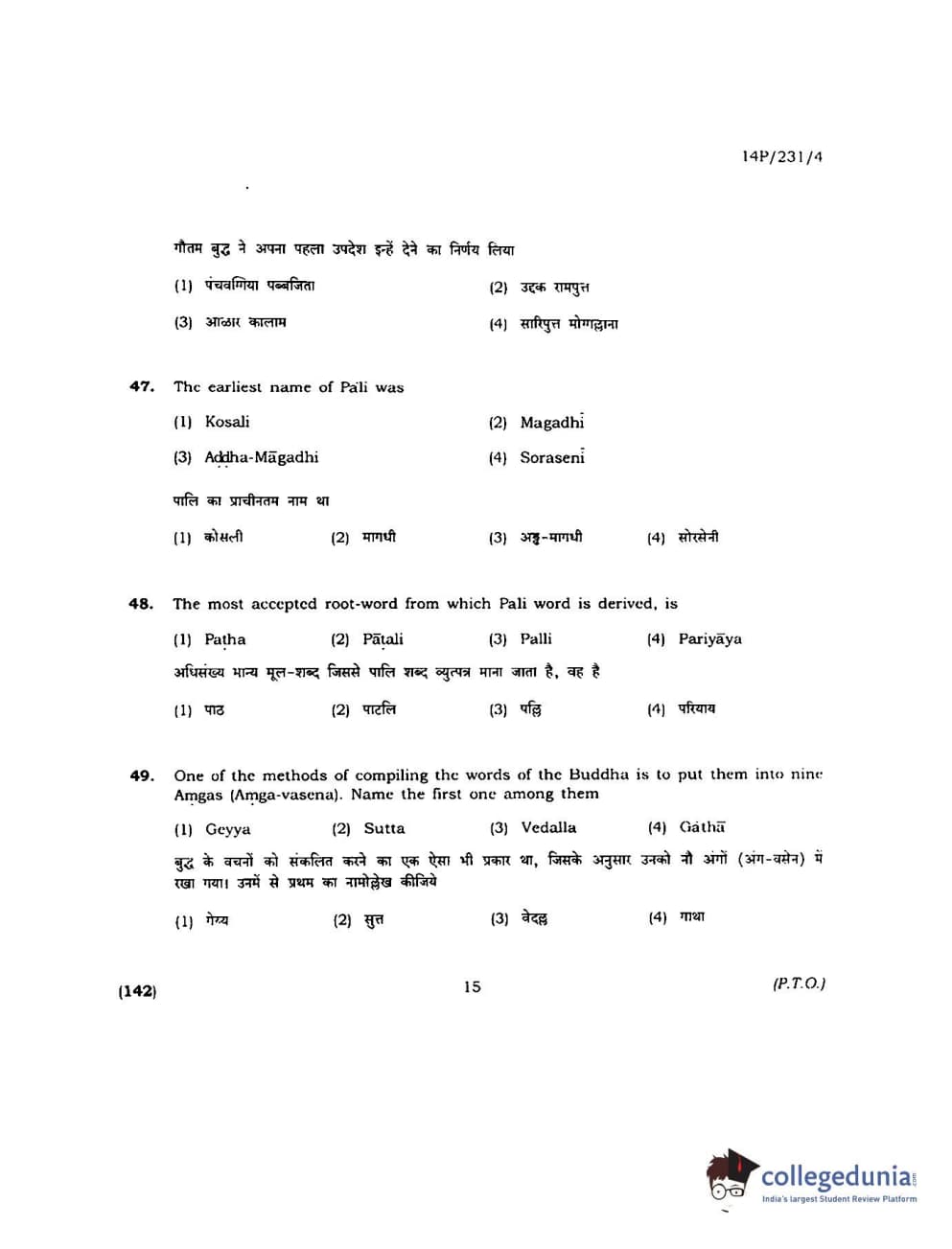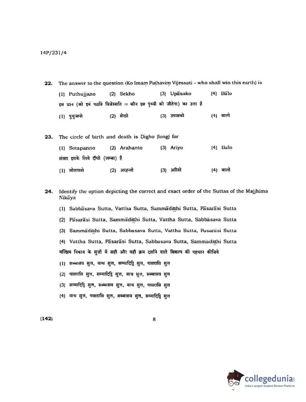BHU PET 2014 M.A. Pali Question Paper with Answer Key PDFs