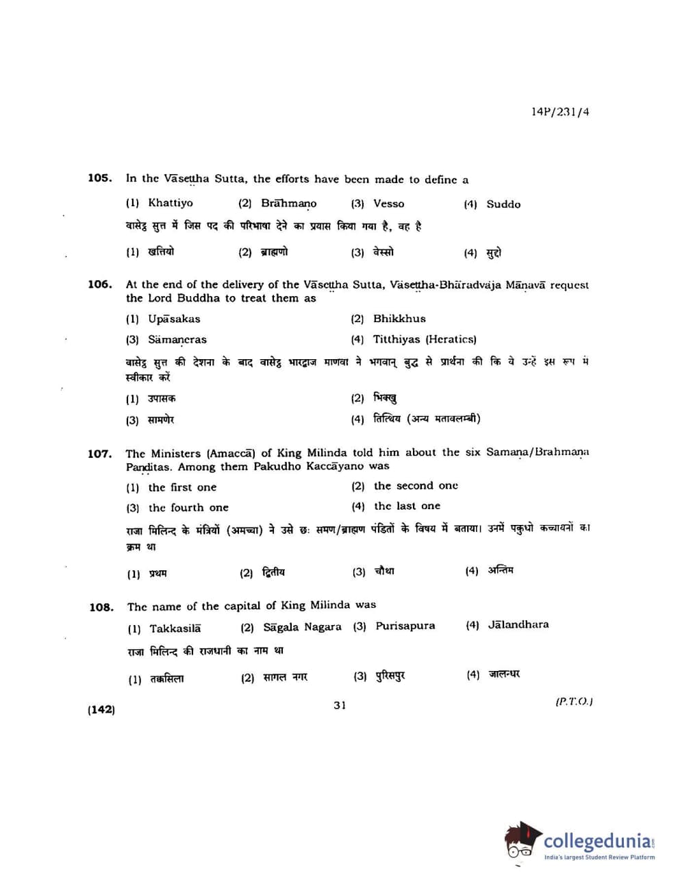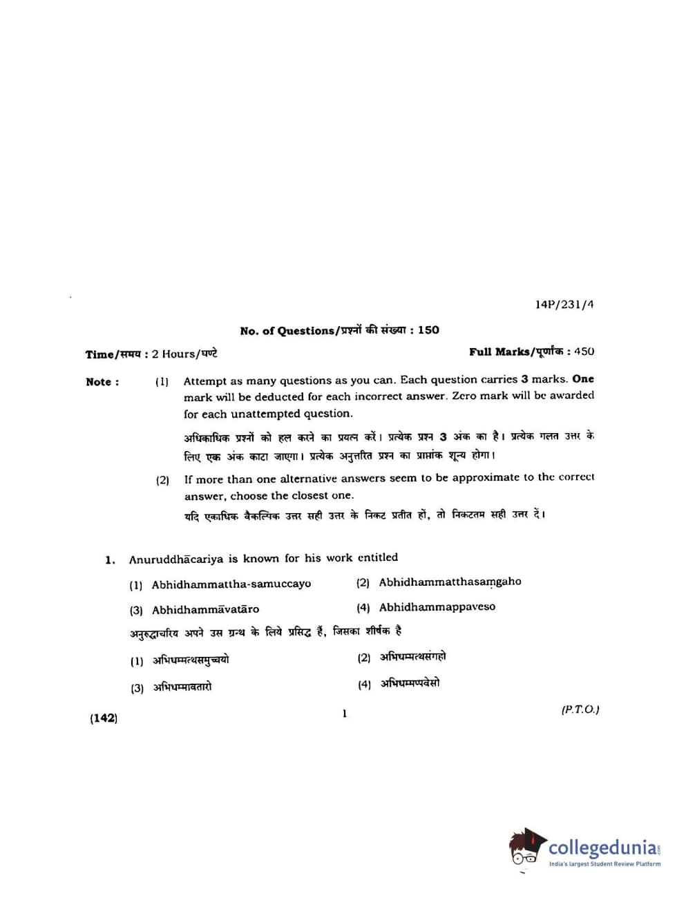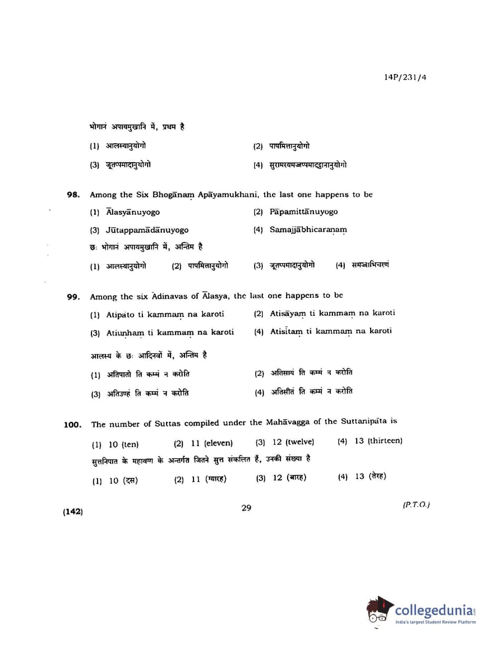 BHU PET 2014 M.A. Pali Question paper with answer key pdf is available for download. The exam was successfully organized by Banaras Hindu University (BHU). The question paper comprised a total of 150 questions.