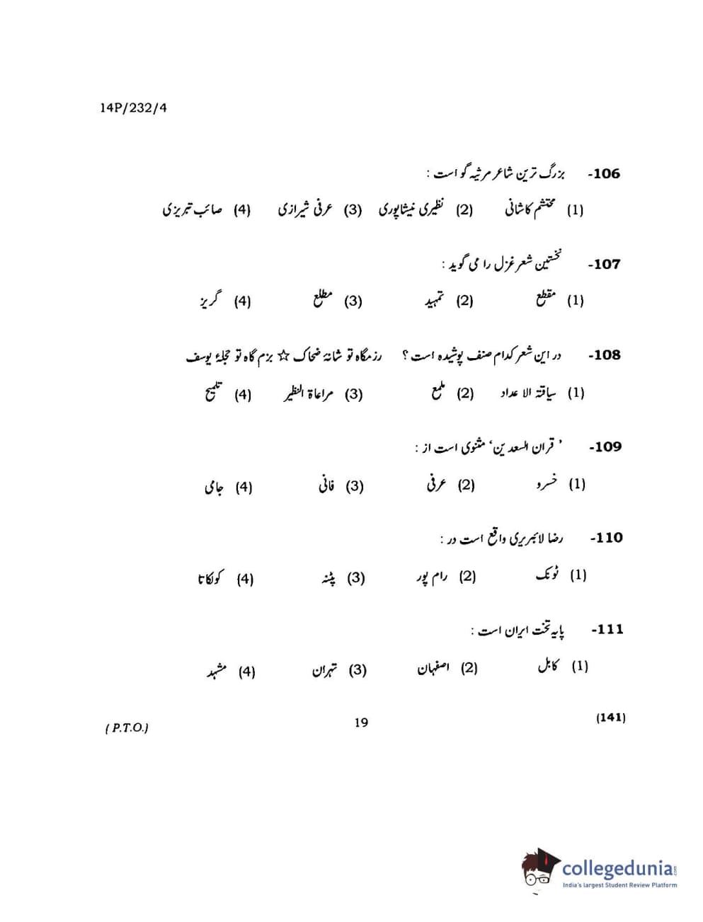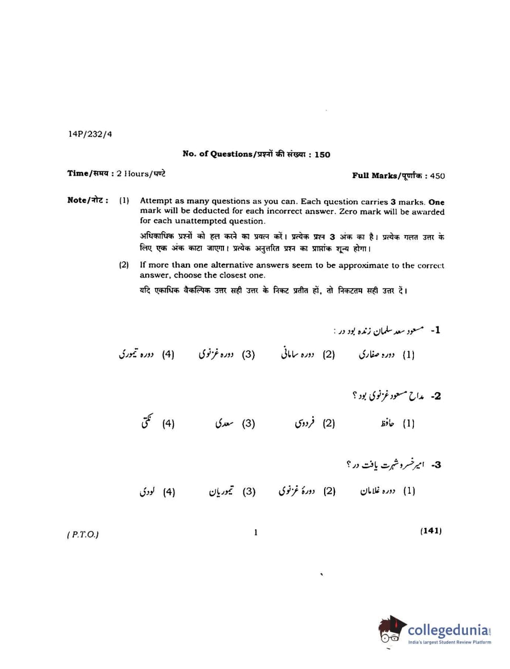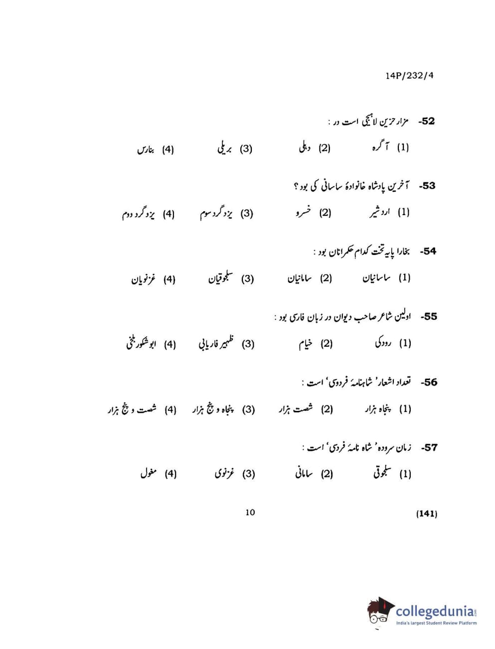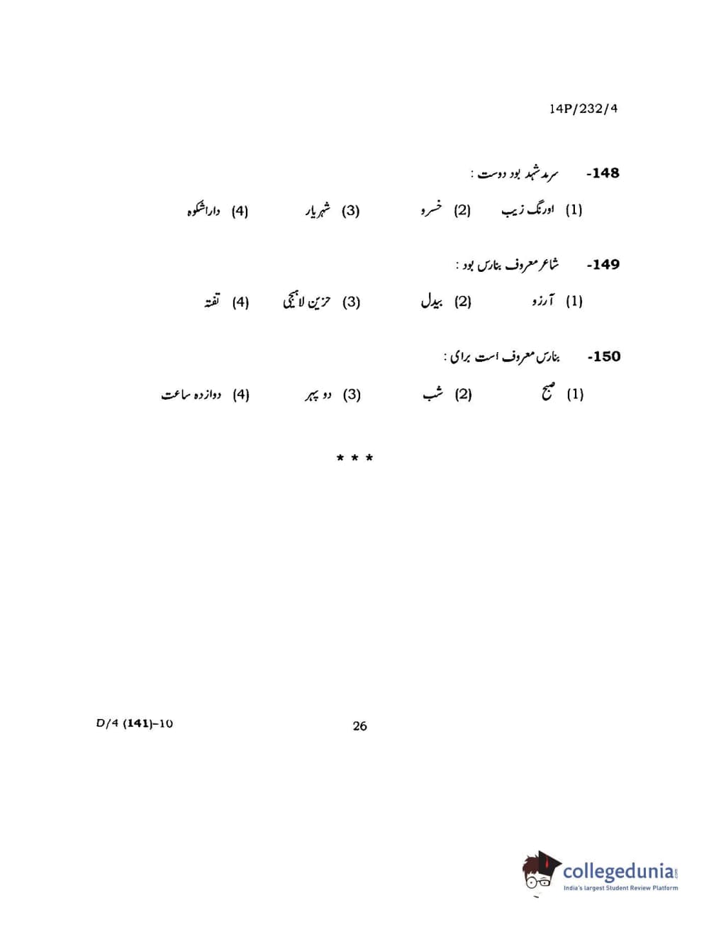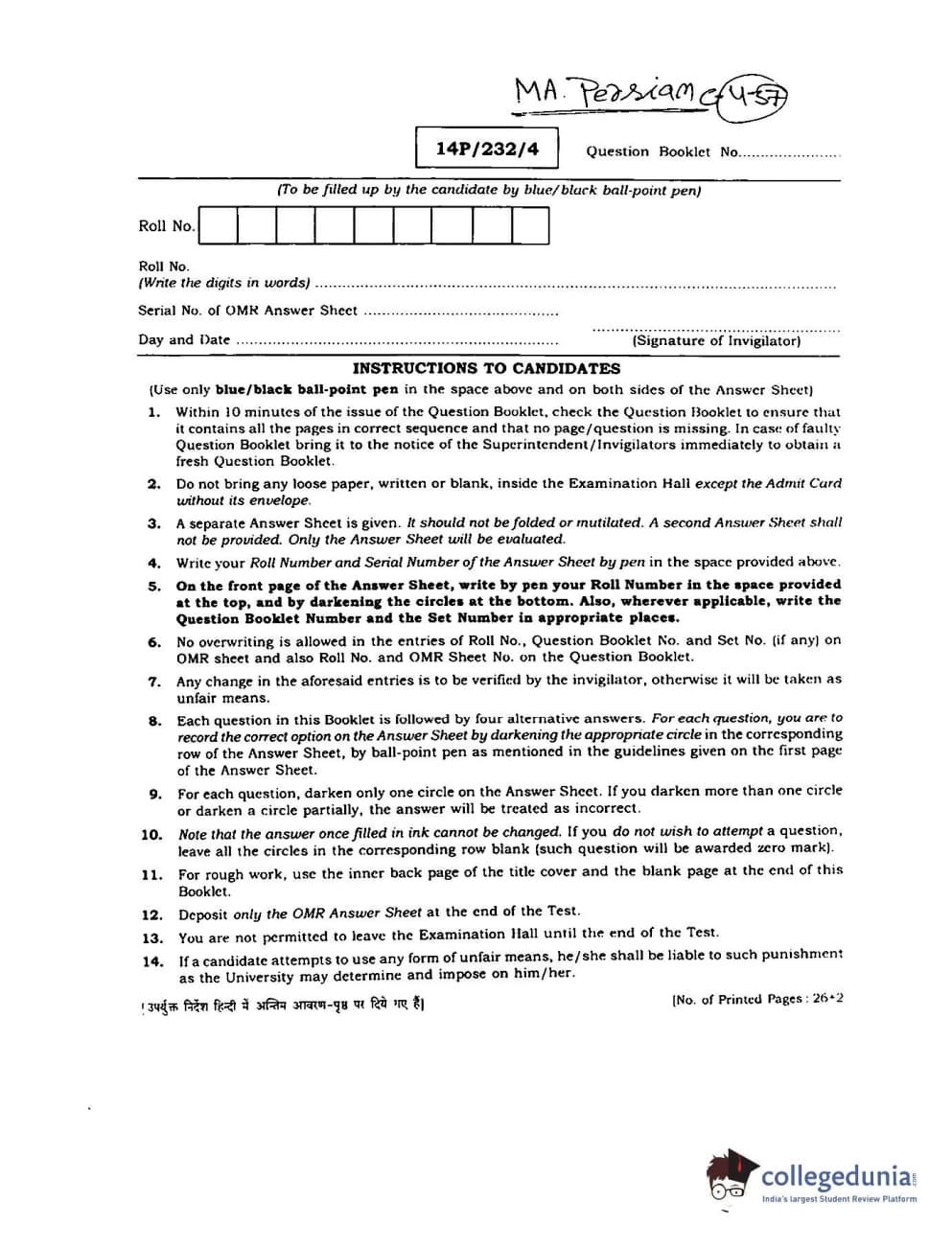 BHU PET 2014 M.A. Parsian Question paper with answer key pdf is available for download. The exam was successfully organized by Banaras Hindu University (BHU). The question paper comprised a total of 150 questions.