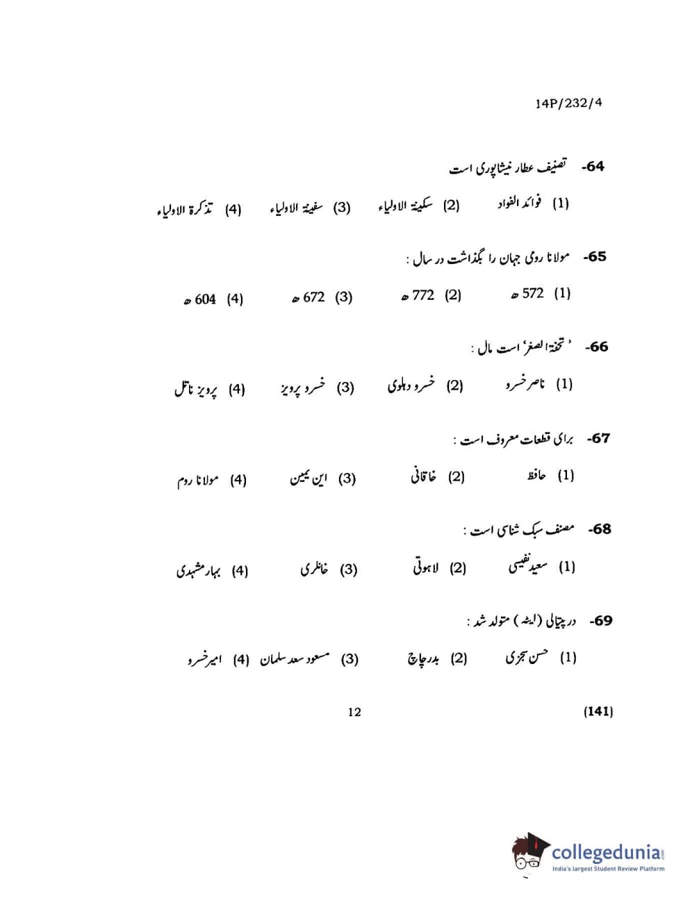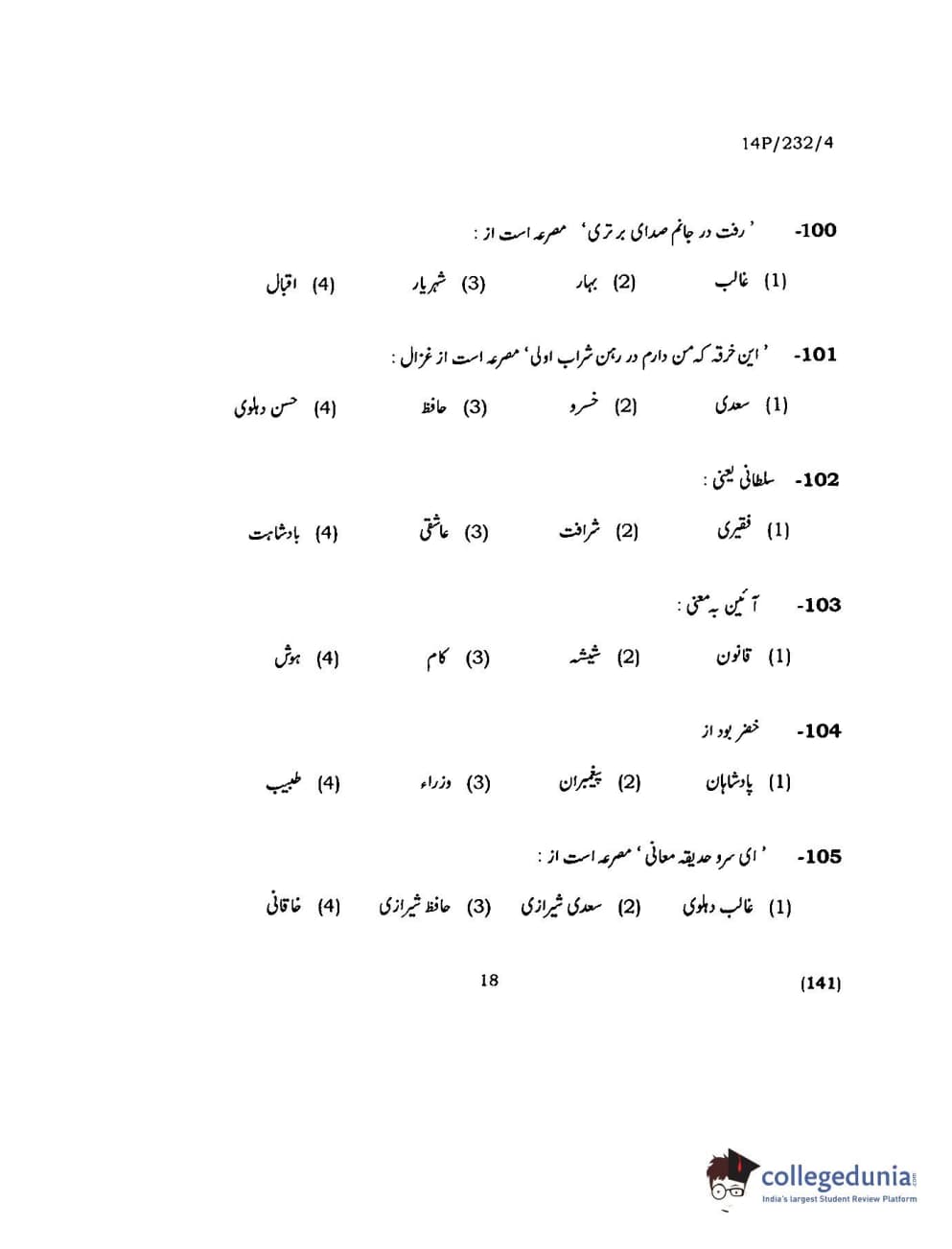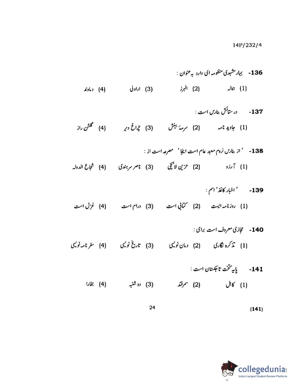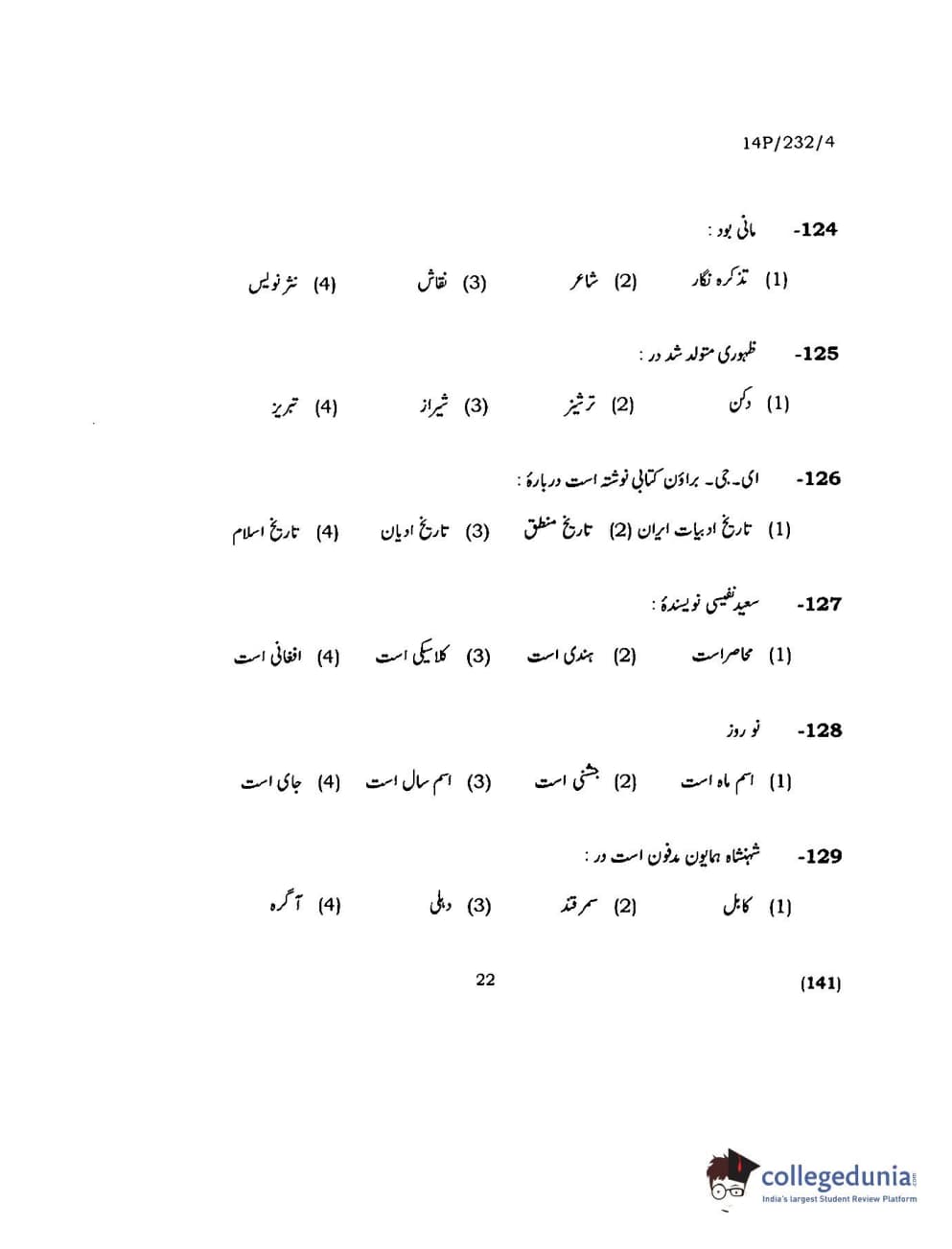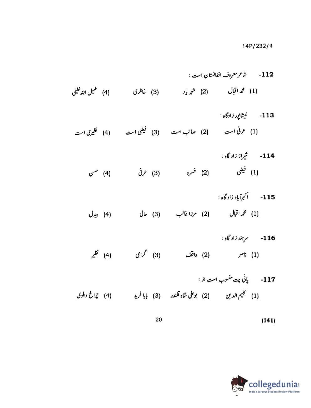 BHU PET 2014 M.A. Parsian Question paper with answer key pdf is available for download. The exam was successfully organized by Banaras Hindu University (BHU). The question paper comprised a total of 150 questions.