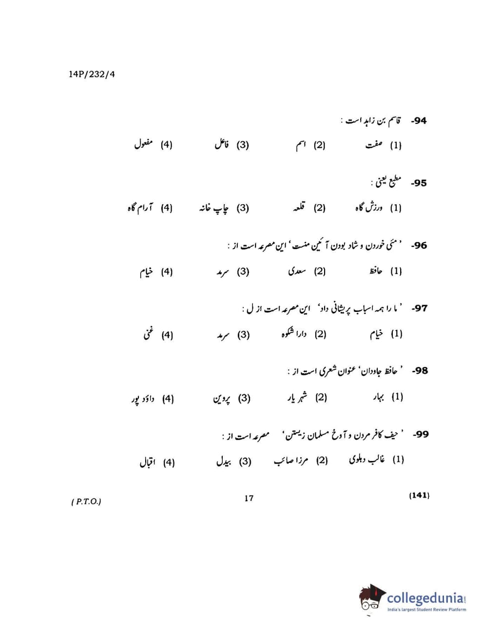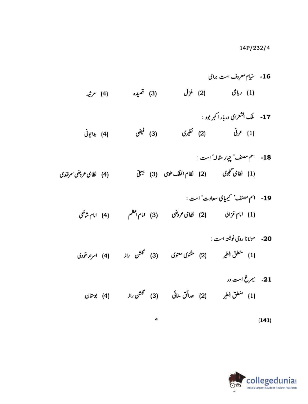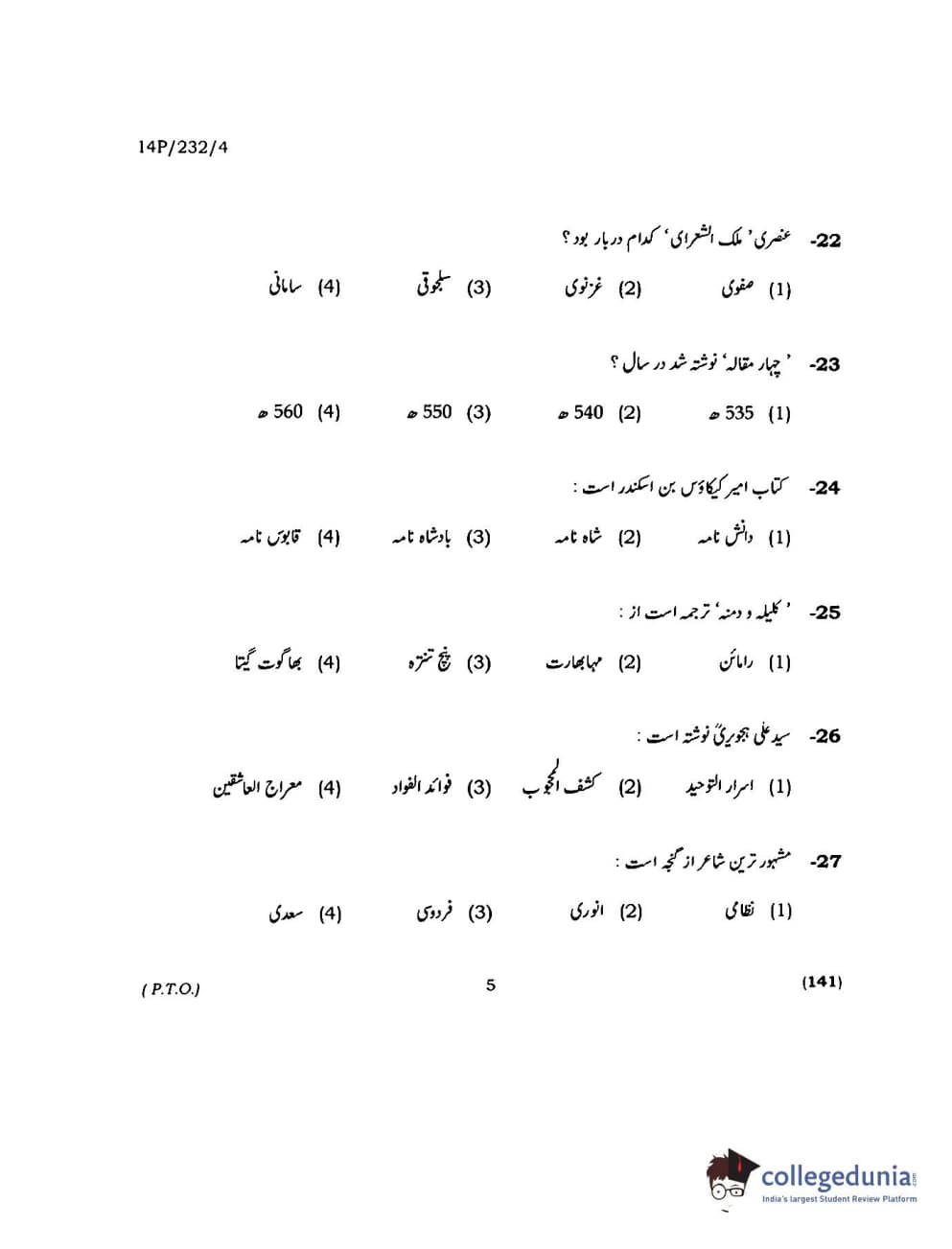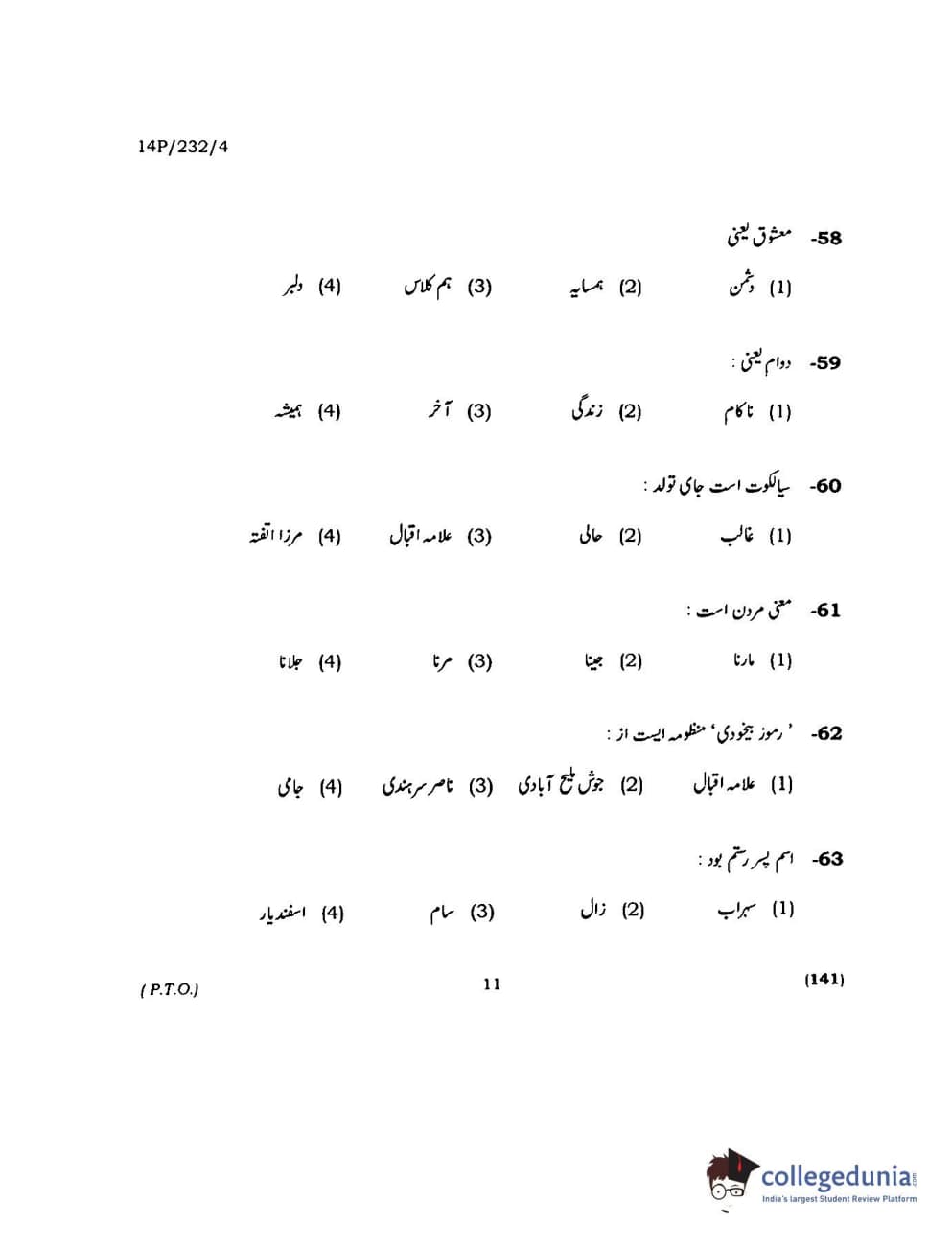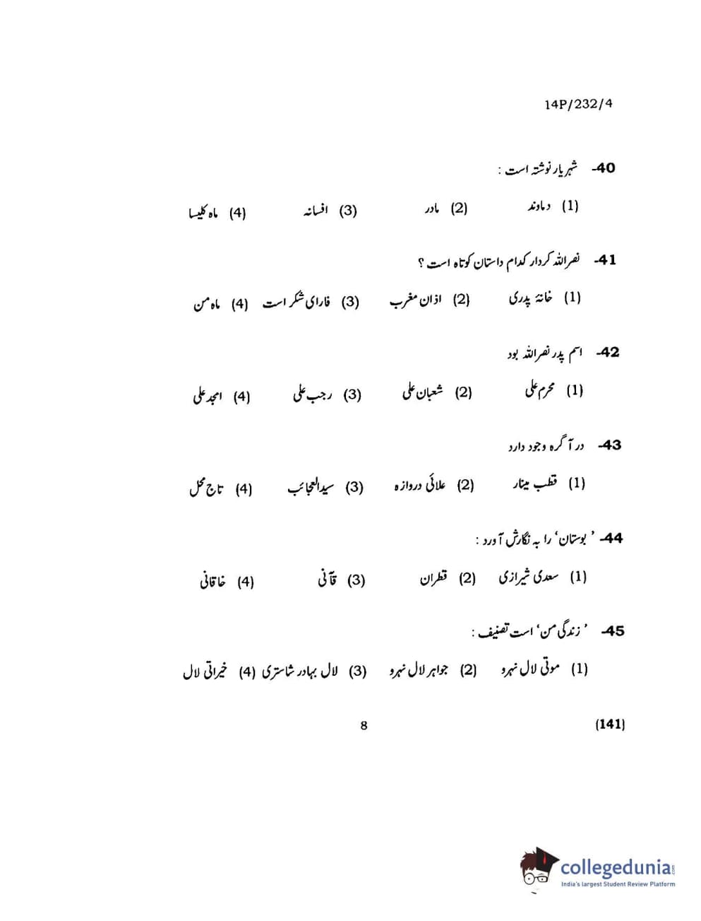 BHU PET 2014 M.A. Parsian Question paper with answer key pdf is available for download. The exam was successfully organized by Banaras Hindu University (BHU). The question paper comprised a total of 150 questions.