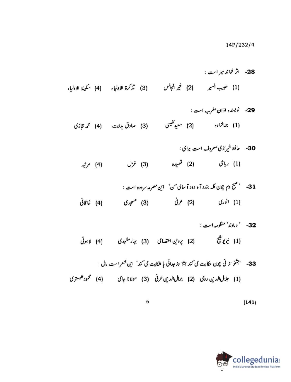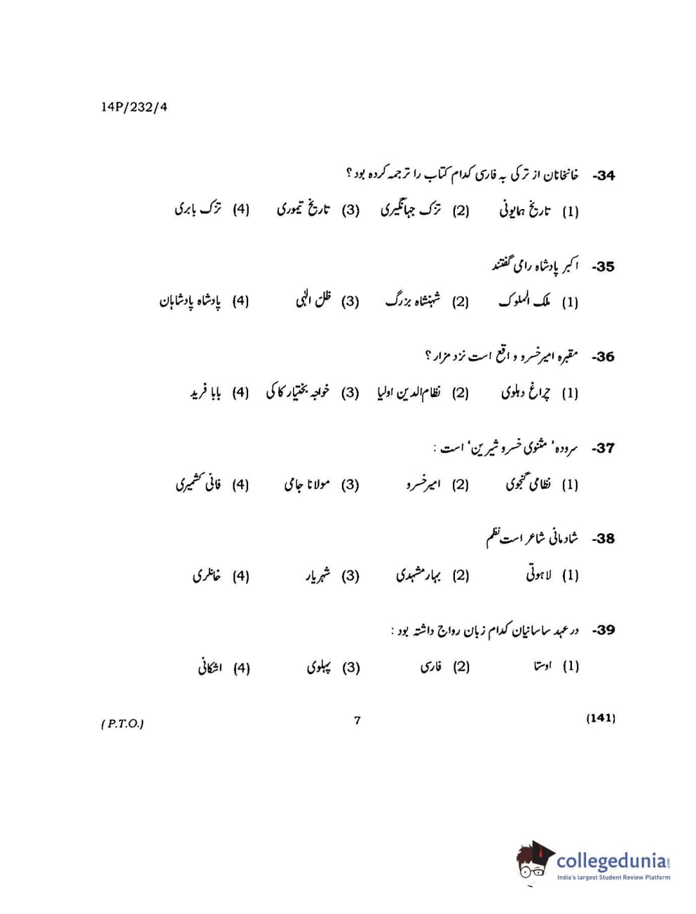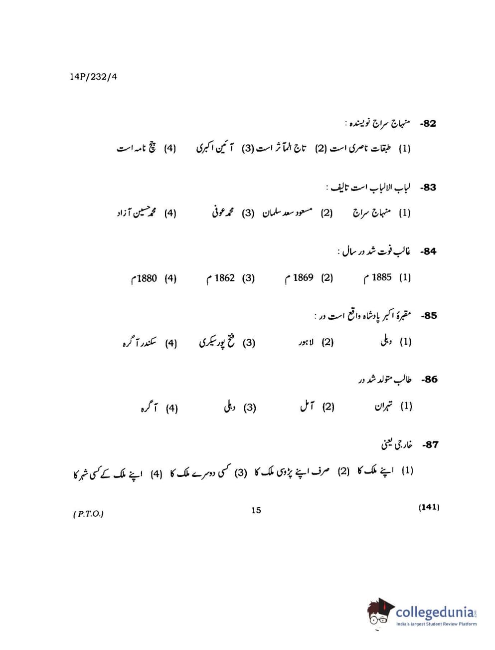 BHU PET 2014 M.A. Parsian Question Paper with Answer Key PDFs