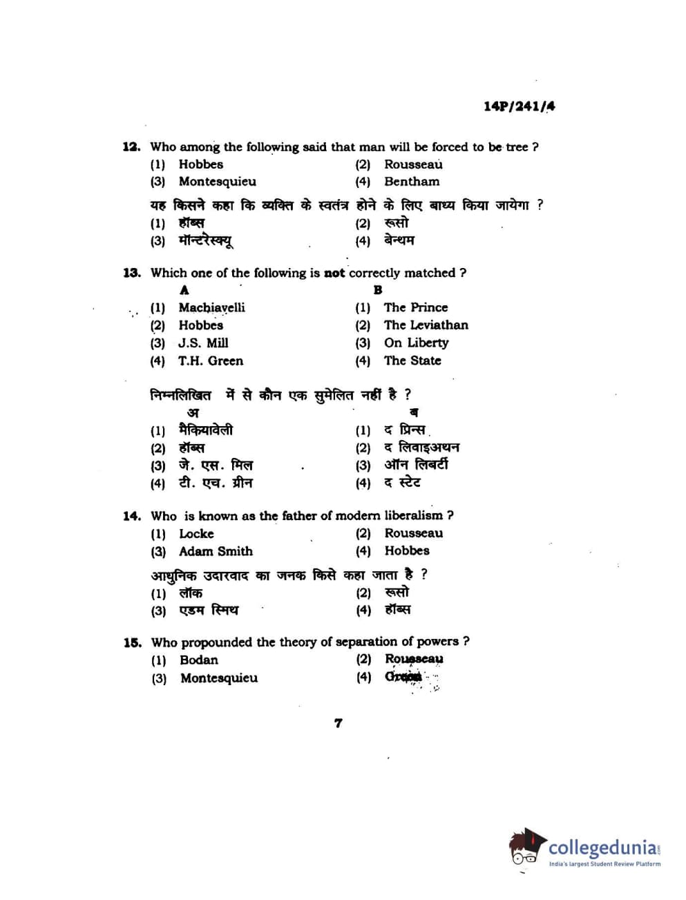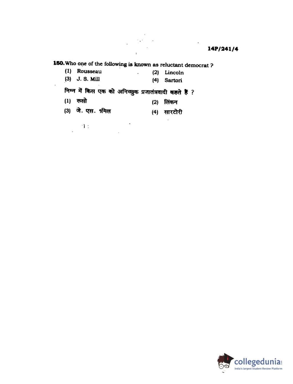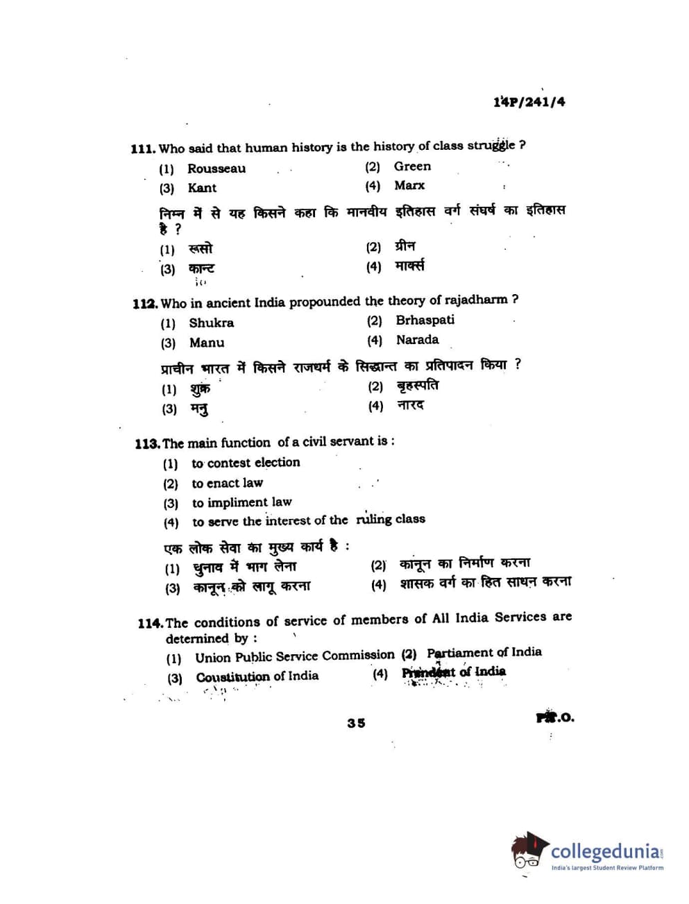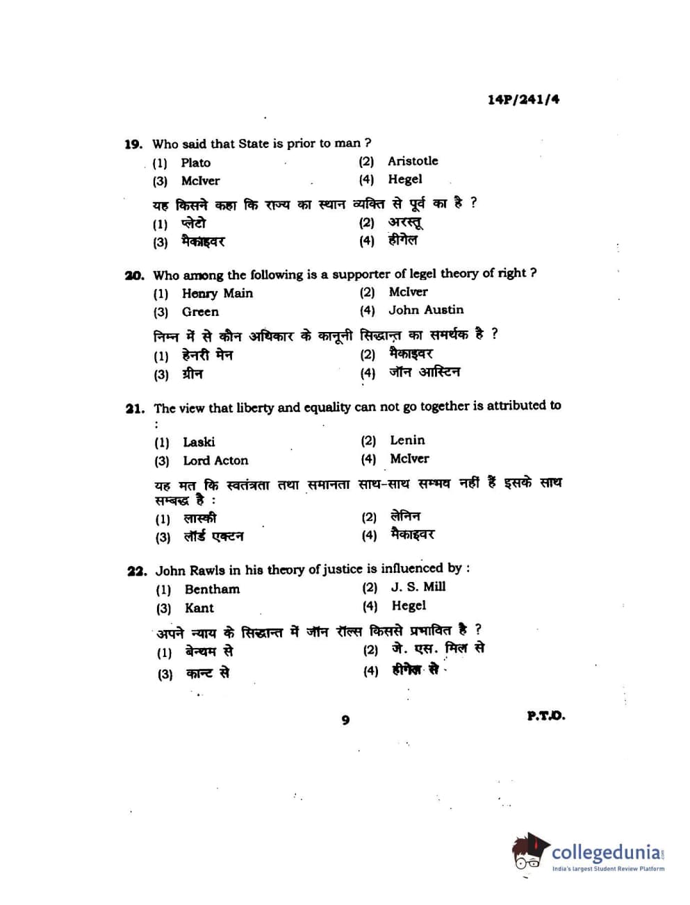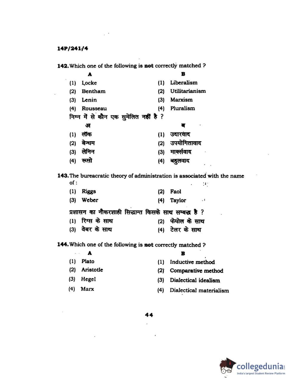 BHU PET 2014 M.A. Political Science Question Paper with Answer Key PDFs
