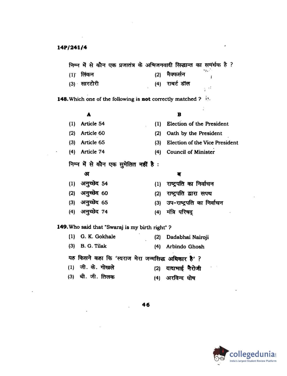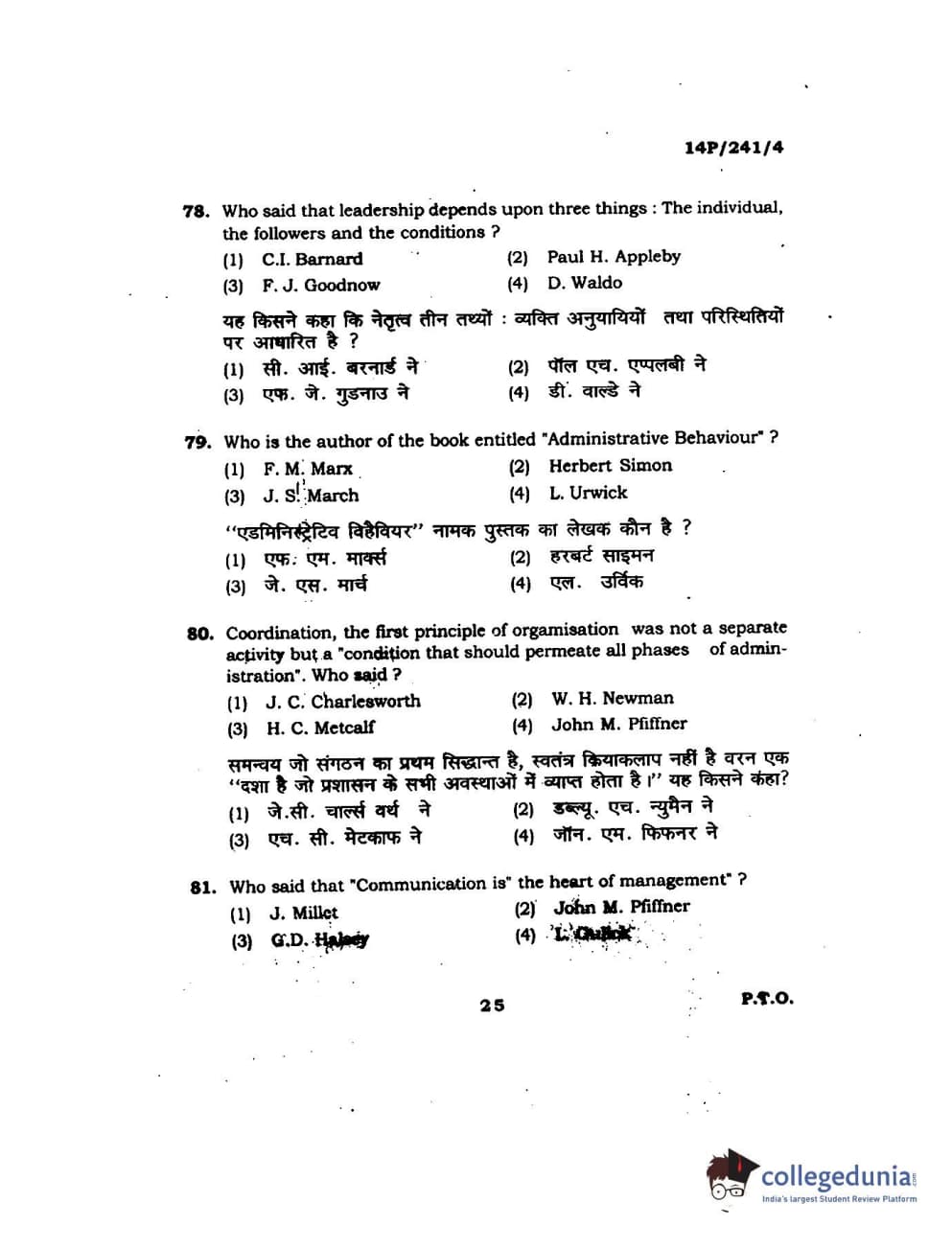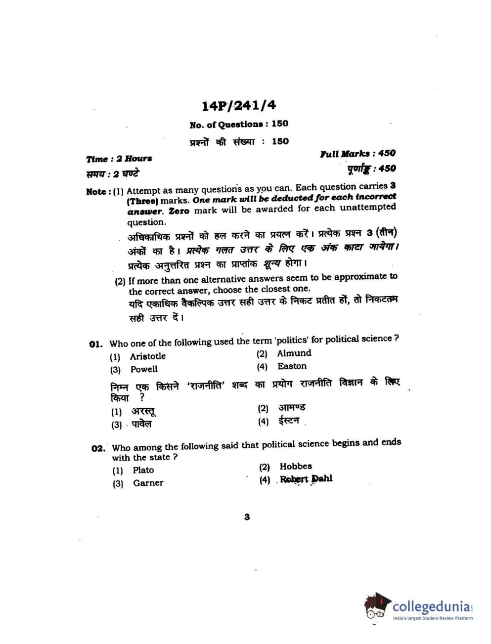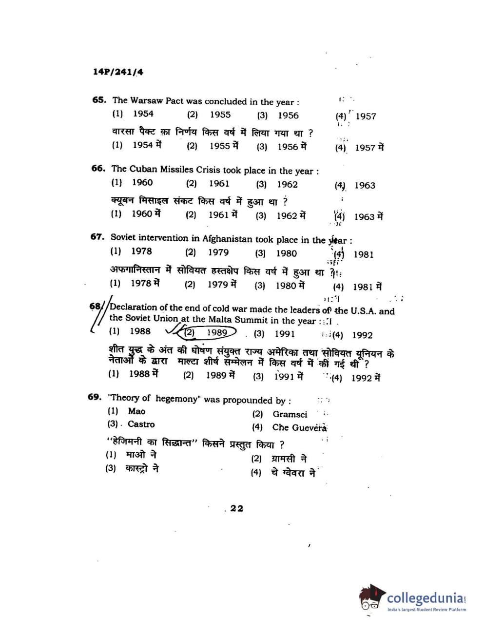 BHU PET 2014 M.A. Political Science Question Paper with Answer Key PDFs