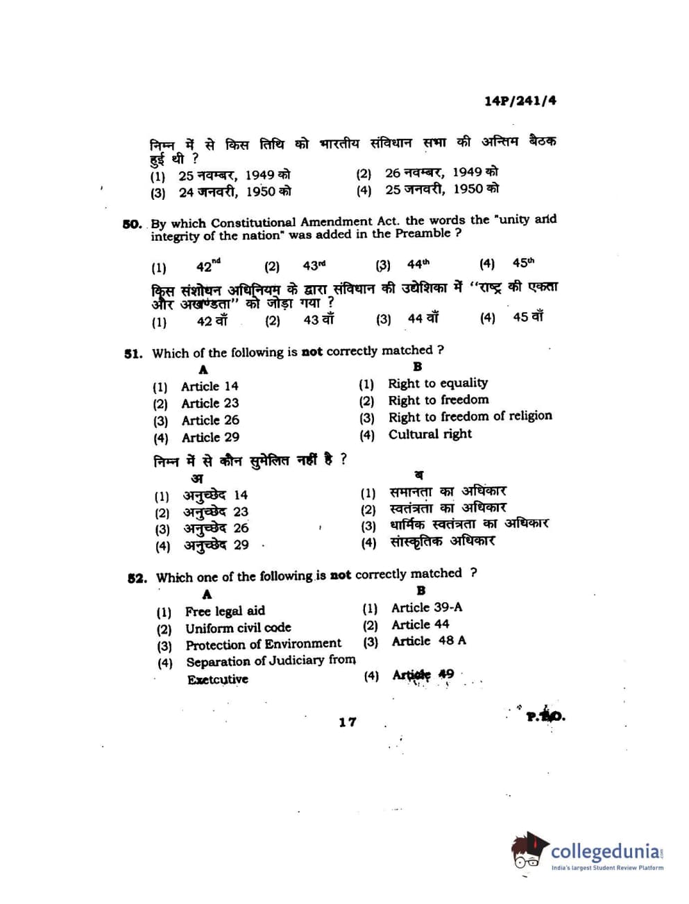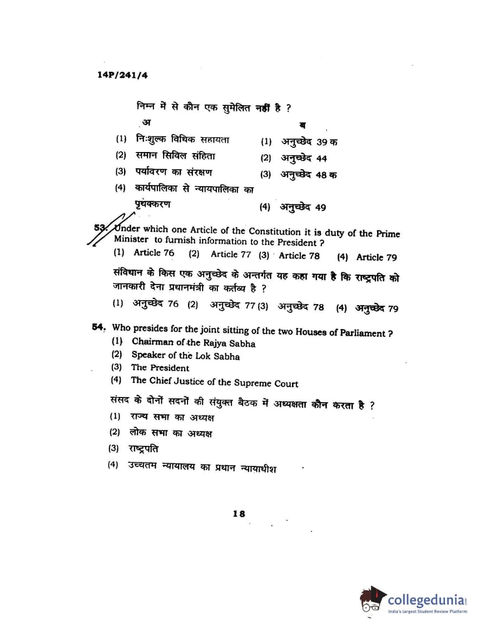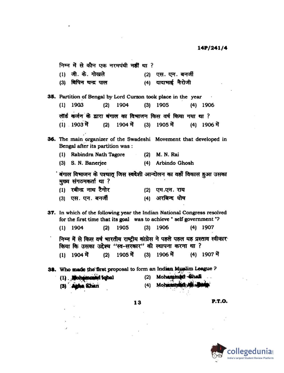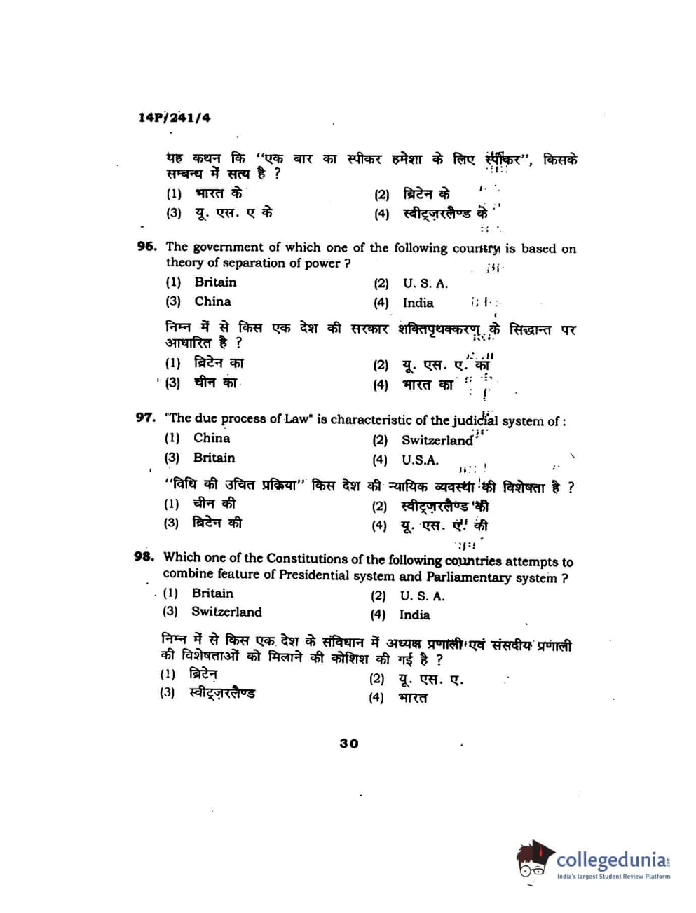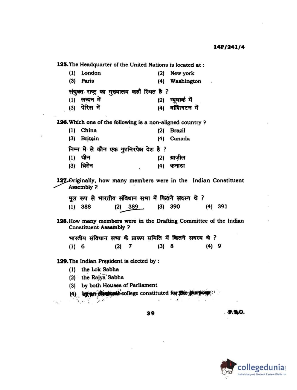 BHU PET 2014 M.A. Political Science Question Paper with Answer Key PDFs