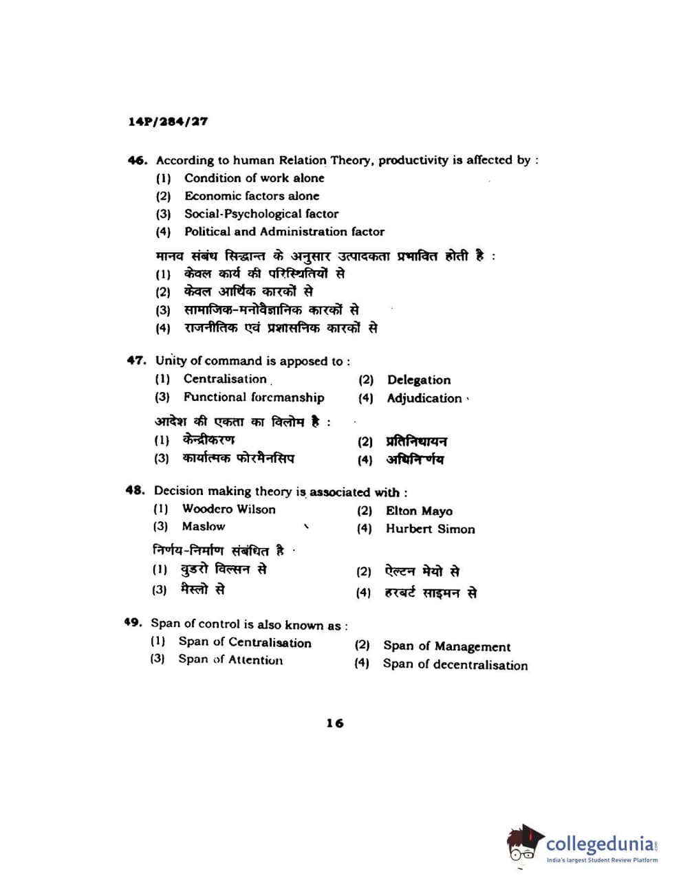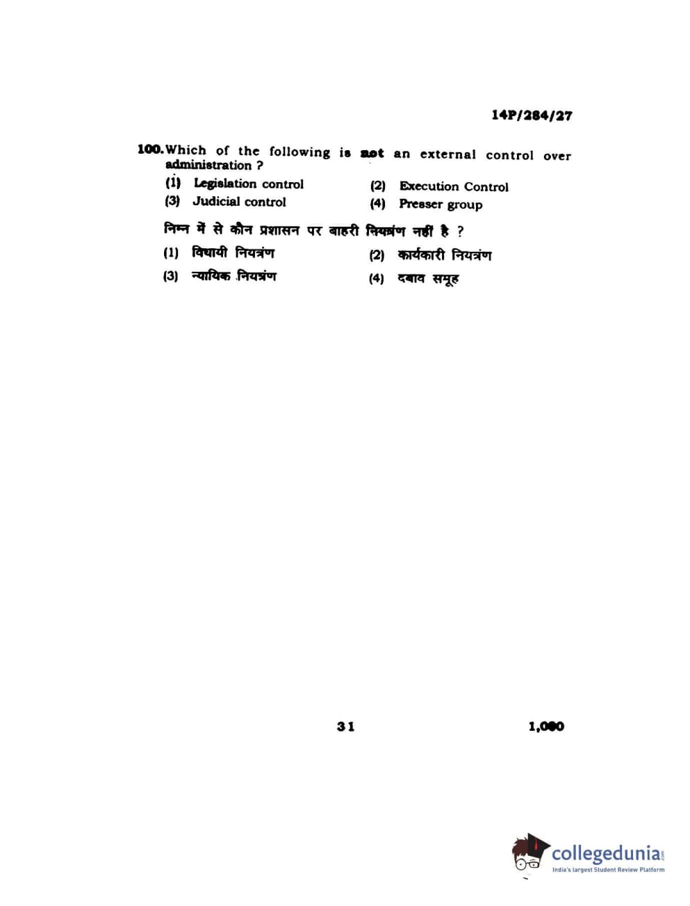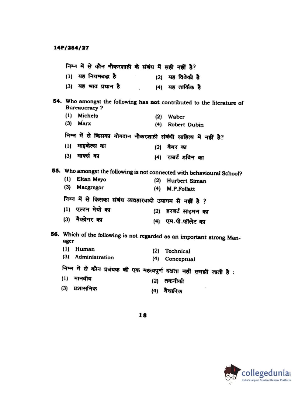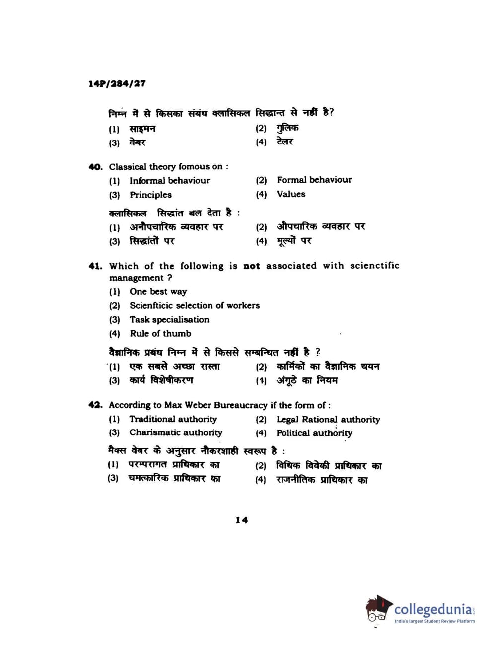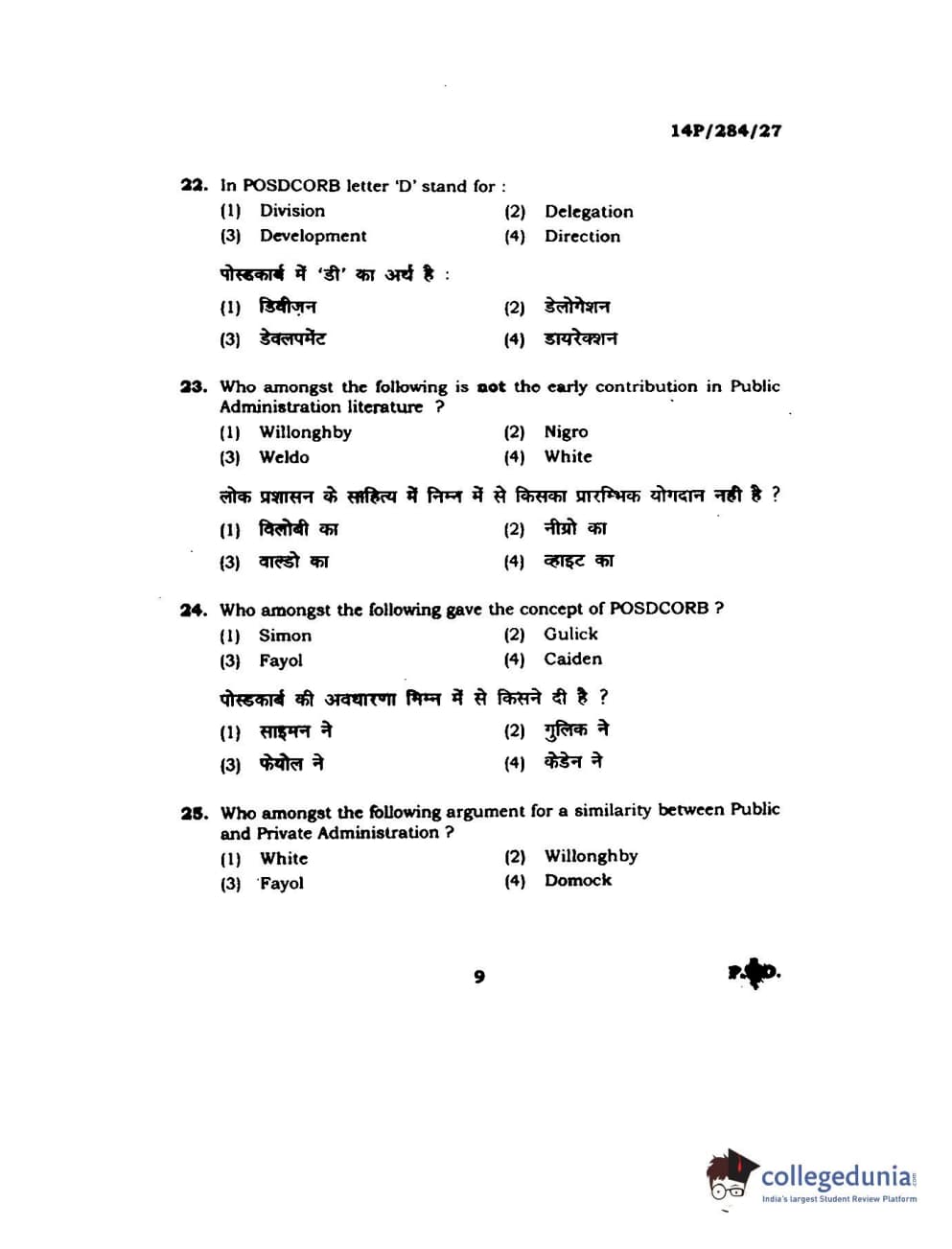 BHU PET 2014 M.A. Public Administration Question Paper with Answer Key PDFs