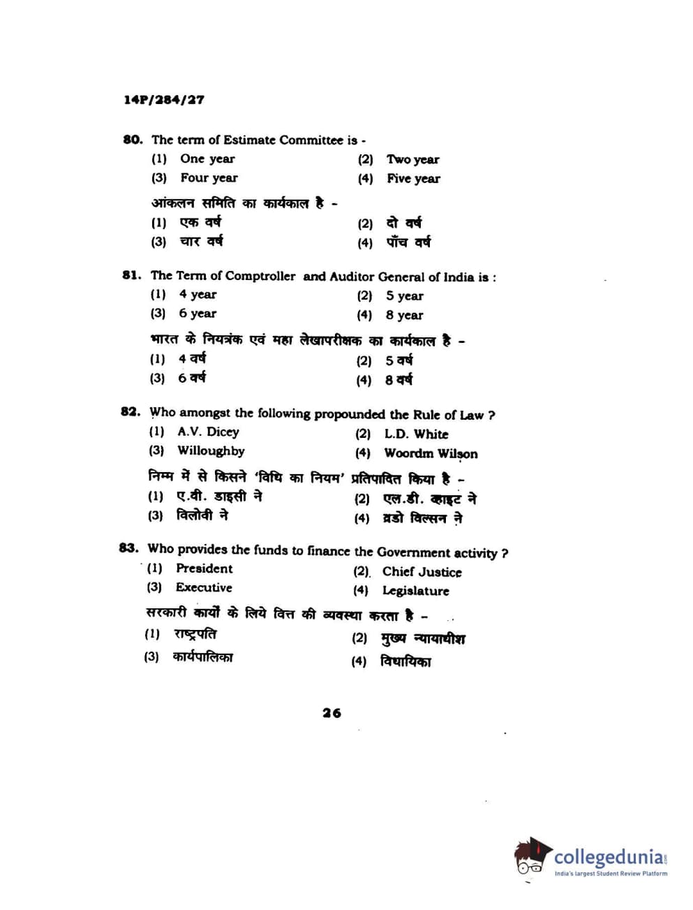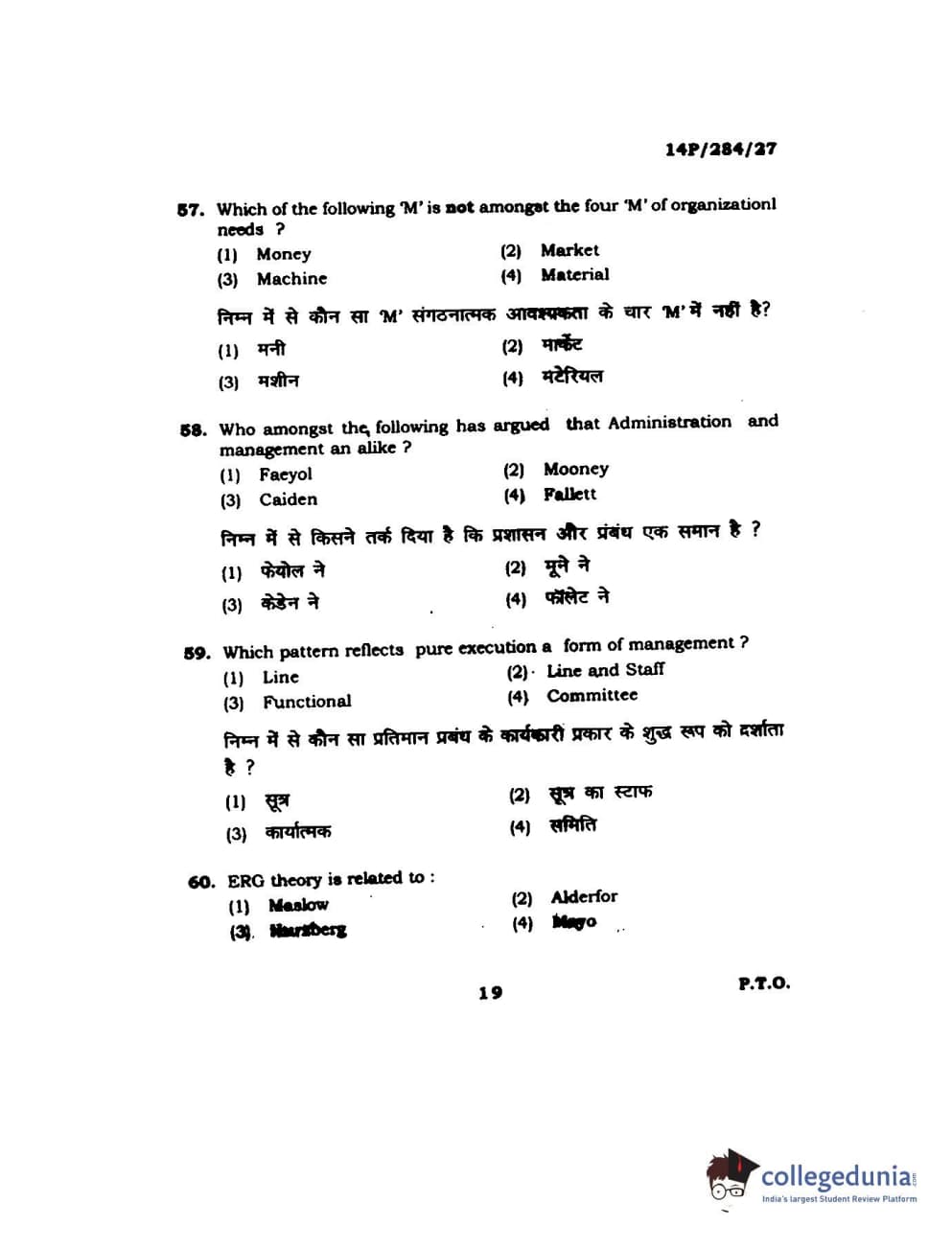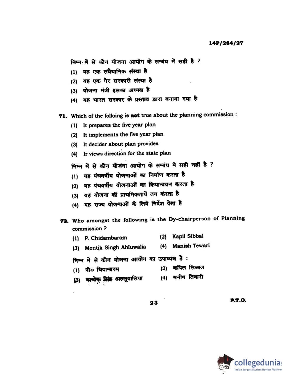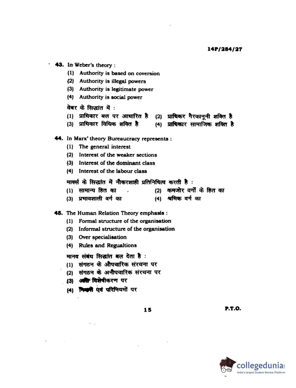 BHU PET 2014 M.A. Public Administration Question Paper with Answer Key PDFs
