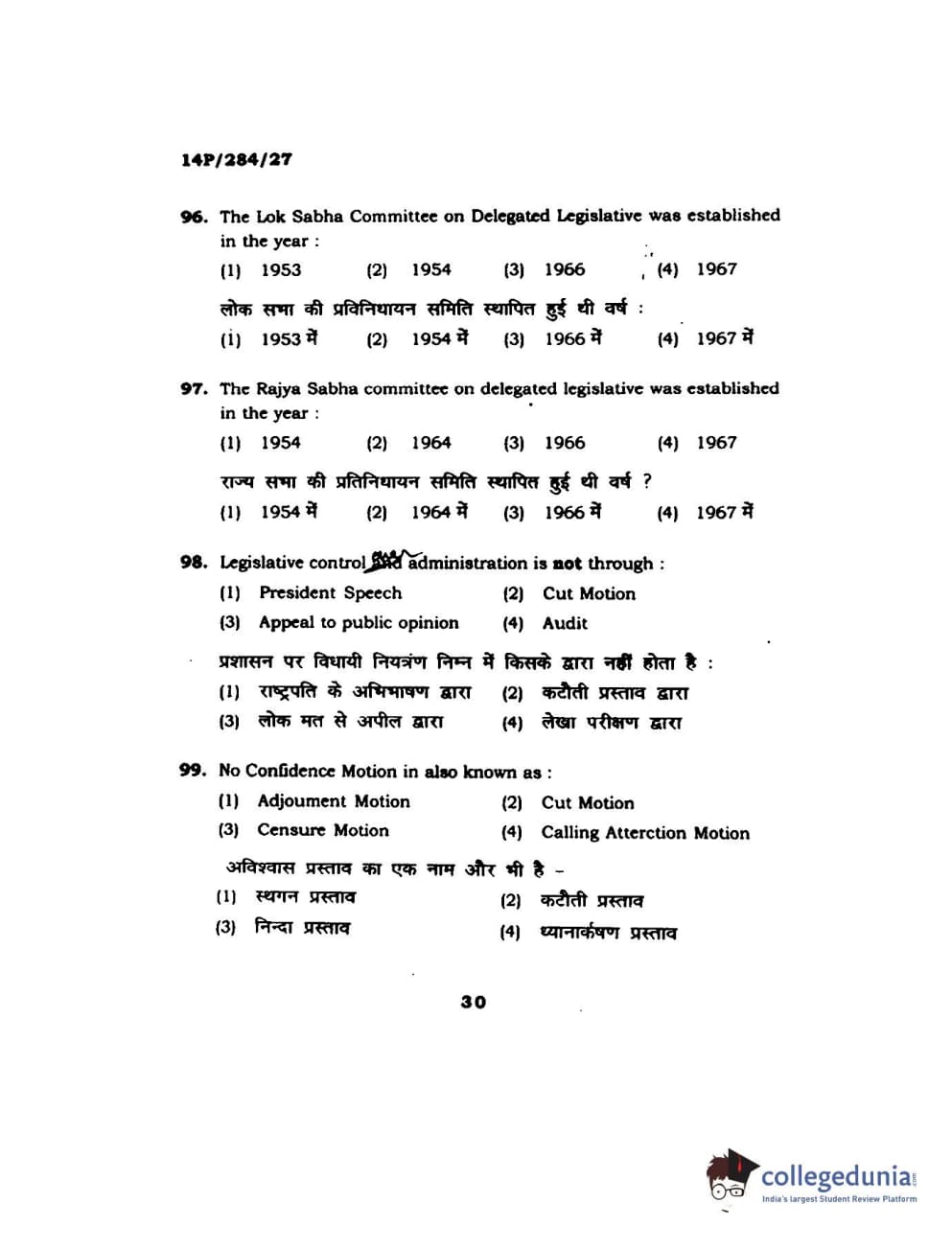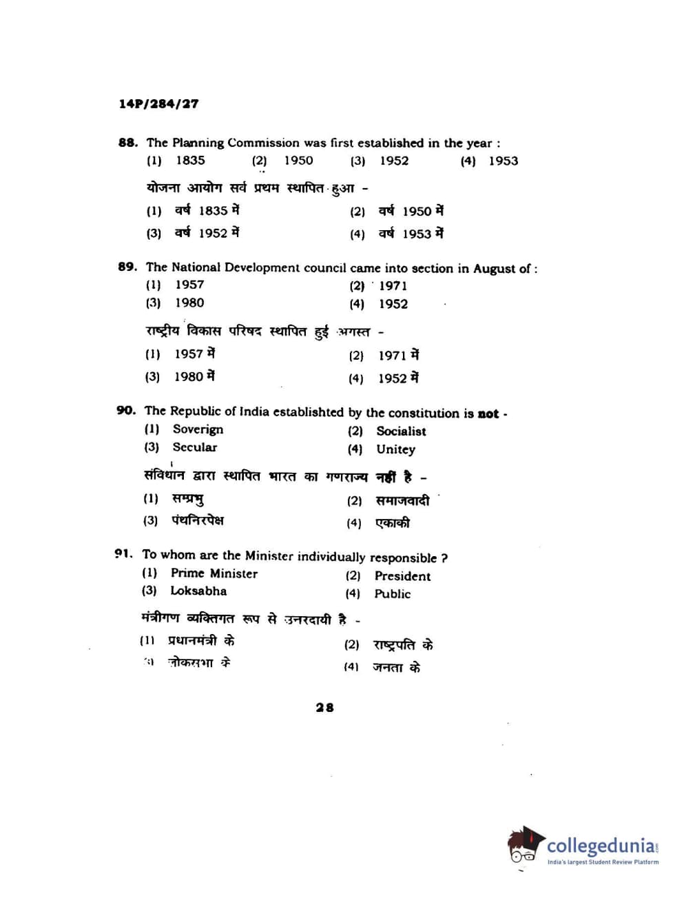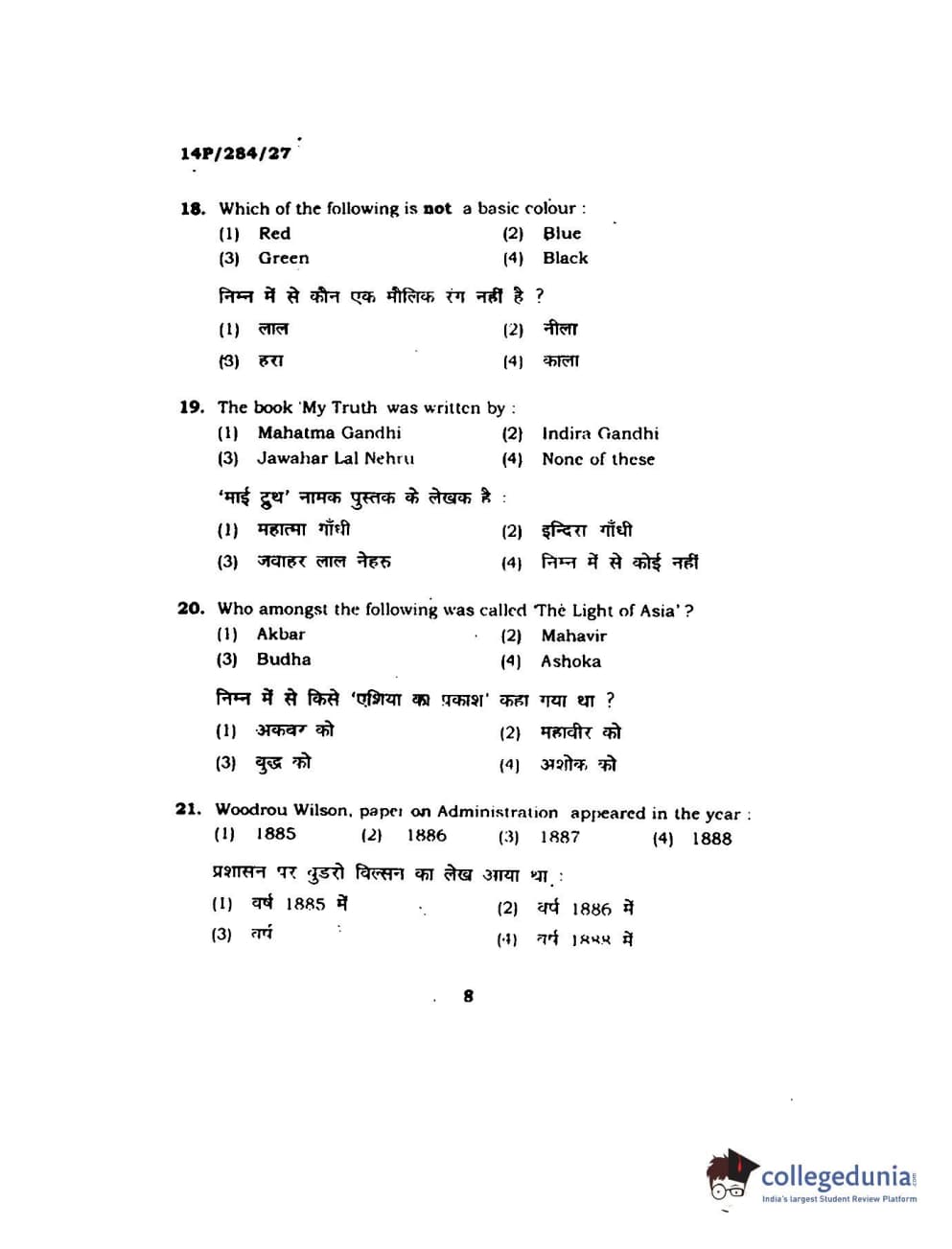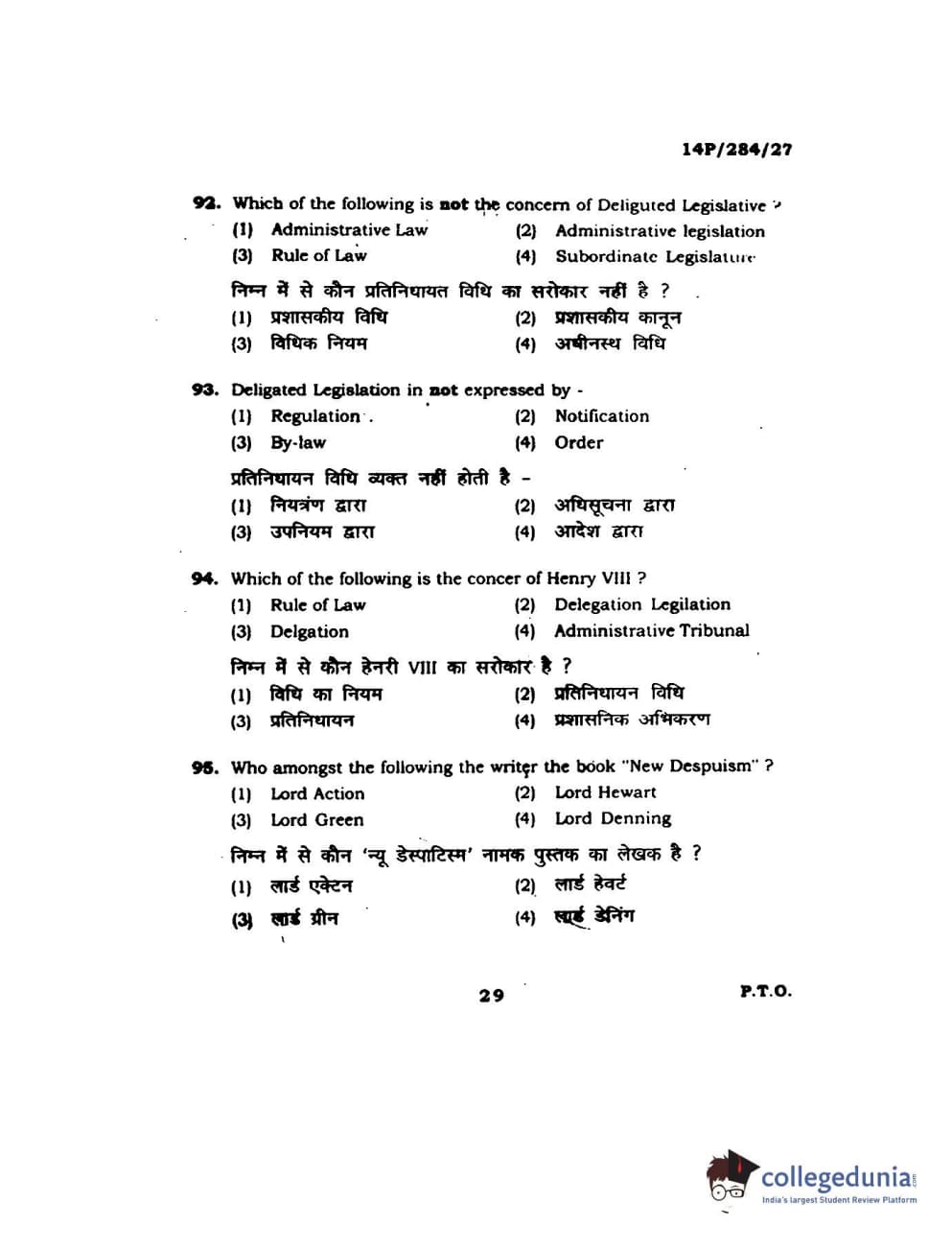 BHU PET 2014 M.A. Public Administration Question Paper with Answer Key PDFs
