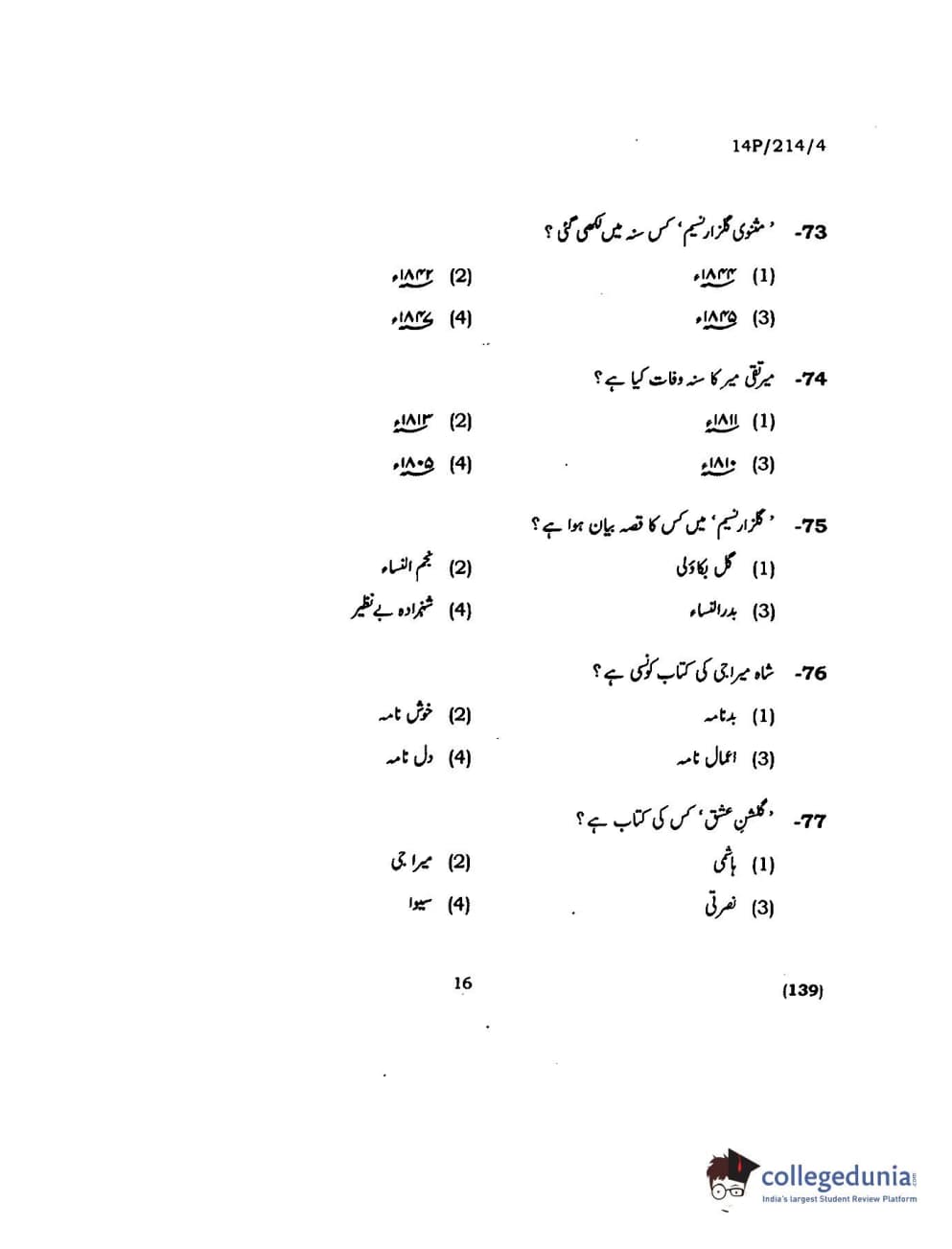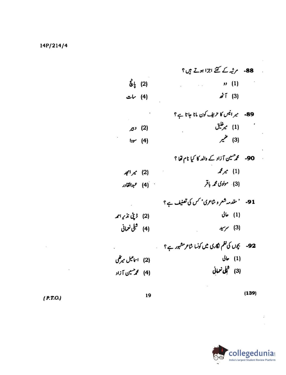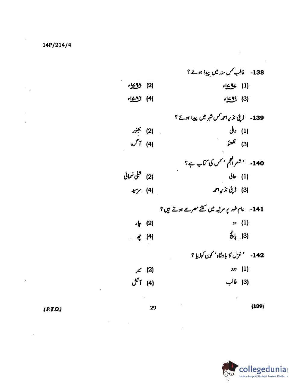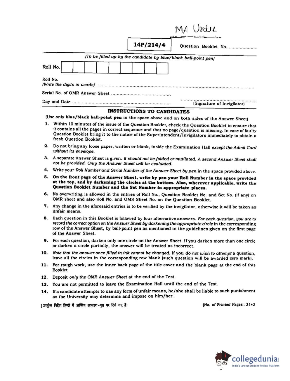 BHU PET 2014 M.A. Urdu Question paper with answer key pdf is available for download. The exam was successfully organized by Banaras Hindu University (BHU). The question paper comprised a total of 150 questions.