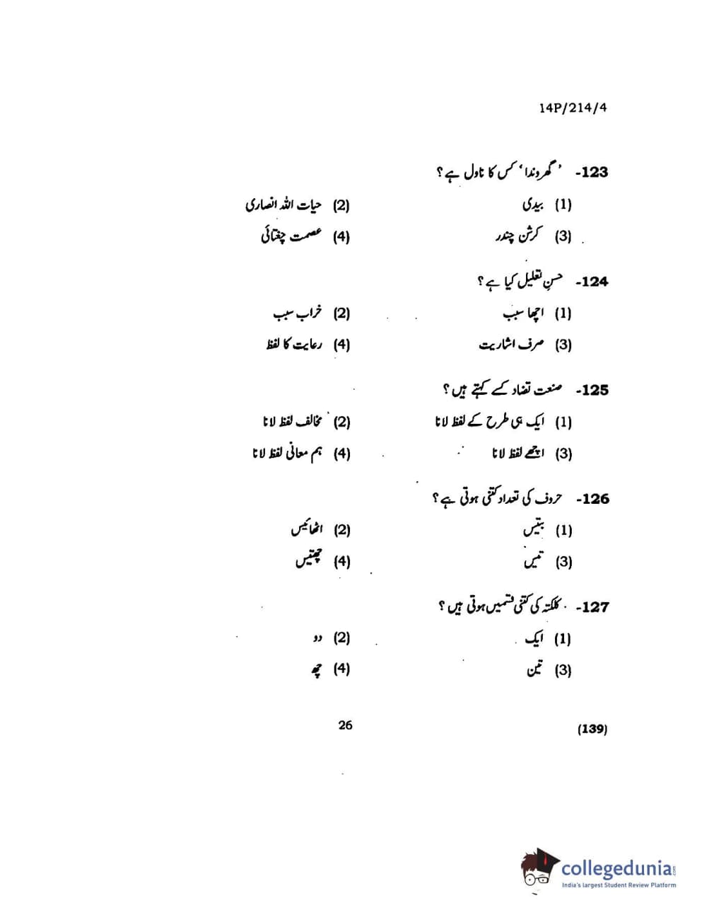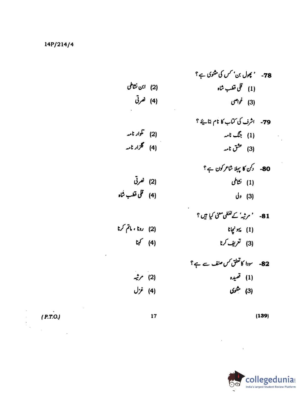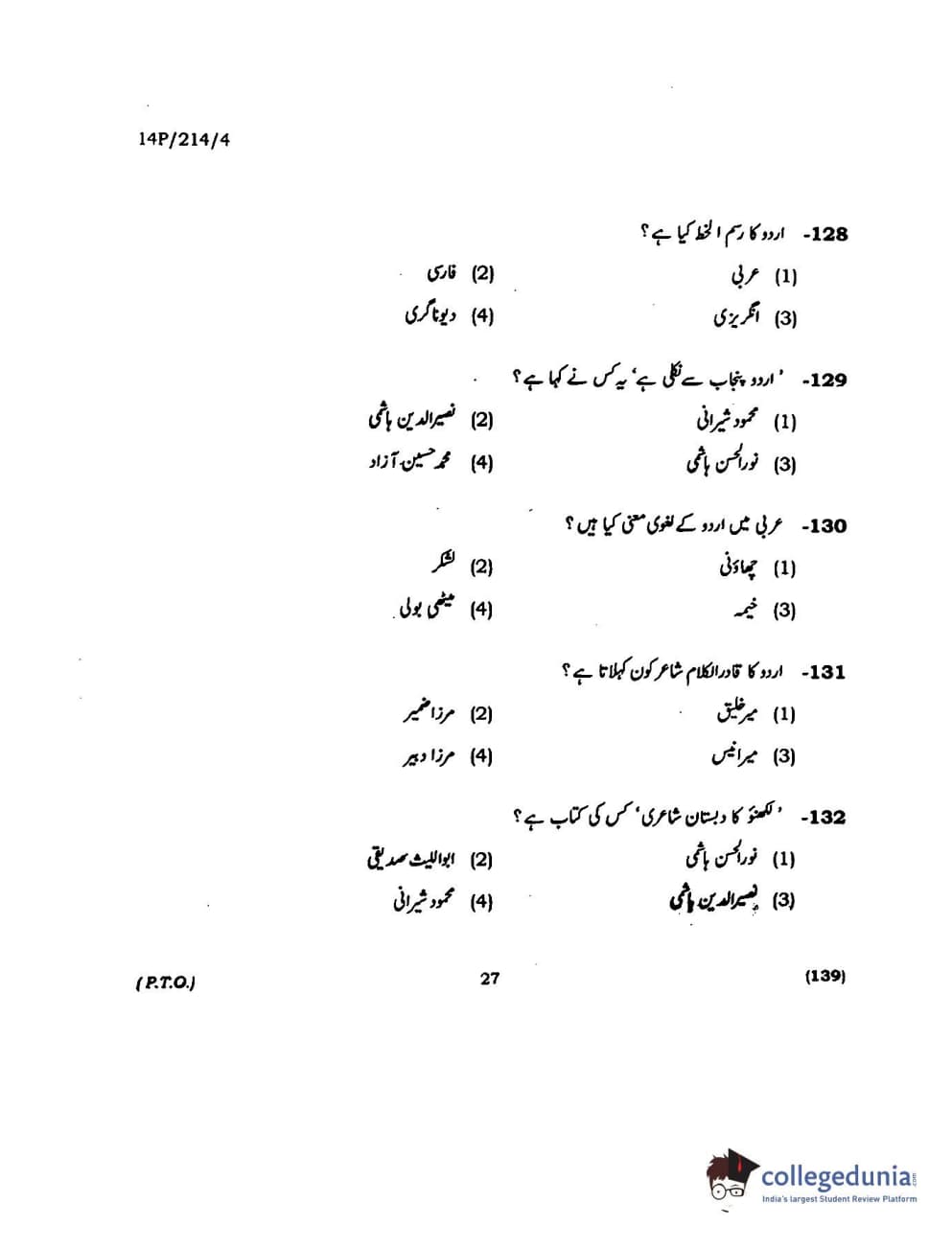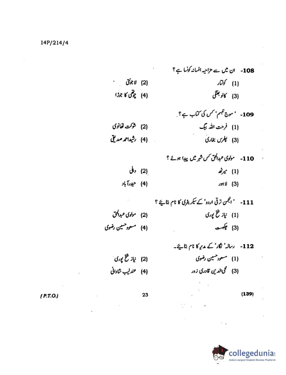 BHU PET 2014 M.A. Urdu Question paper with answer key pdf is available for download. The exam was successfully organized by Banaras Hindu University (BHU). The question paper comprised a total of 150 questions.
