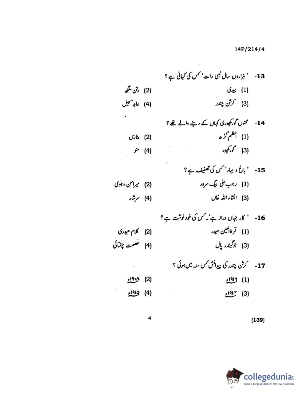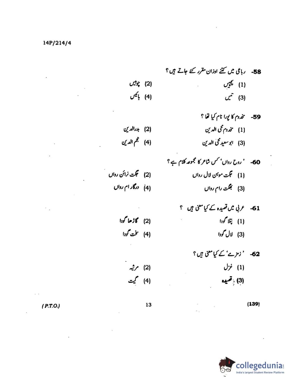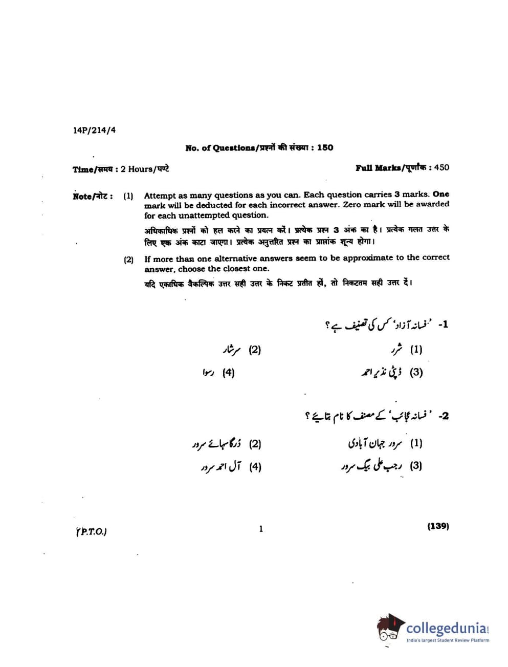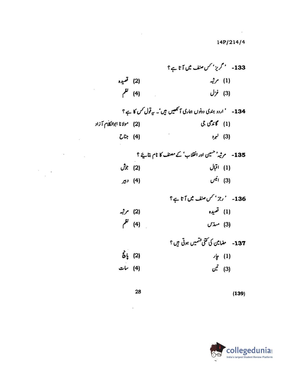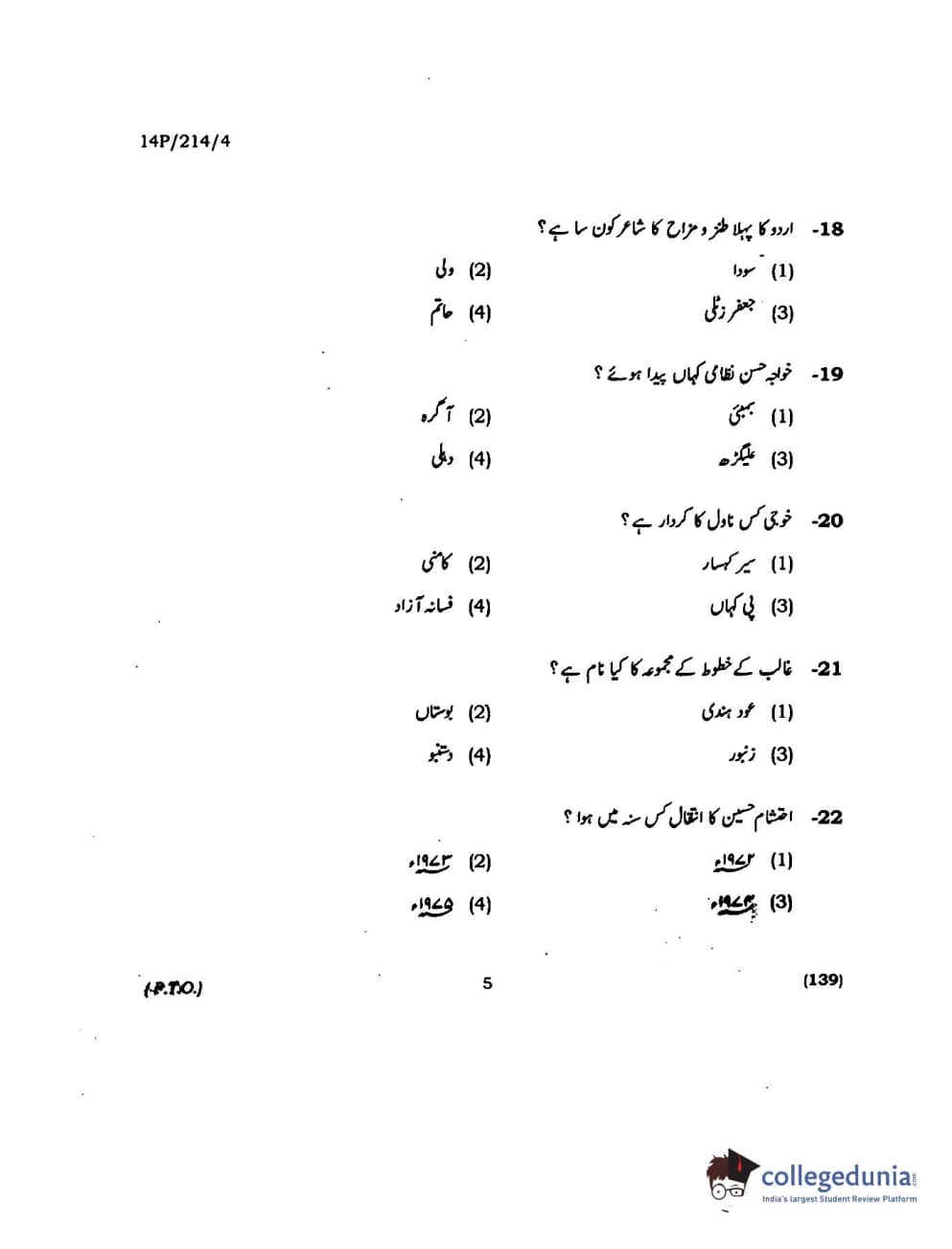 BHU PET 2014 M.A. Urdu Question paper with answer key pdf is available for download. The exam was successfully organized by Banaras Hindu University (BHU). The question paper comprised a total of 150 questions.