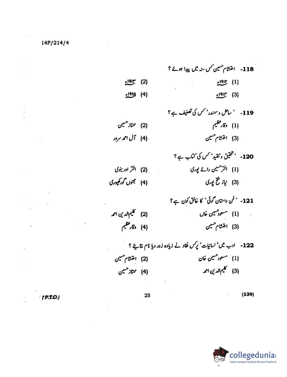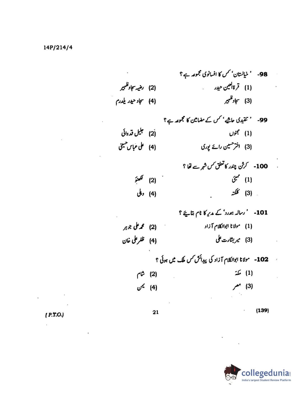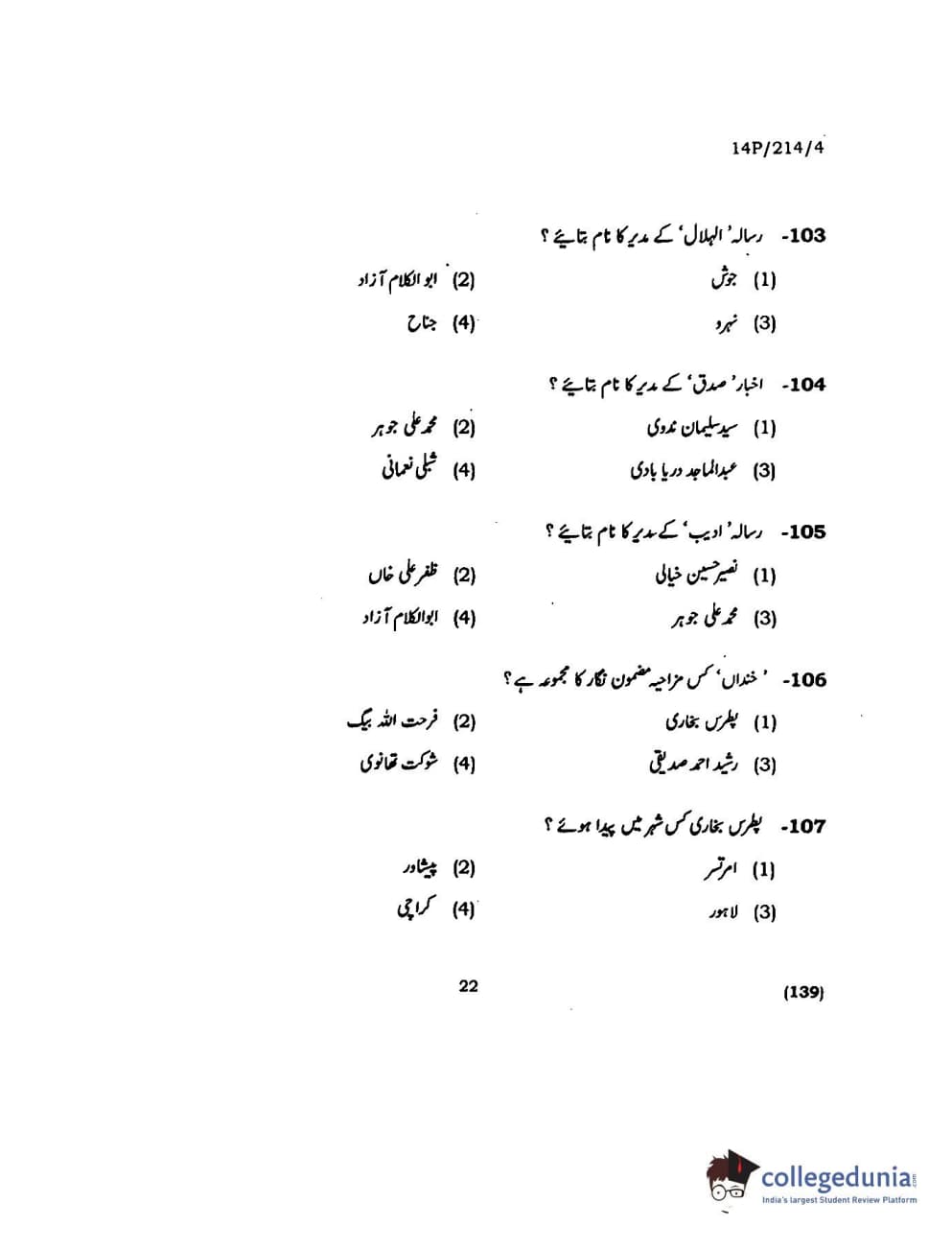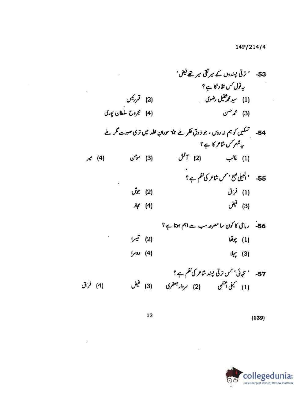 BHU PET 2014 M.A. Urdu Question paper with answer key pdf is available for download. The exam was successfully organized by Banaras Hindu University (BHU). The question paper comprised a total of 150 questions.