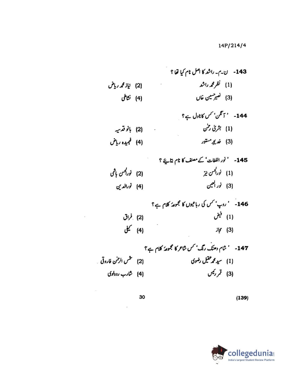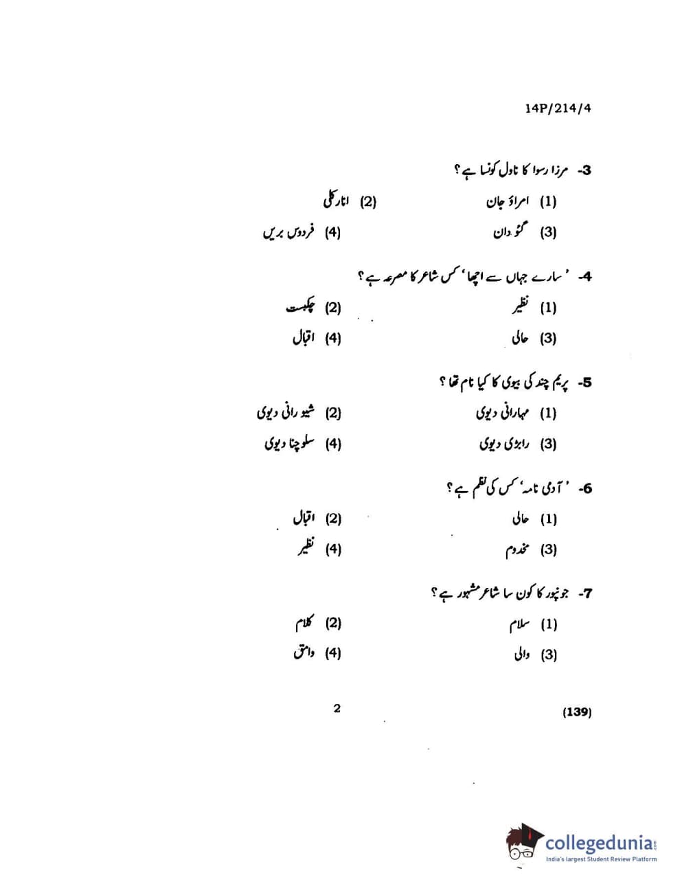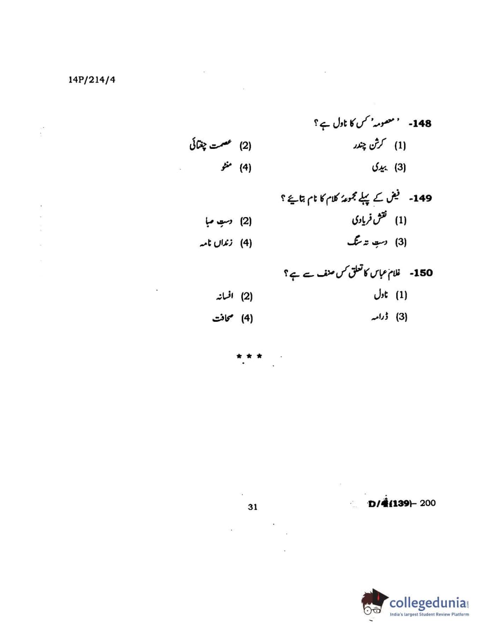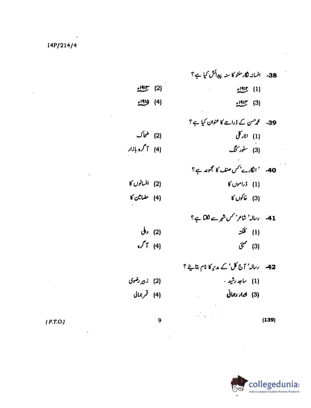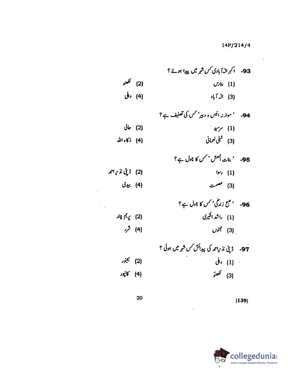 BHU PET 2014 M.A. Urdu Question Paper with Answer Key PDFs