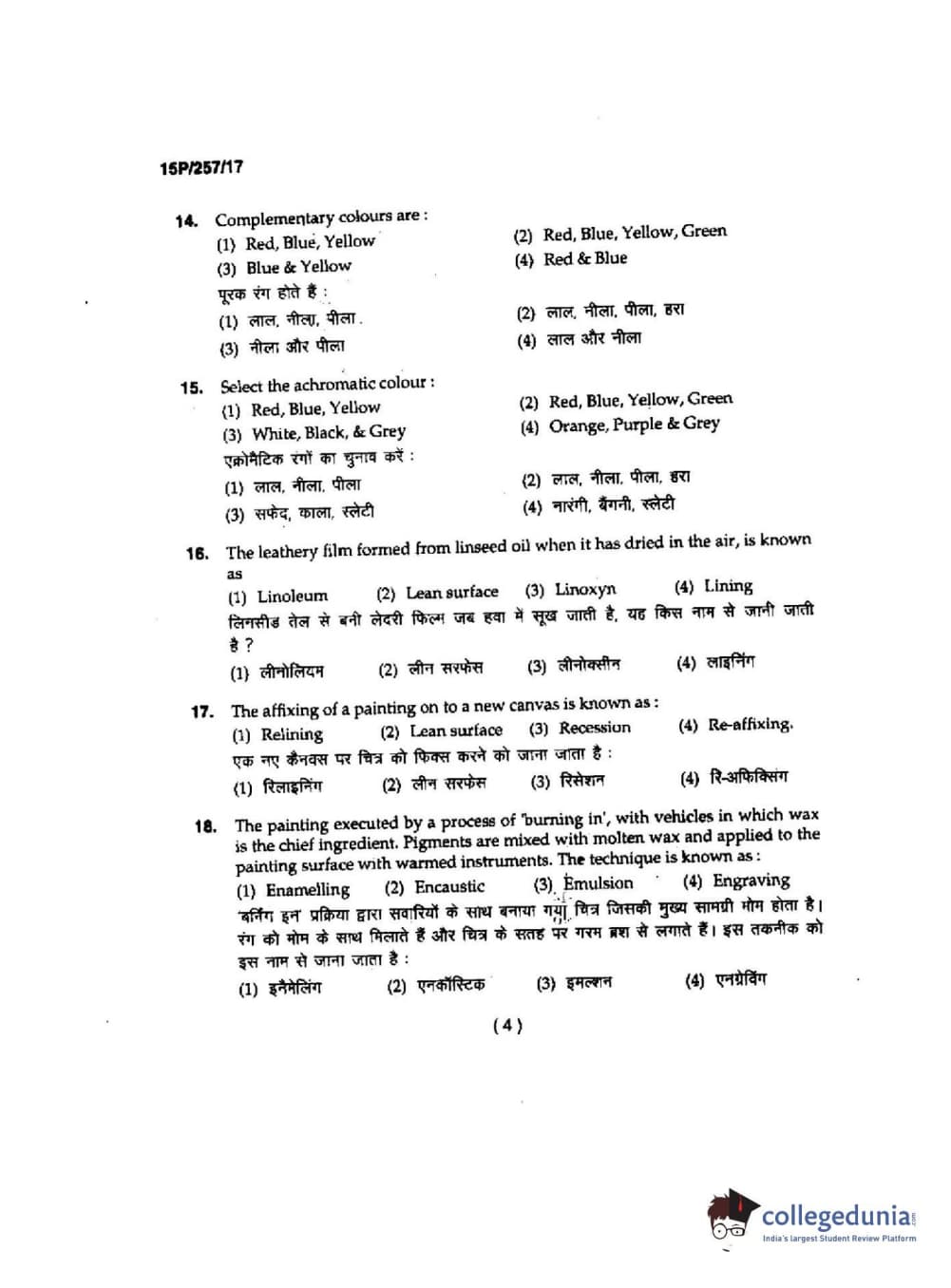 BHU PET 2014 M.F.A. Painting Question Paper with Answer Key PDFs