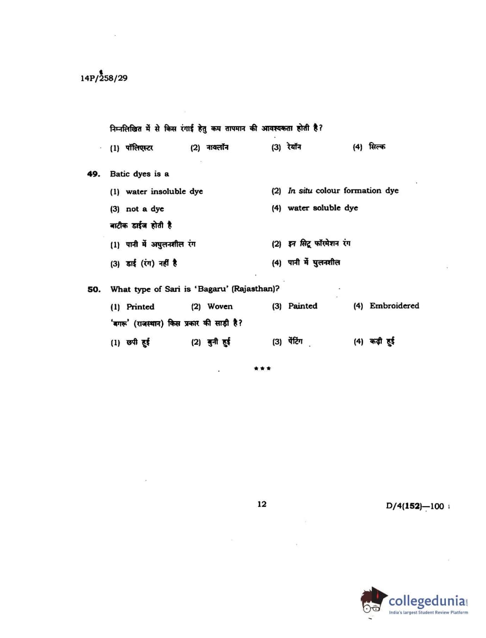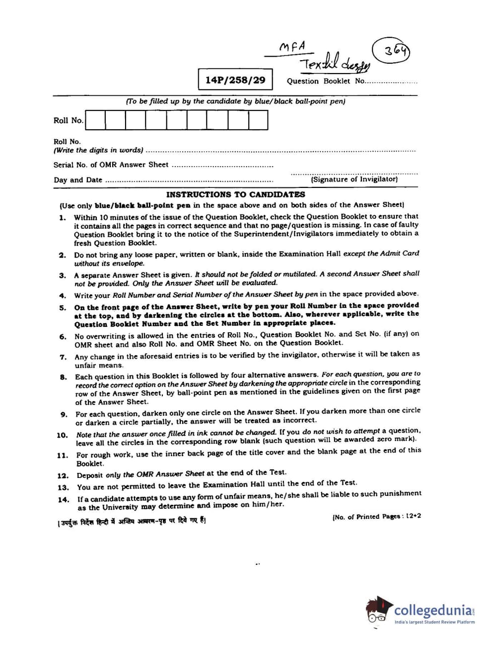 BHU PET 2014 M.F.A. Textile Design Question paper with answer key pdf is available for download. The exam was successfully organized by Banaras Hindu University (BHU). The question paper comprised a total of 50 questions.