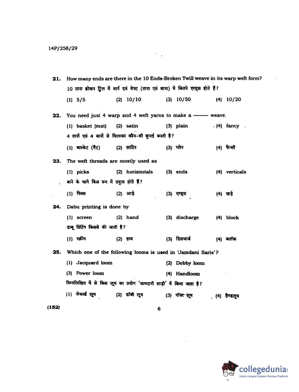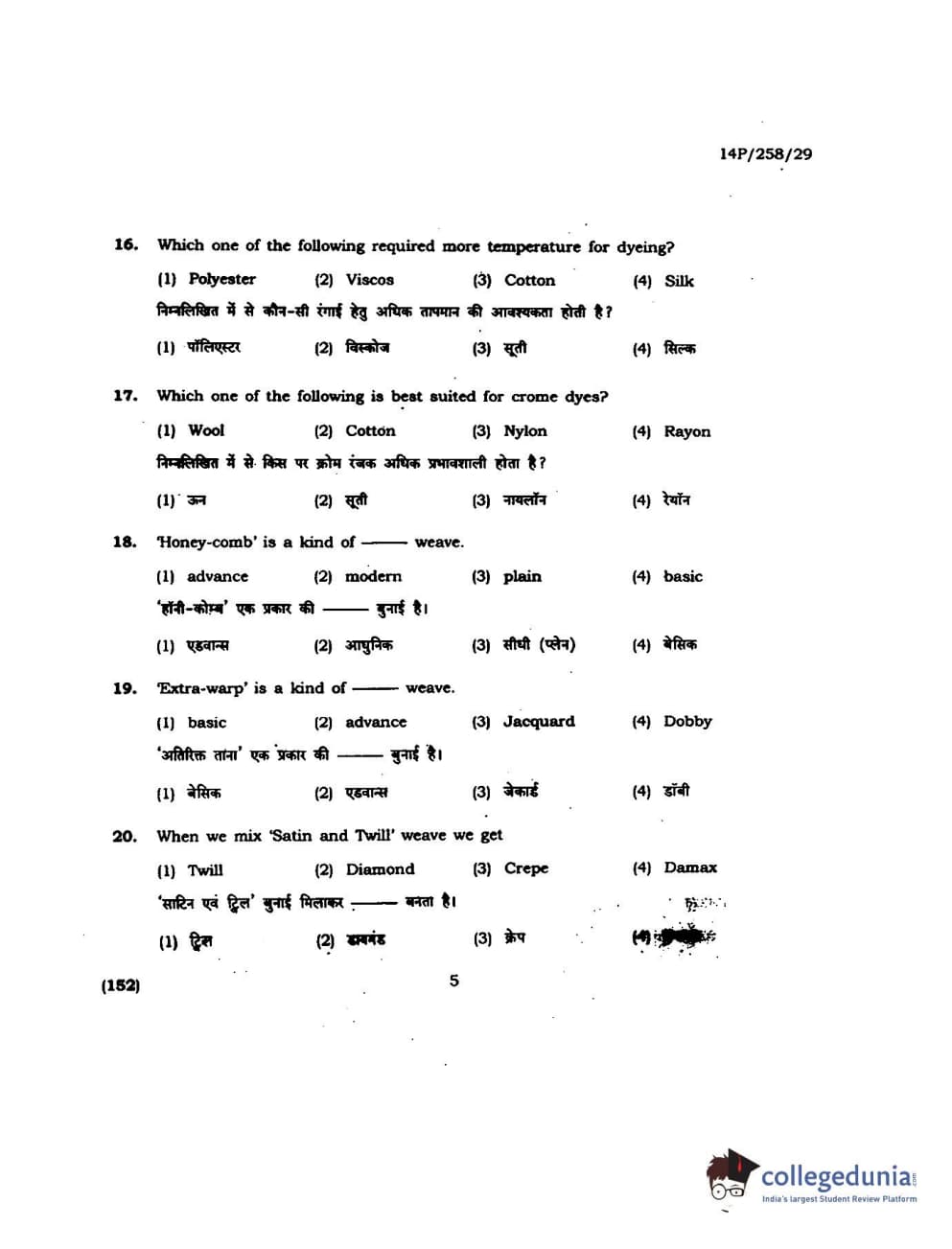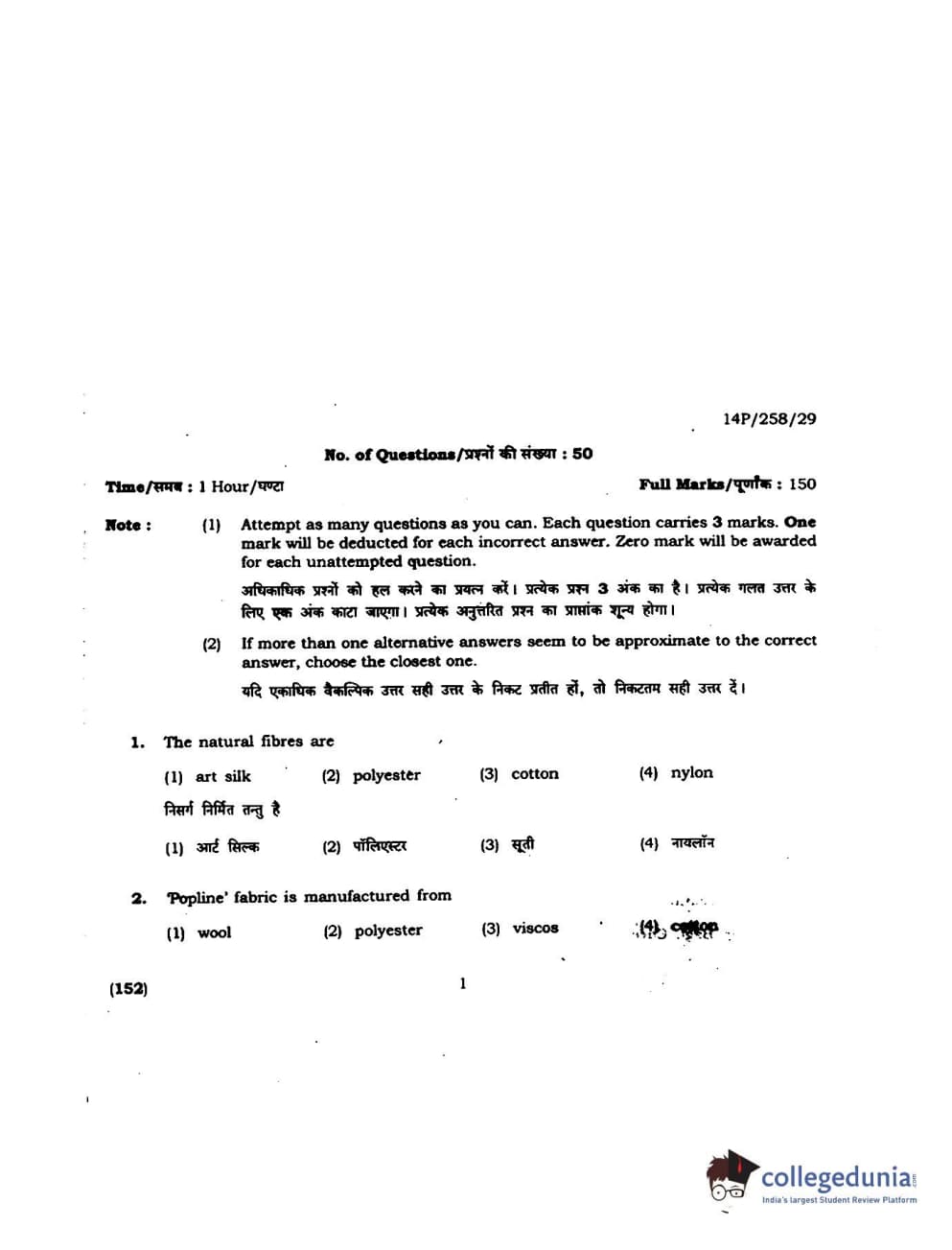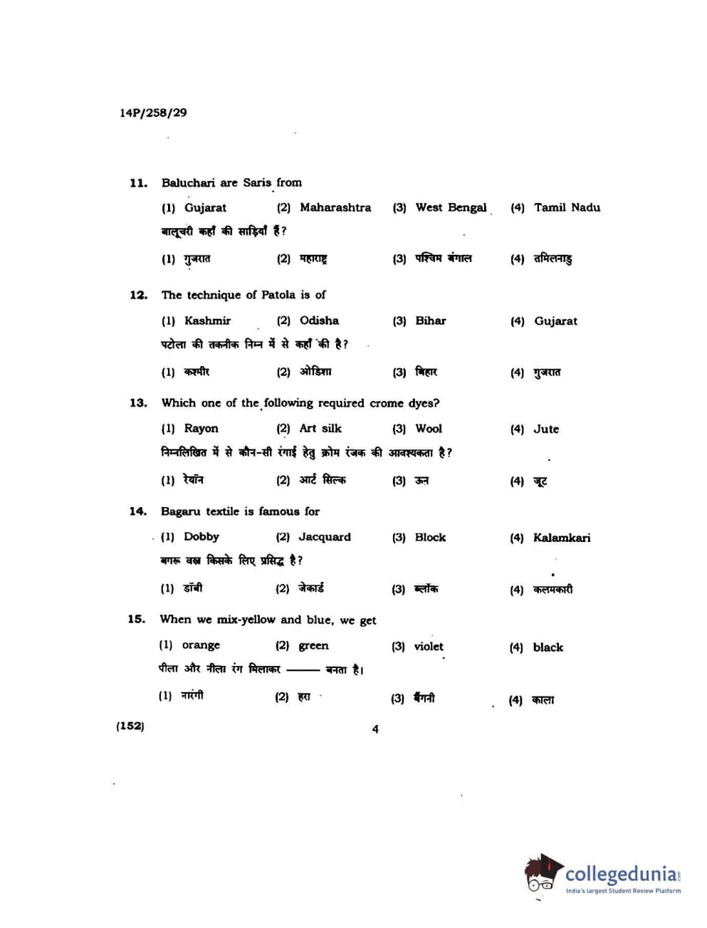 BHU PET 2014 M.F.A. Textile Design Question Paper with Answer Key PDFs