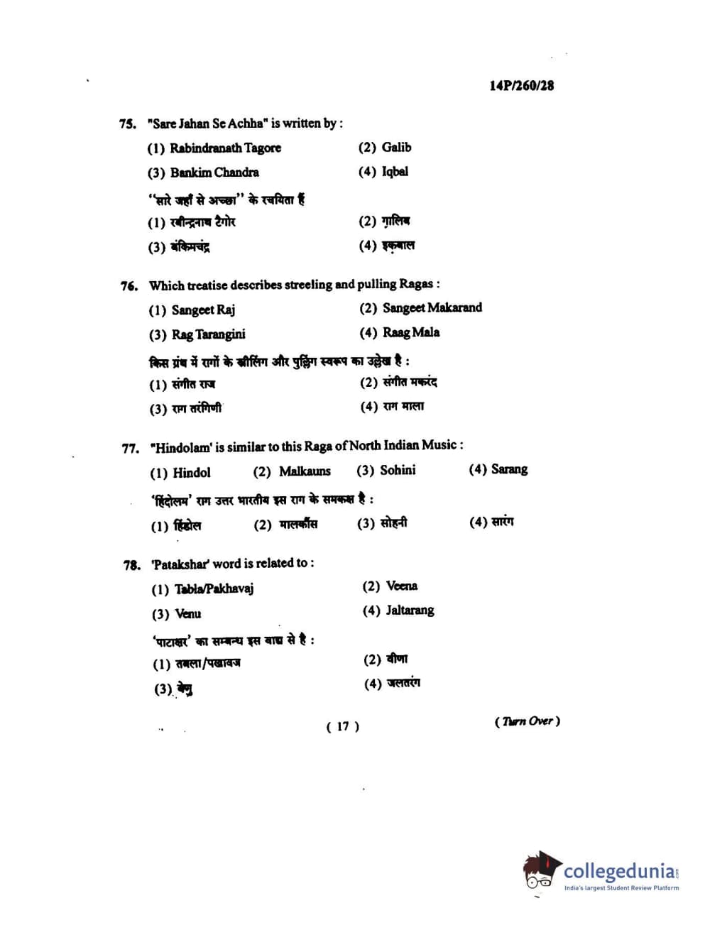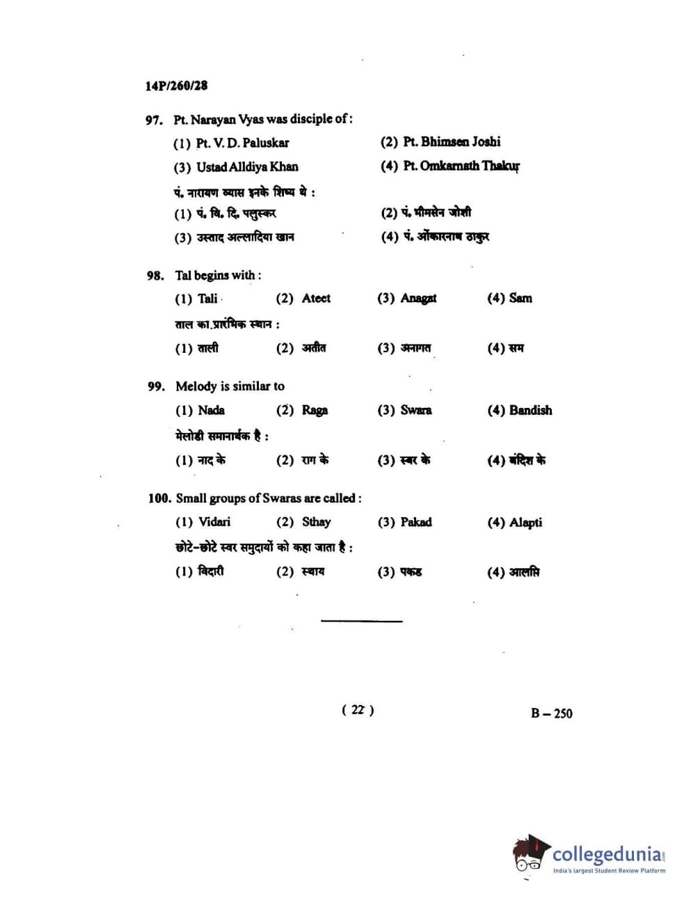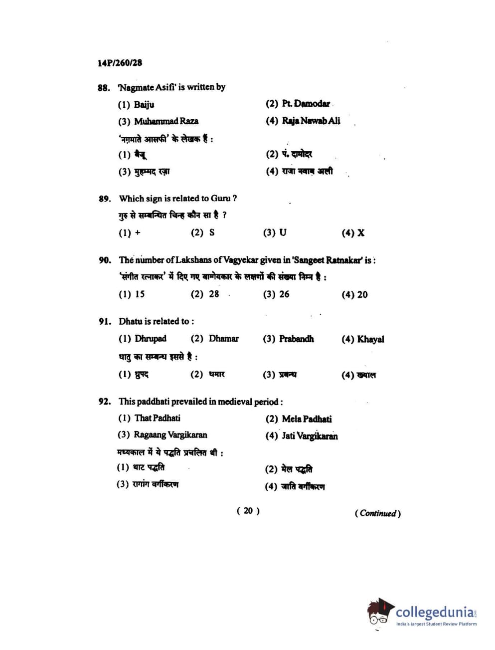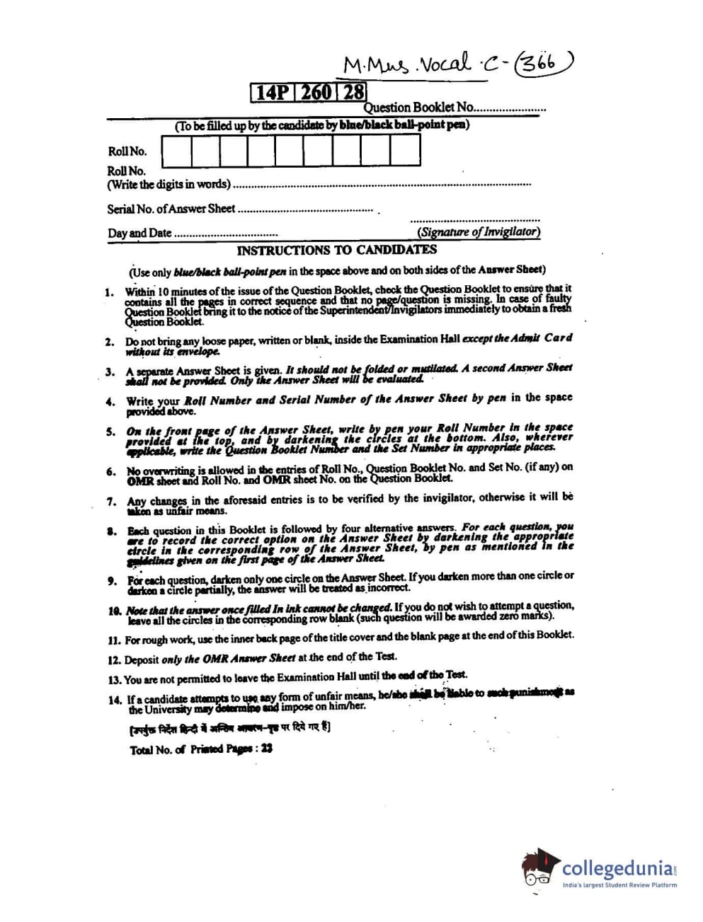 BHU PET 2014 M.Mus. Vocal Question Paper with Answer Key PDFs