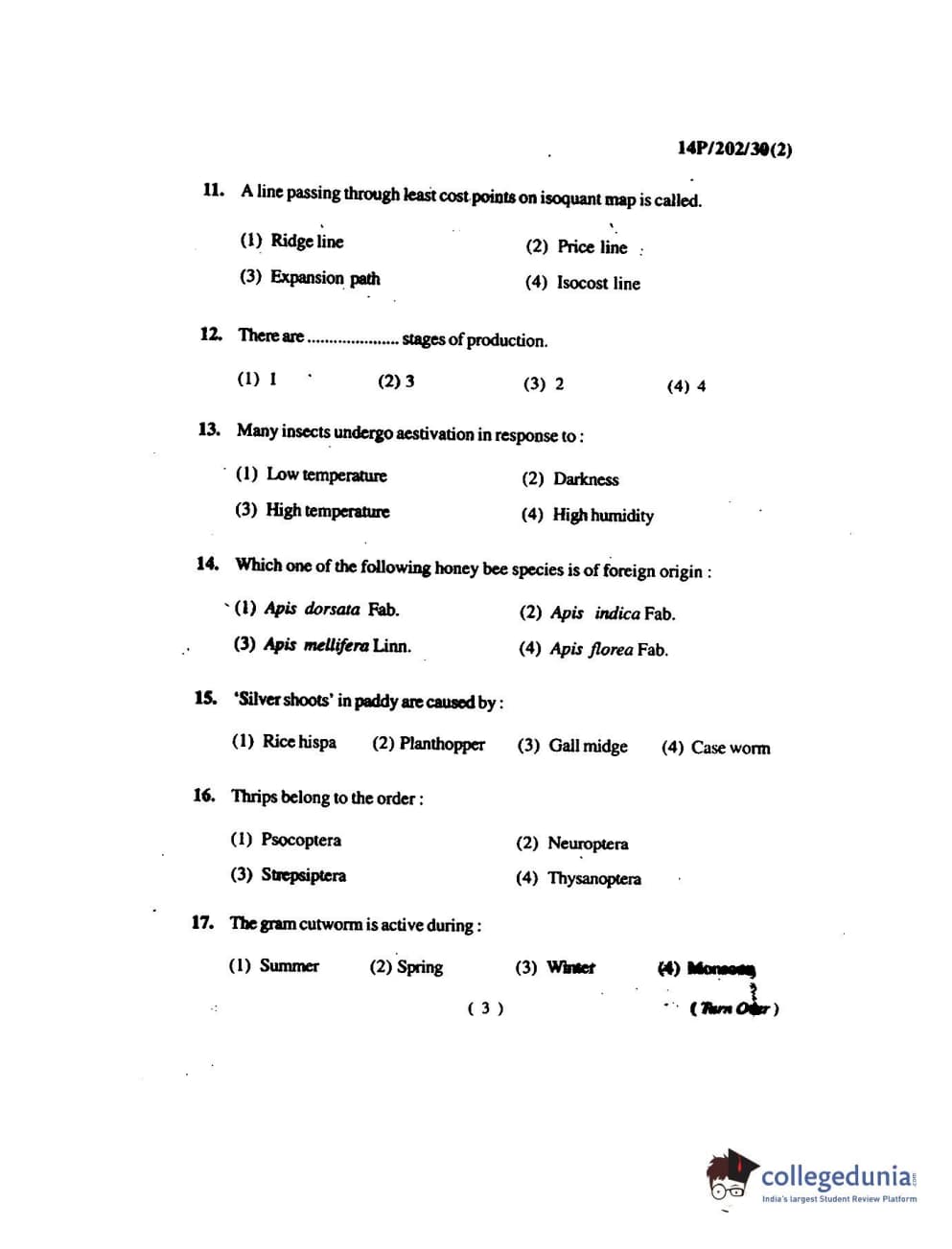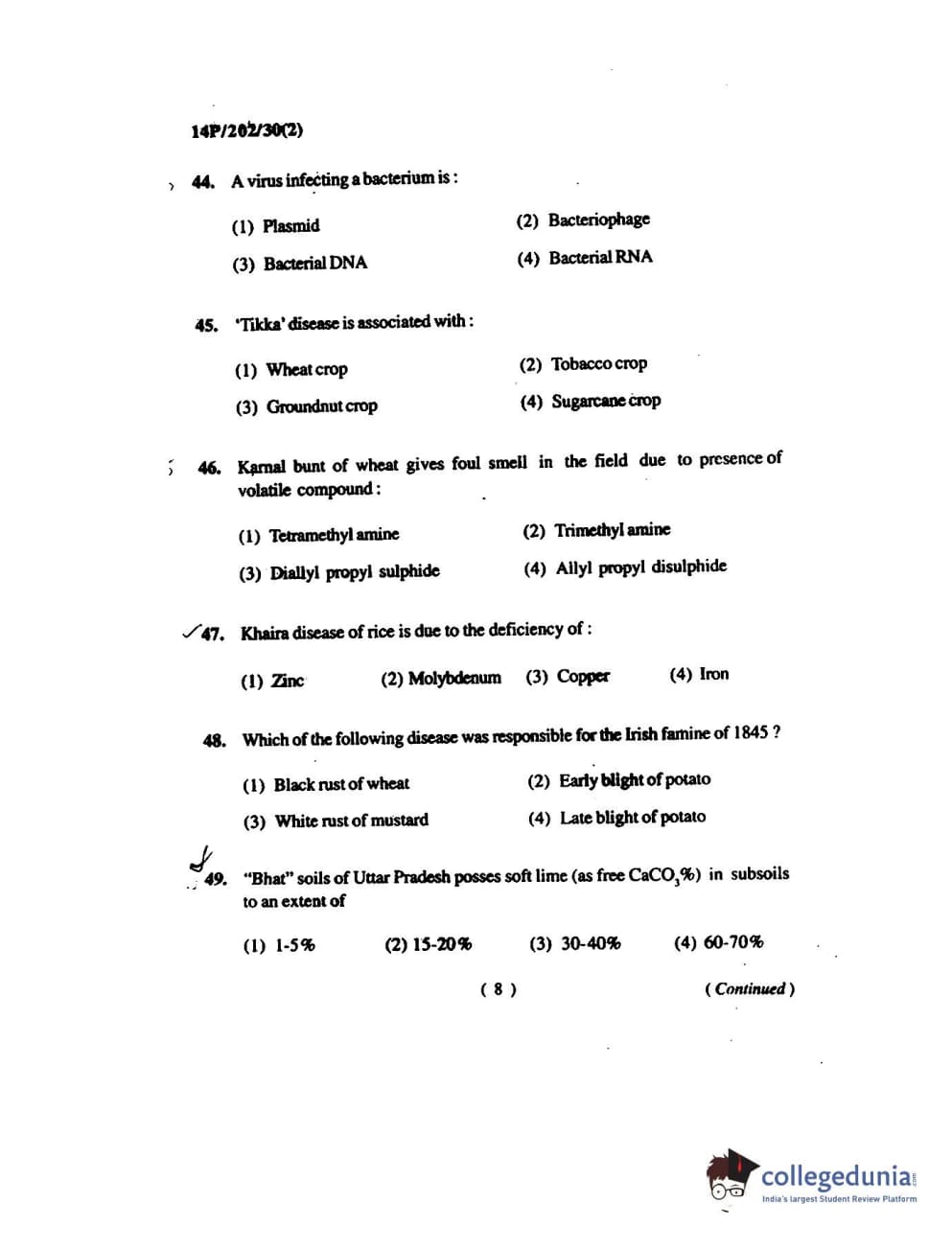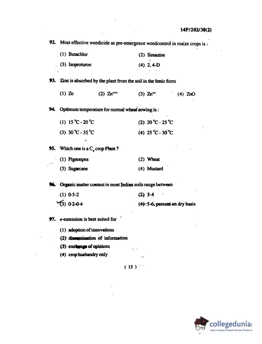BHU PET 2014 M.Sc Ag Set-2 Question Paper with Answer Key PDFs