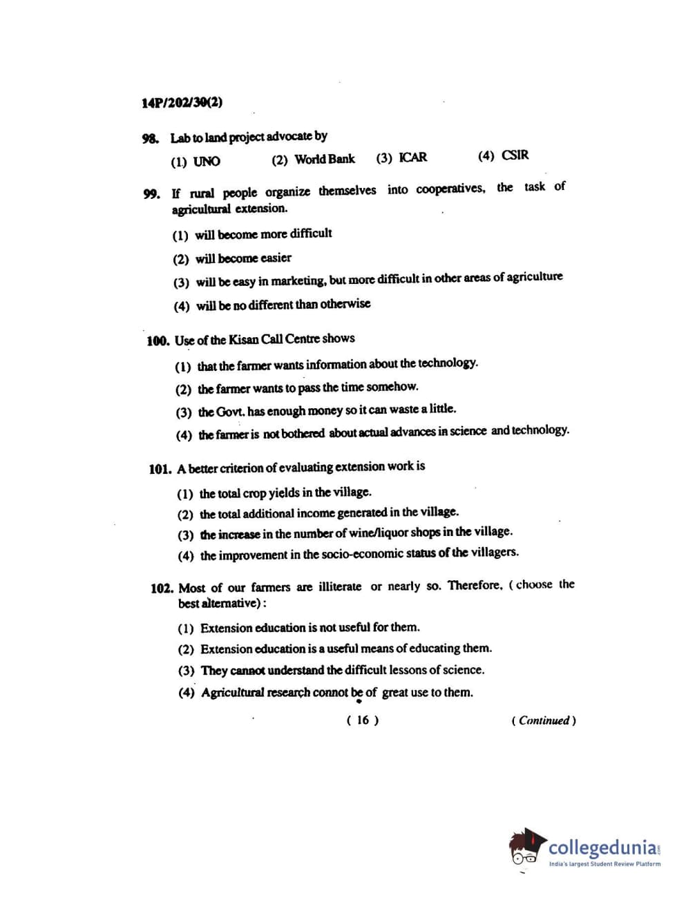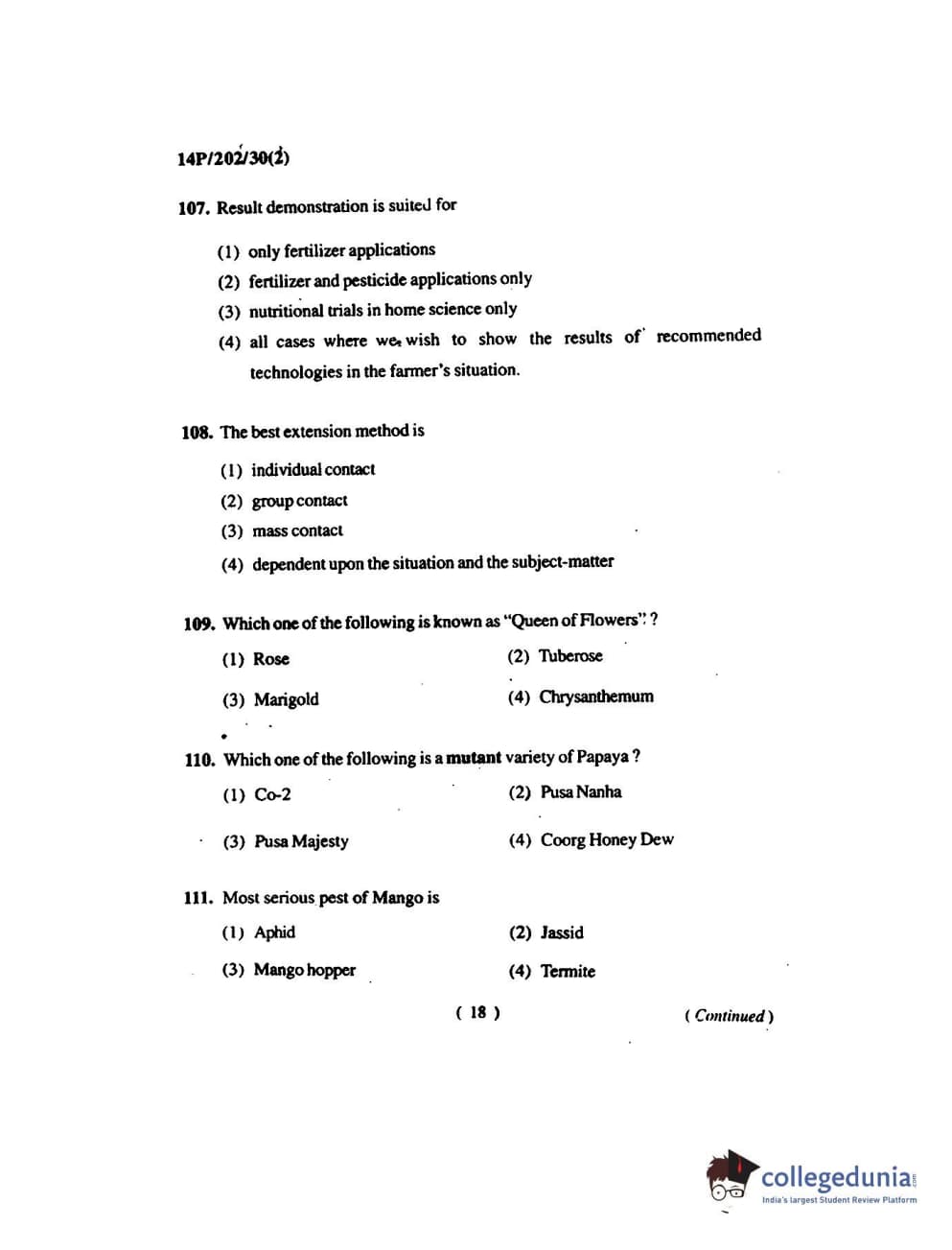 BHU PET 2014 M.Sc Ag Set-2 Question paper with answer key pdf is available for download. The exam was successfully organized by Banaras Hindu University (BHU). The question paper comprised a total of 120 questions.