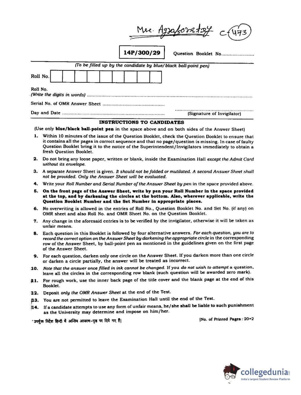 | BHU PET 2014 M.Sc Agroforestry Question Paper PDF | BHU PET 2014 M.Sc Agroforestry Answer Key PDF |
