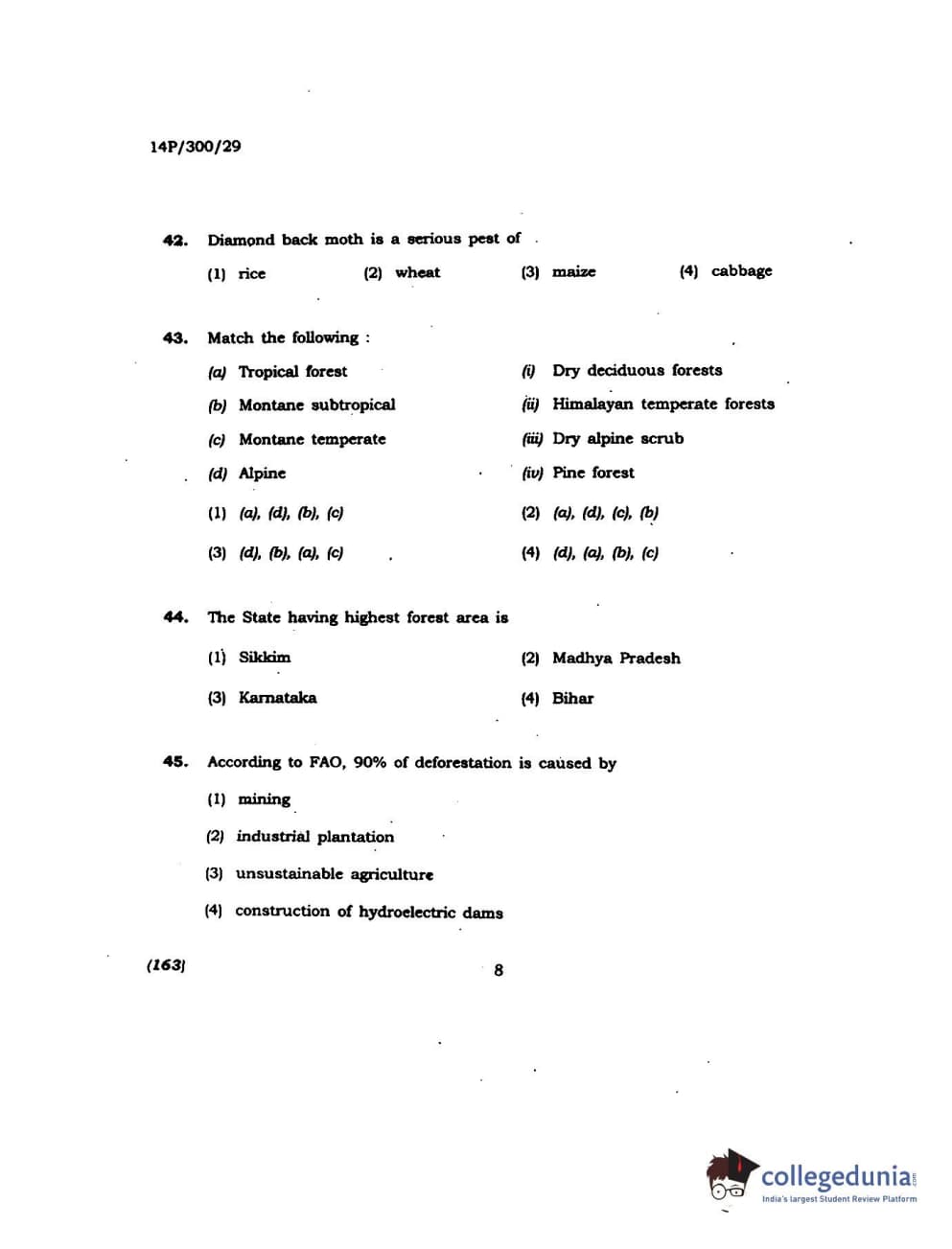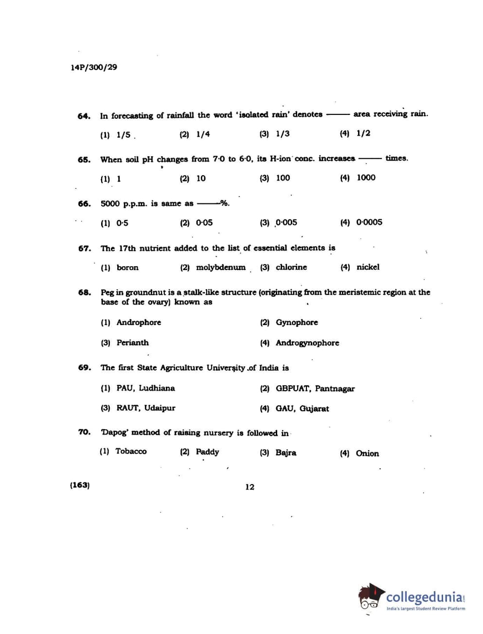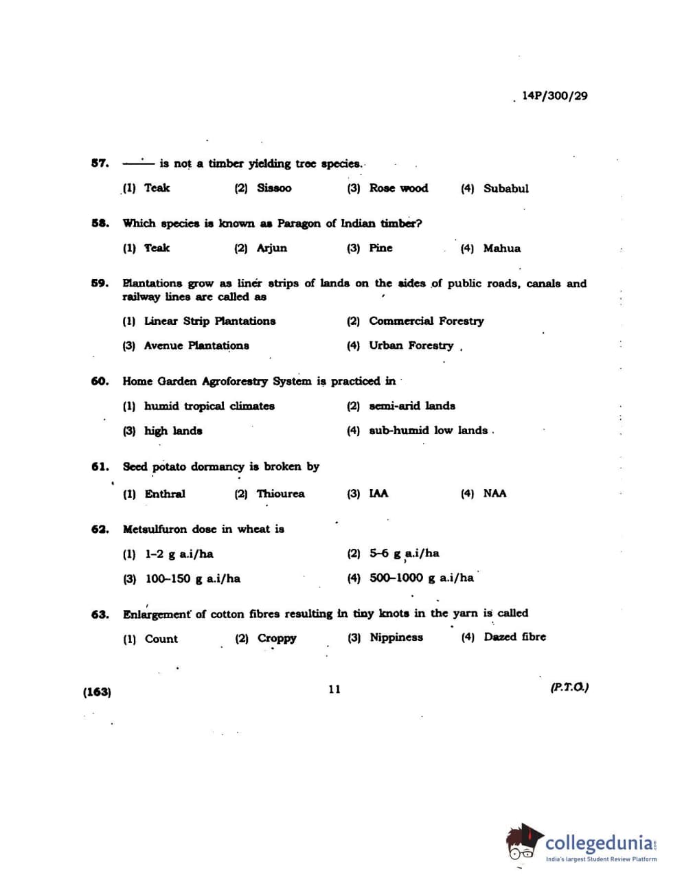 BHU PET 2014 M.Sc Agroforestry Question Paper with Answer Key PDFs