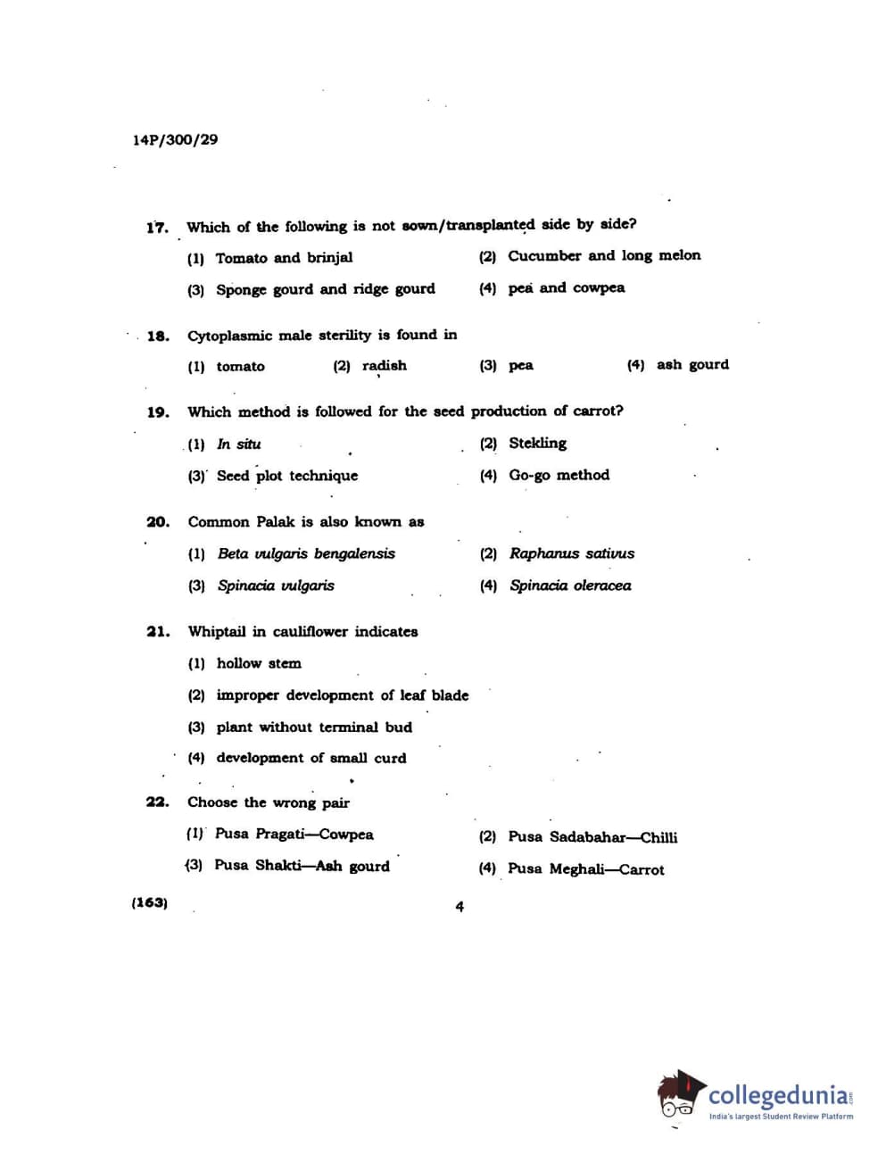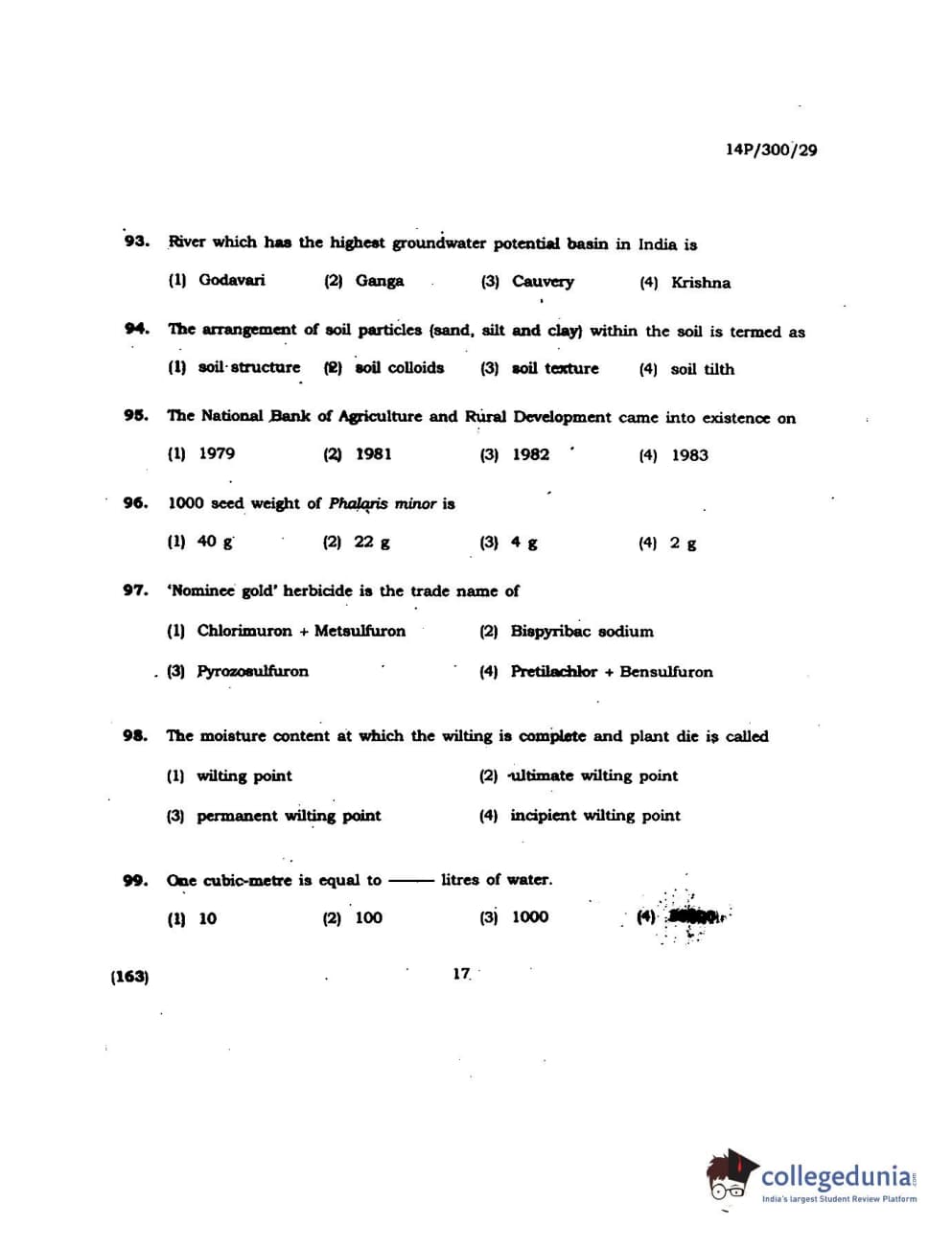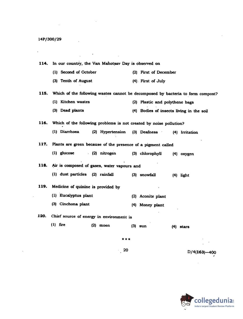 BHU PET 2014 M.Sc Agroforestry Question Paper with Answer Key PDFs