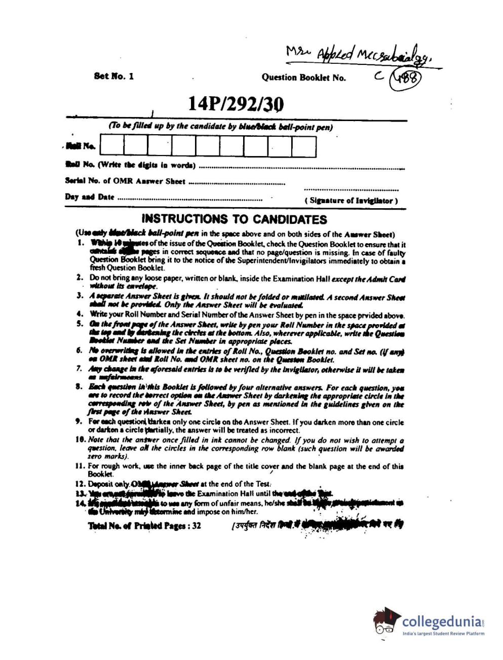 BHU PET 2014 M.Sc Applied Microbiology Question paper with answer key pdf is available for download. The exam was successfully organized by Banaras Hindu University (BHU). The question paper comprised a total of 150 questions.