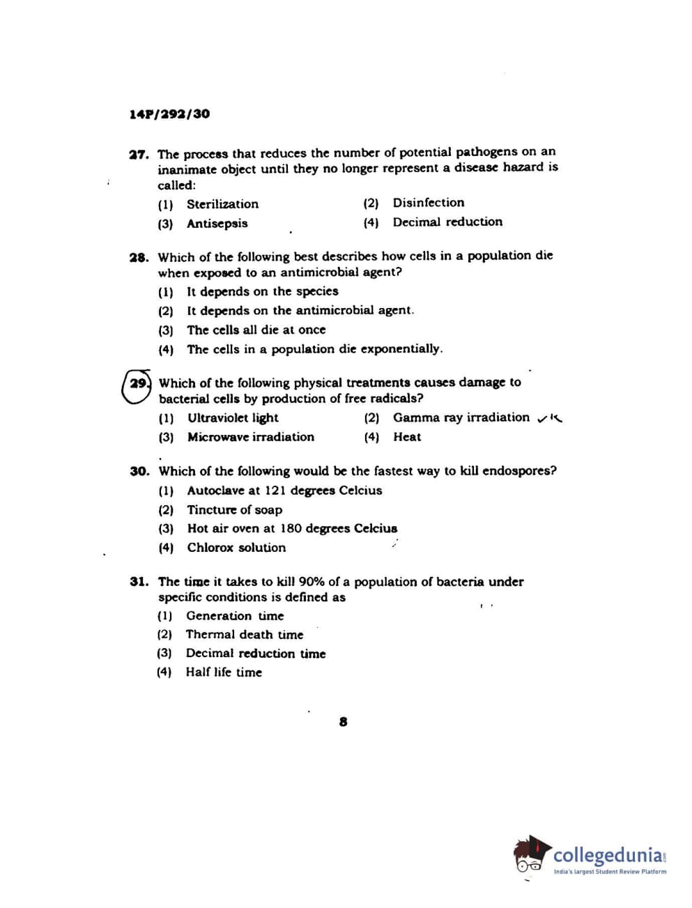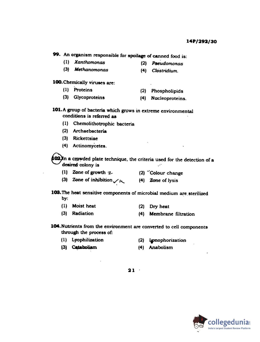 BHU PET 2014 M.Sc Applied Microbiology Question Paper with Answer Key PDFs
