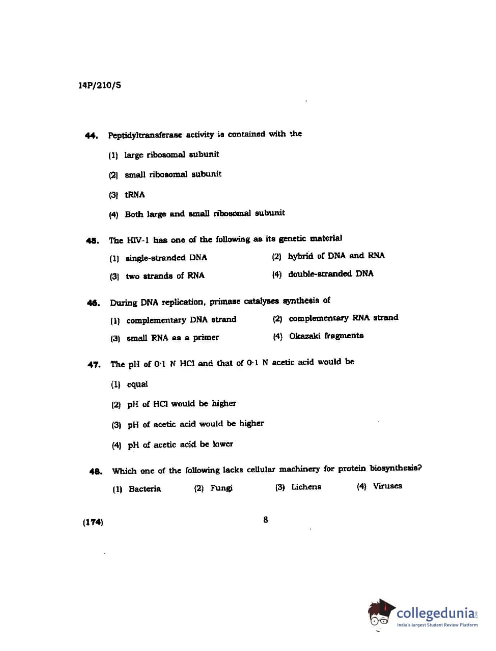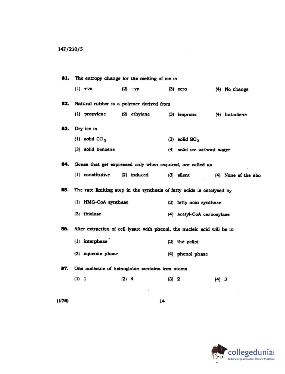 BHU PET 2014 M.Sc Biochemistry Question Paper with Answer Key PDFs